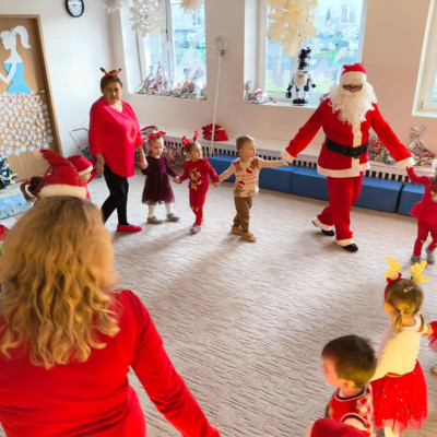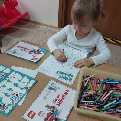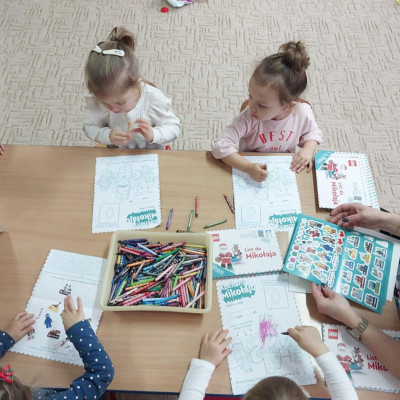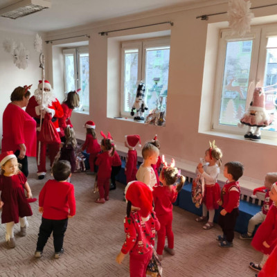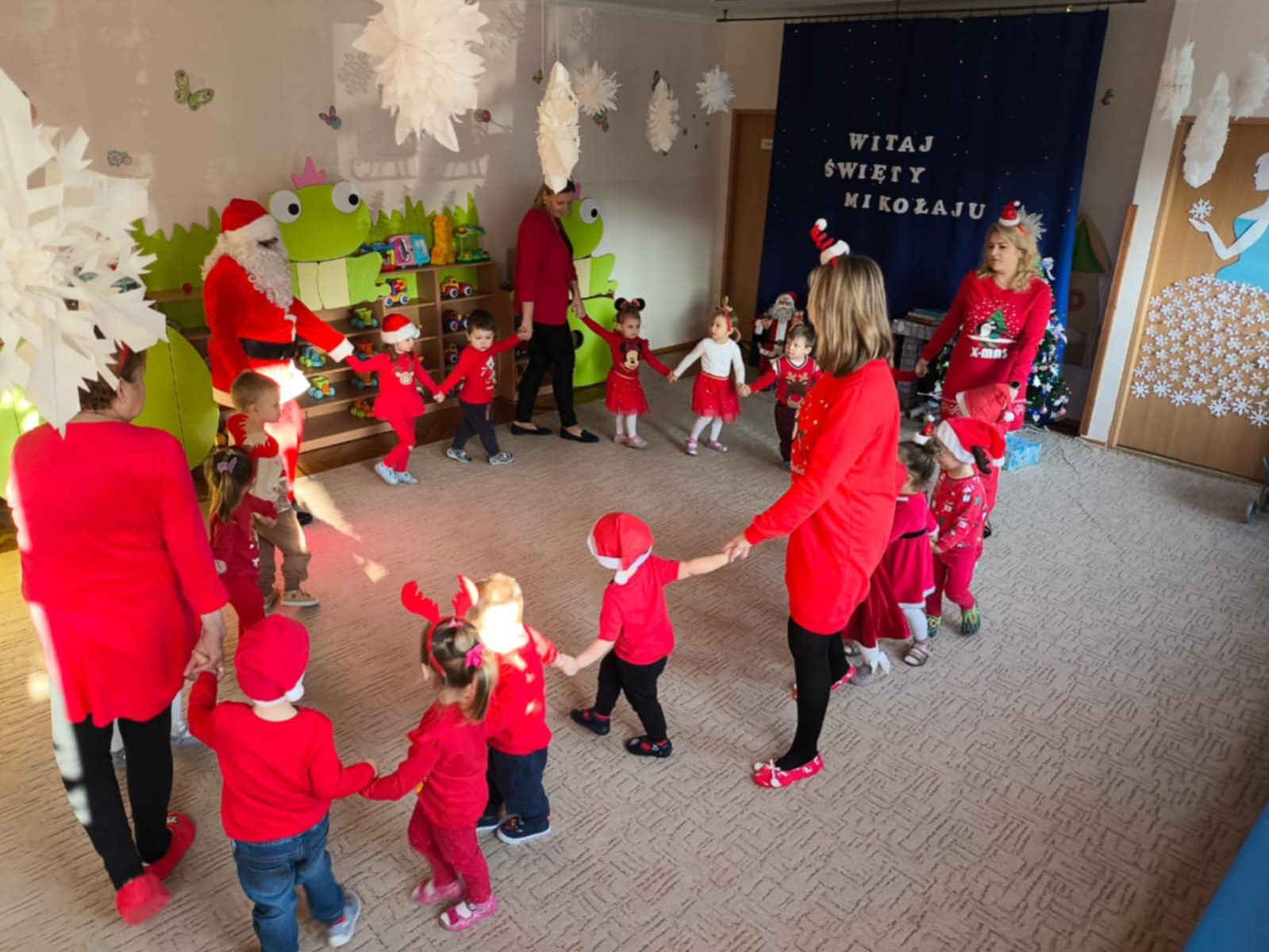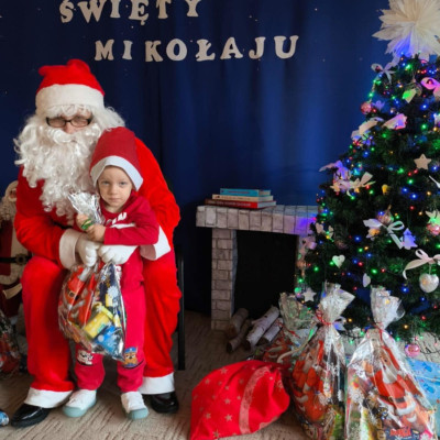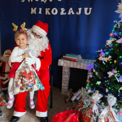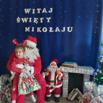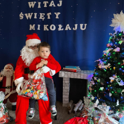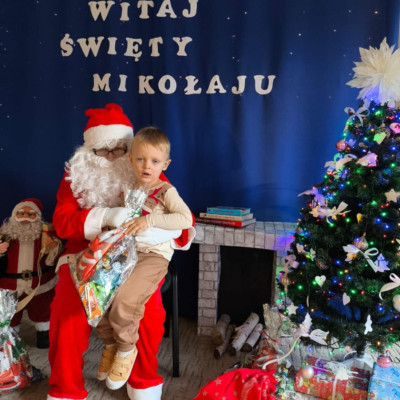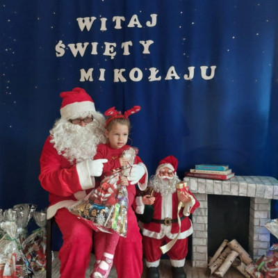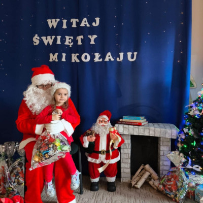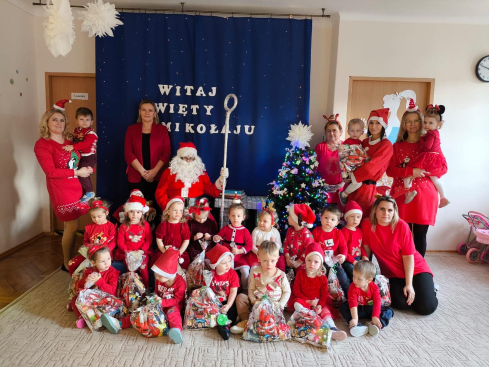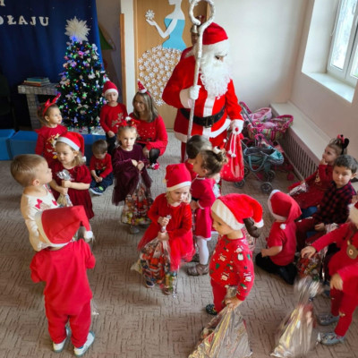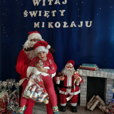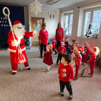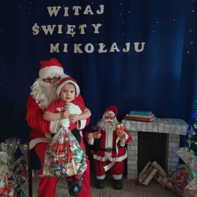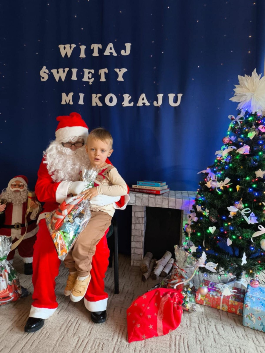 Zdjęcia przedstawiają dzieci podczas wizyty Świętego Mikołaja