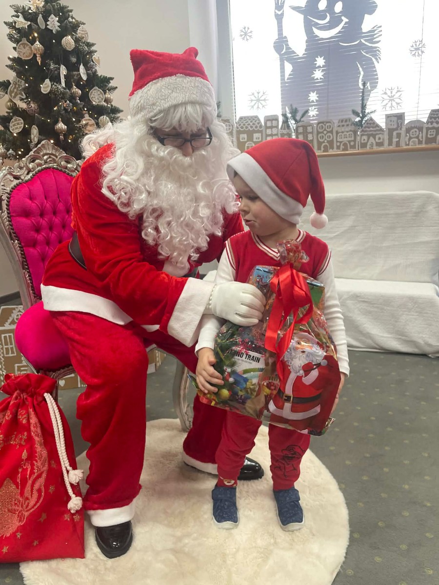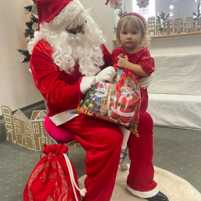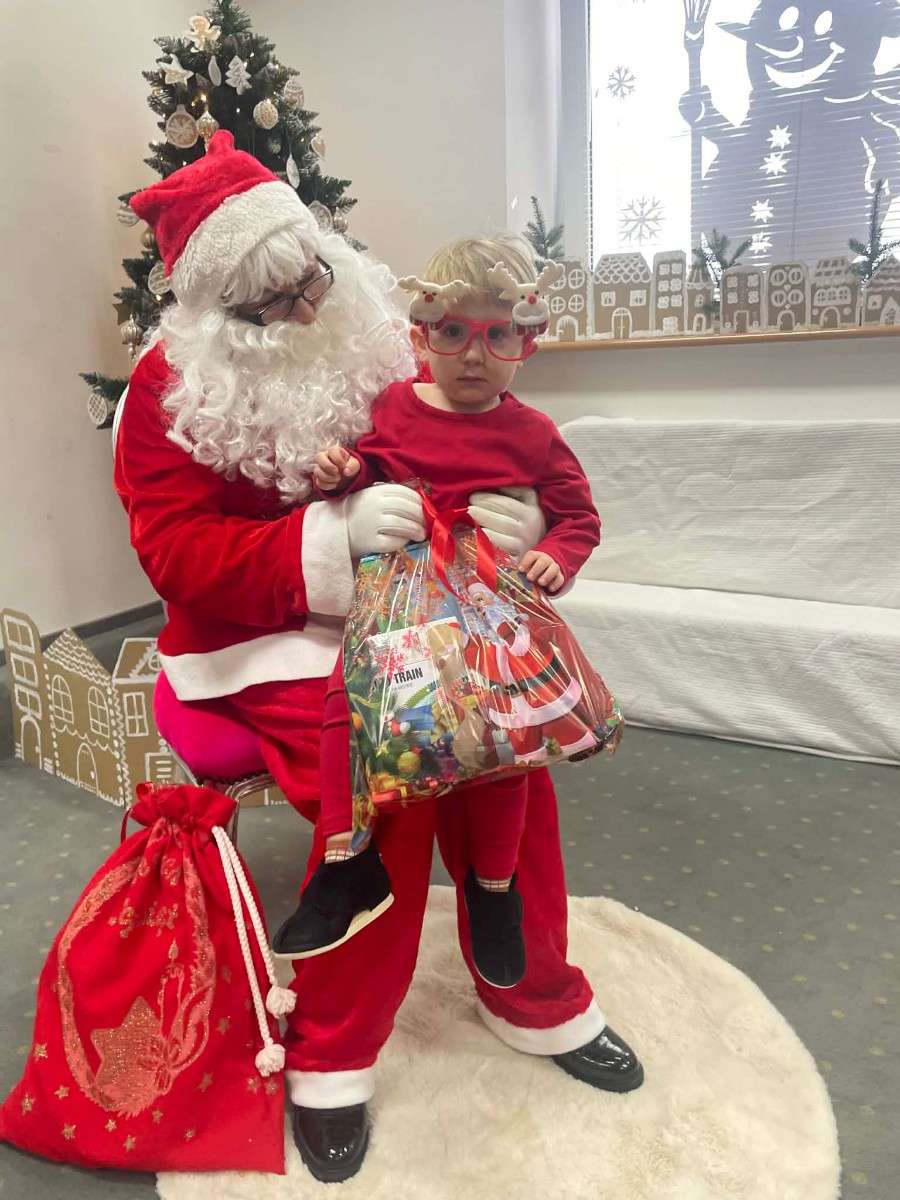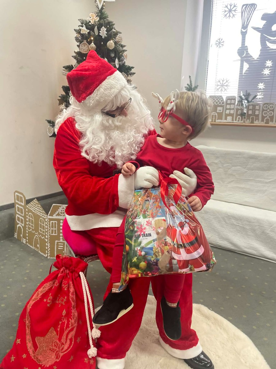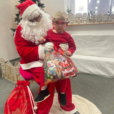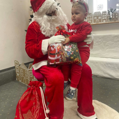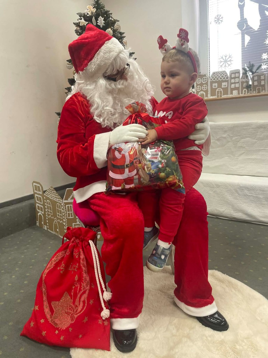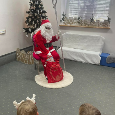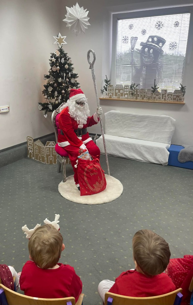Zdjęcie przedstawia dzieci podczas wizyty Świętego Mikołaja