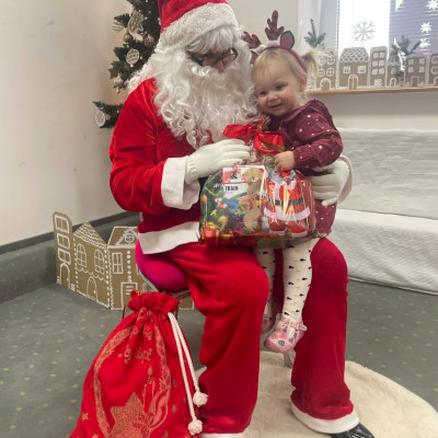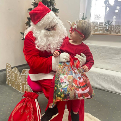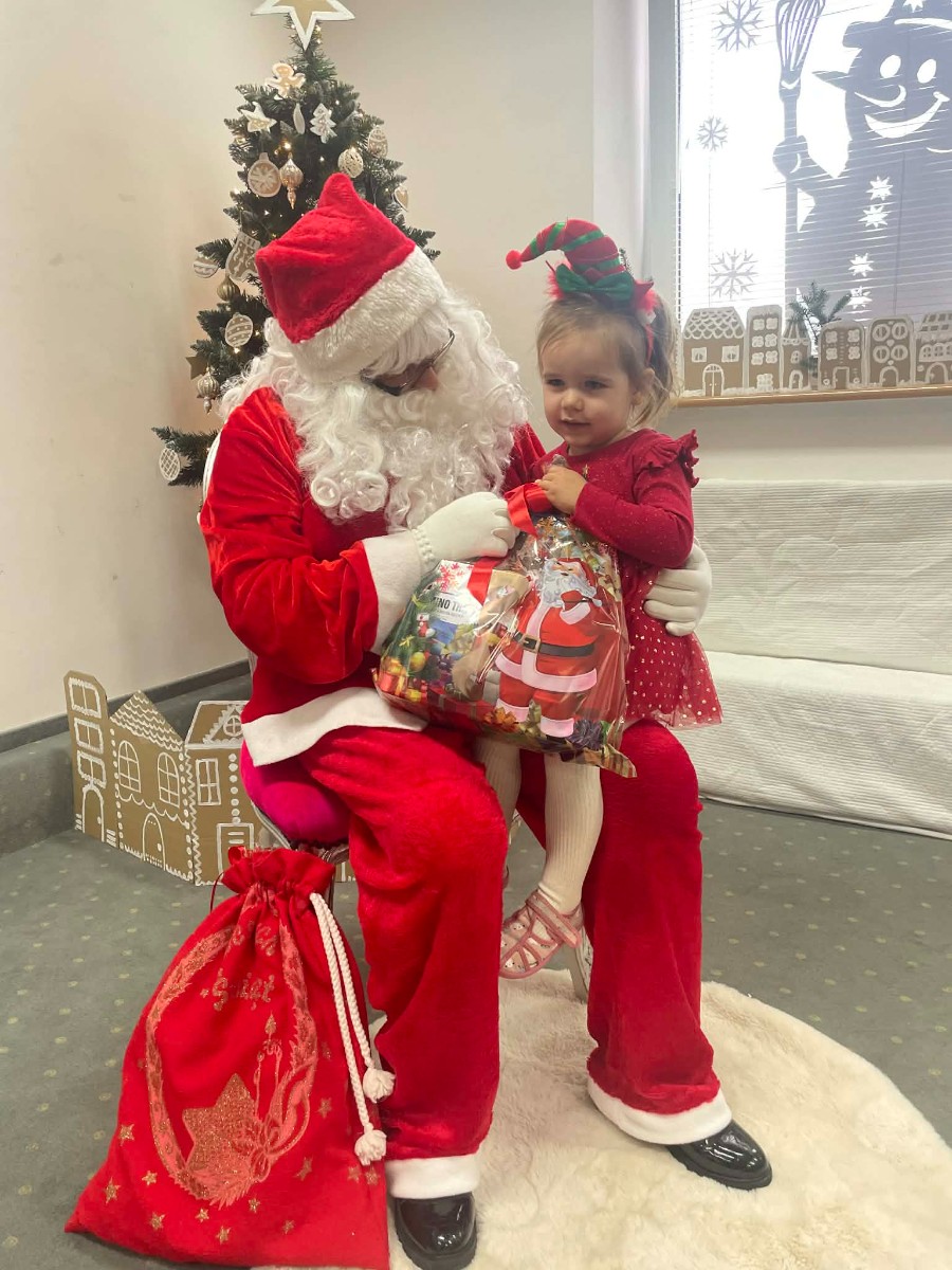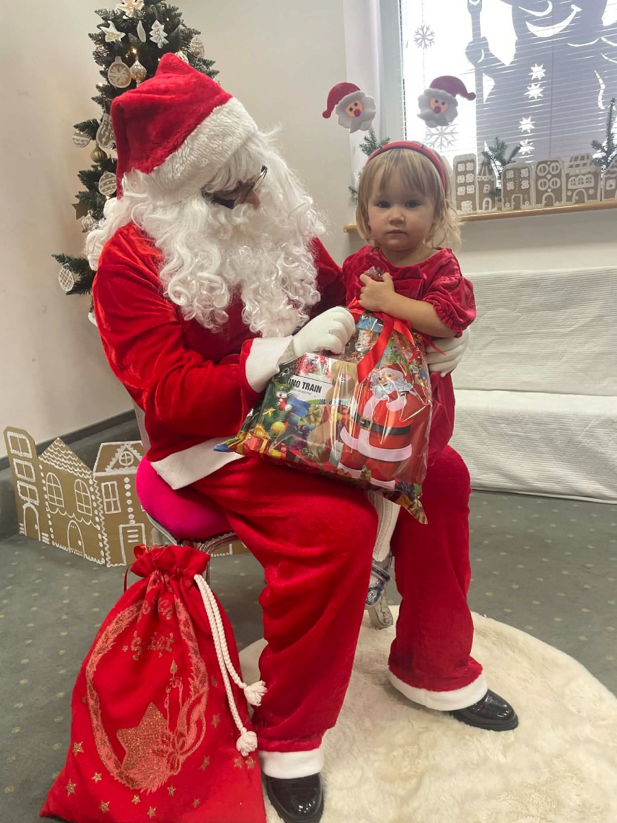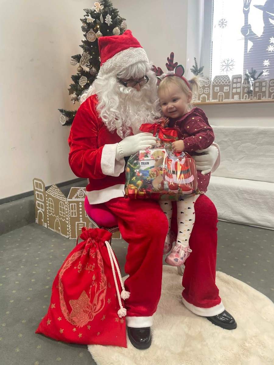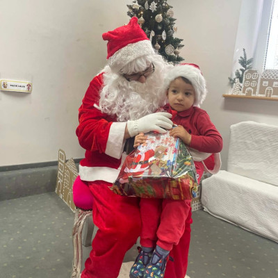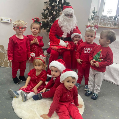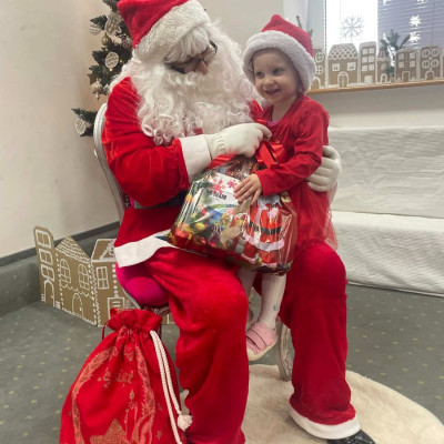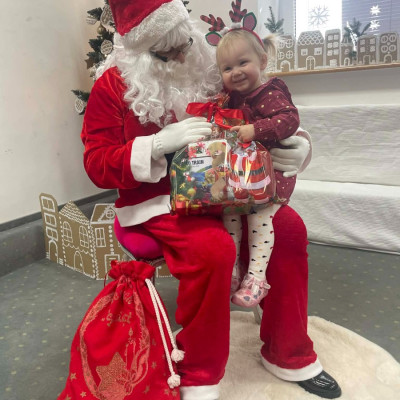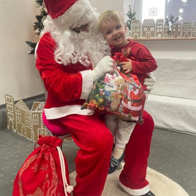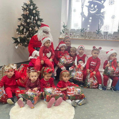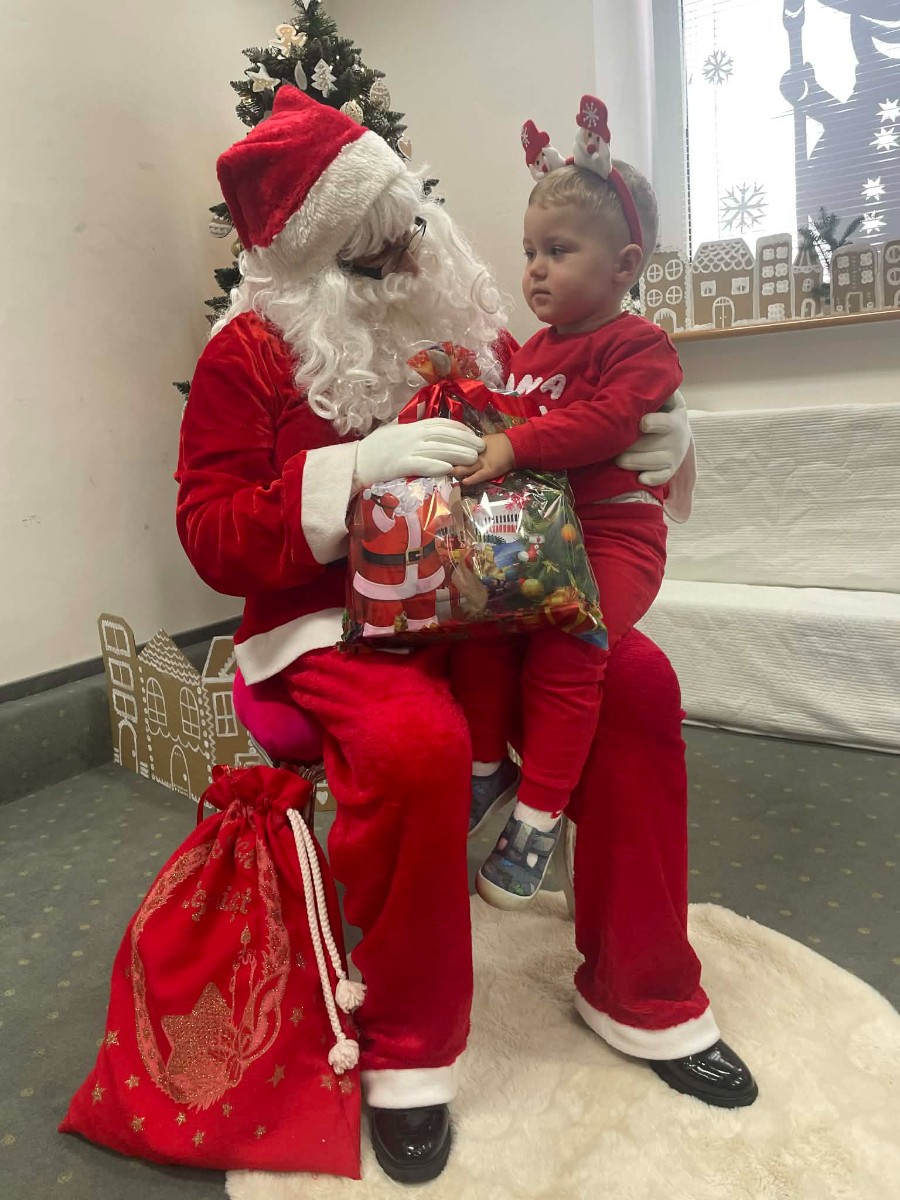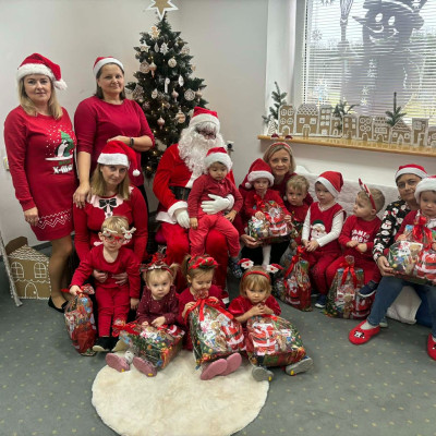 Zdjęcie przedstawia dzieci podczas wizyty Świętego Mikołaja