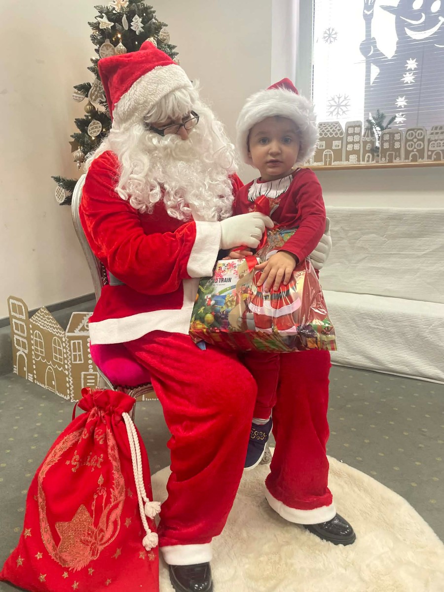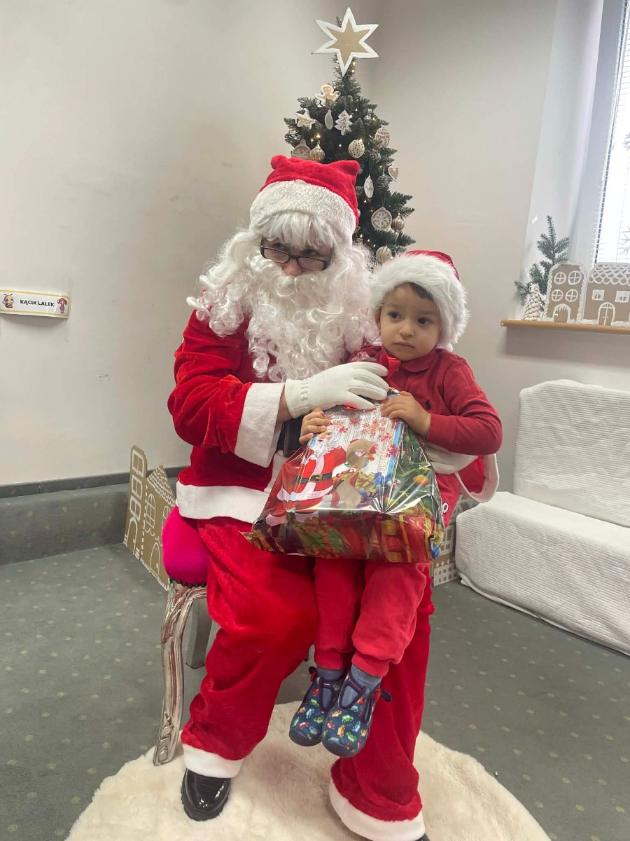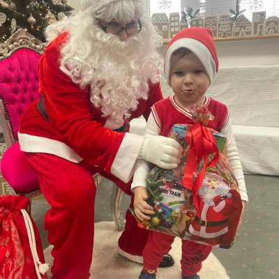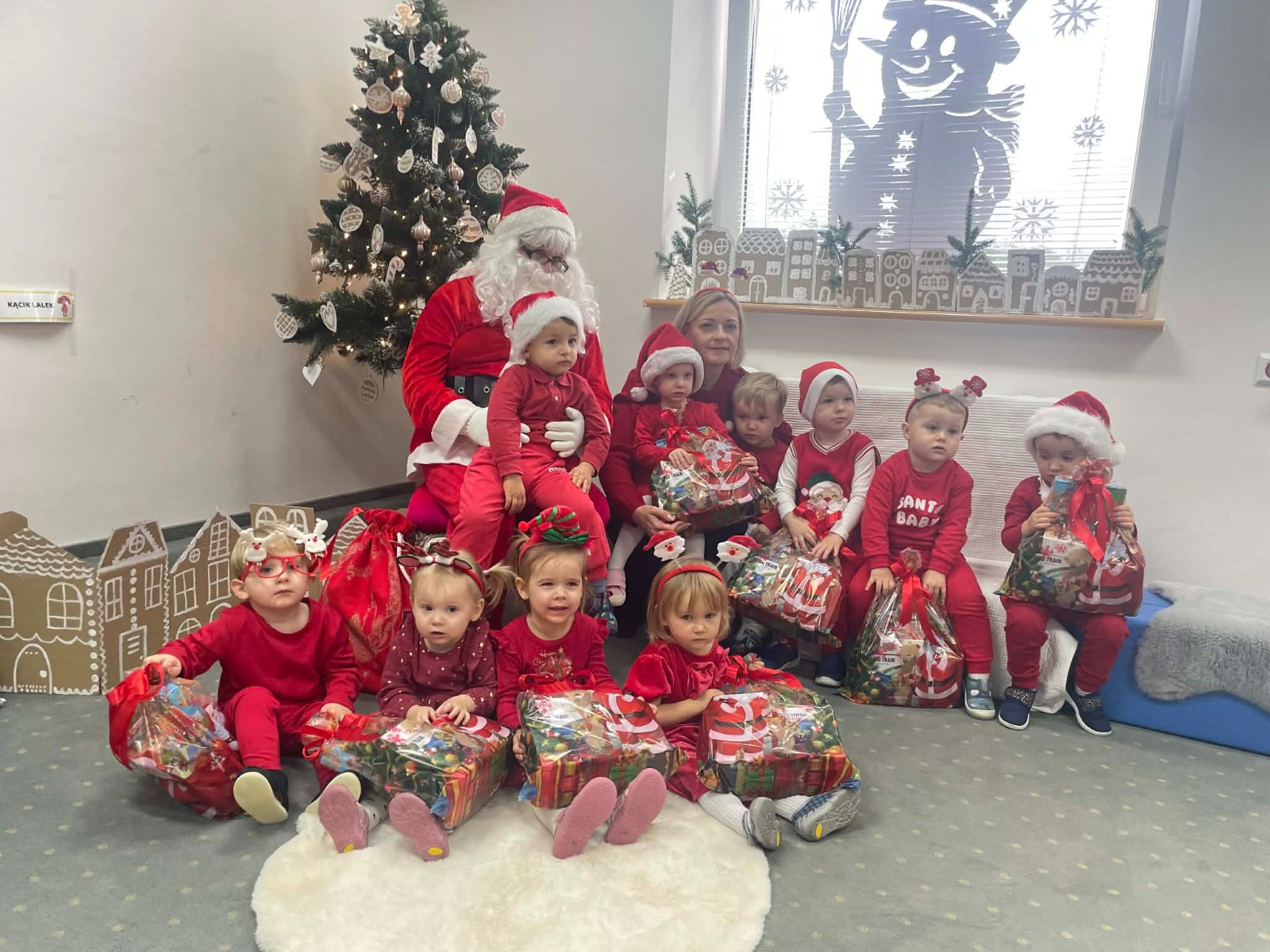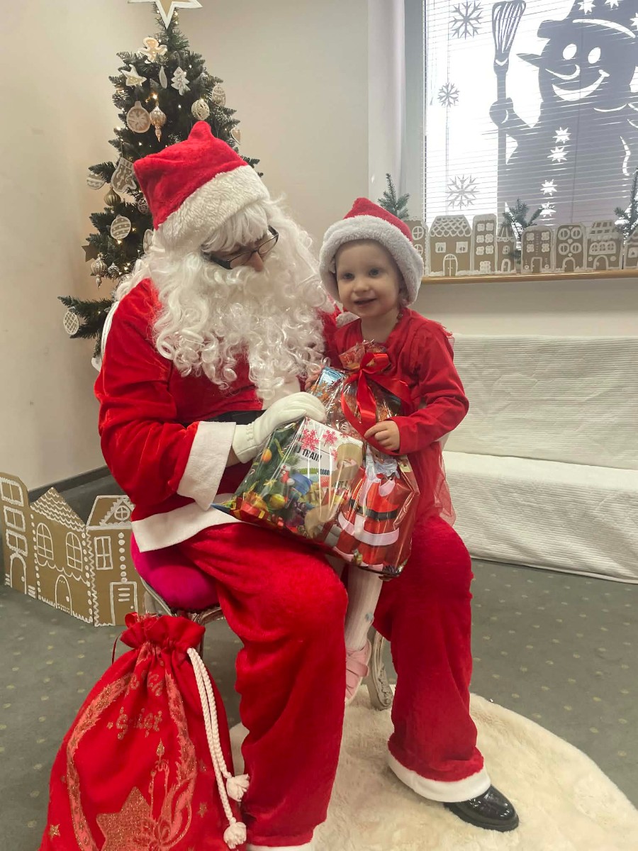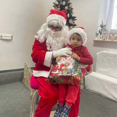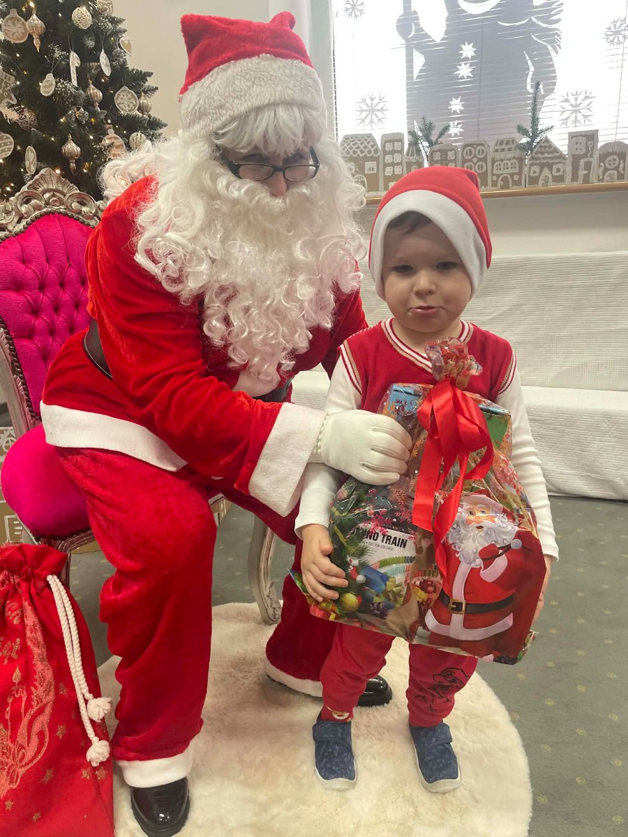 Zdjęcie przedstawia dzieci podczas wizyty Świętego Mikołaja