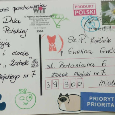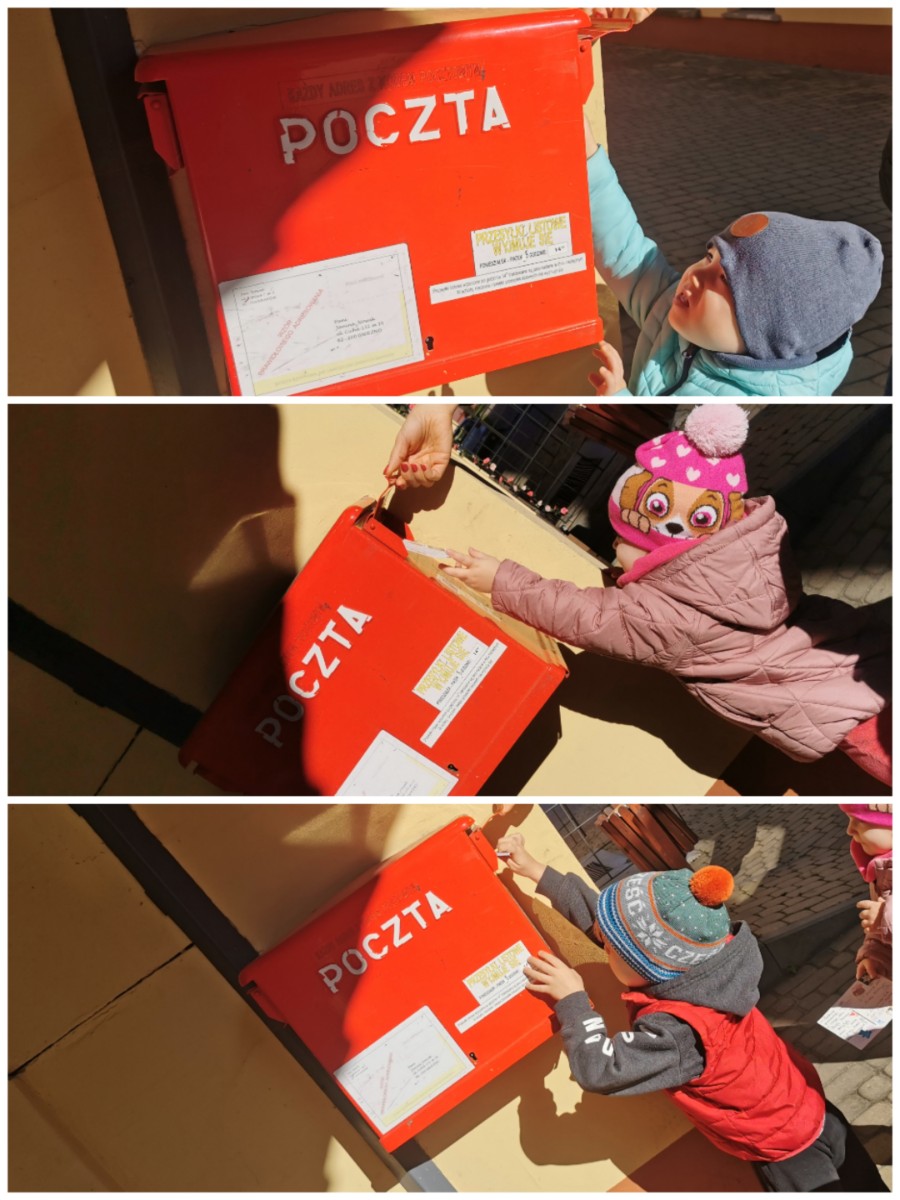 W związku z obchodami "Dnia Poczty Polskiej" grupa naszych Żabek odwiedziła pocztę, gdzie mogliśmy zobaczyć, jak wygląda praca na poczcie oraz w jaki sposób są wysyłane przesyłki. Nasi podopieczni wysłali w tym dniu pocztówki, które własnoręcznie przyozdobiły. Trafią one w ręce Pana Prezydenta naszego miasta, Pani Dyrektor Żłobków Miejskich oraz Pani Kierownik naszego żłobka. Mamy nadzieję, że mile zaskoczą odbiorców. Zapraszamy na fotorelację.