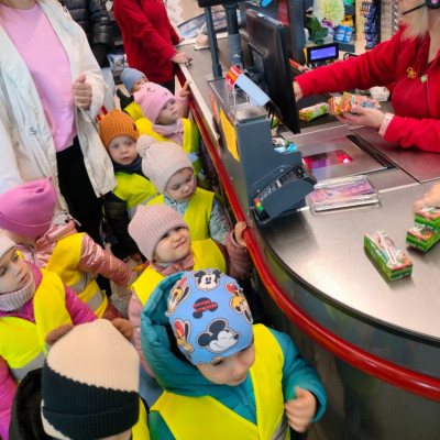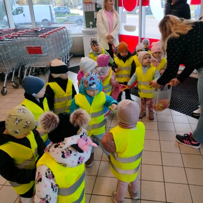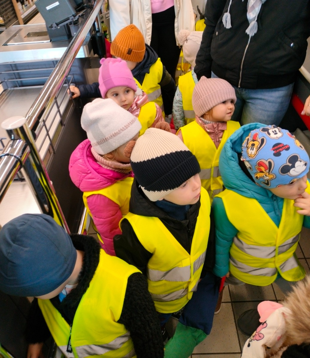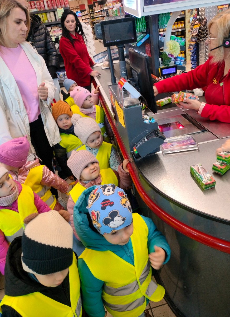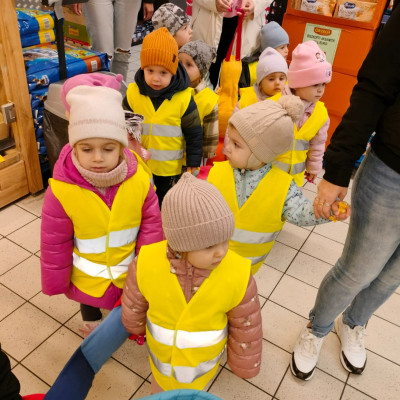 Dziś nasza grupa wybrała się na wycieczkę do pobliskiego sklepu🛒. Dzieci z zaciekawieniem oglądały półki pełne produktów, rozpoznawały owoce i warzywa oraz dowiedziały się, jak wygląda praca sprzedawcy. Na zakończenie każdy maluch otrzymał pyszny upominek☺️.