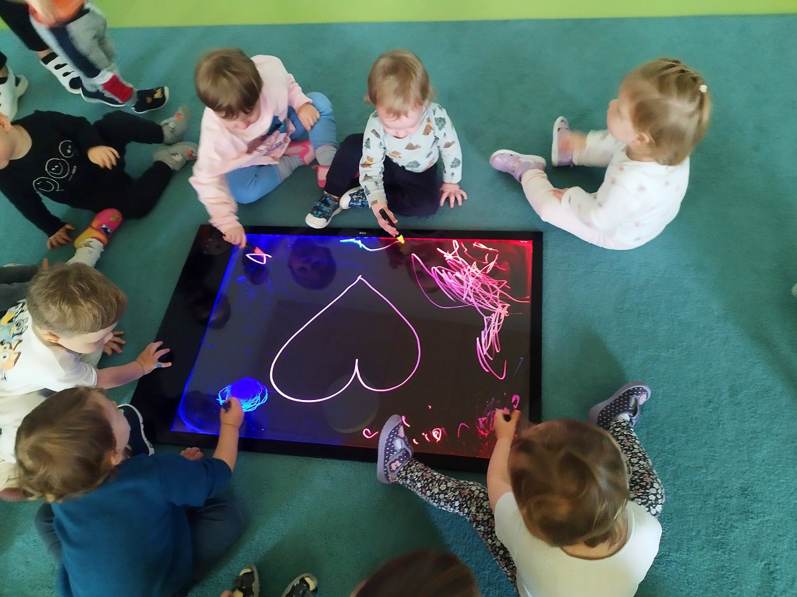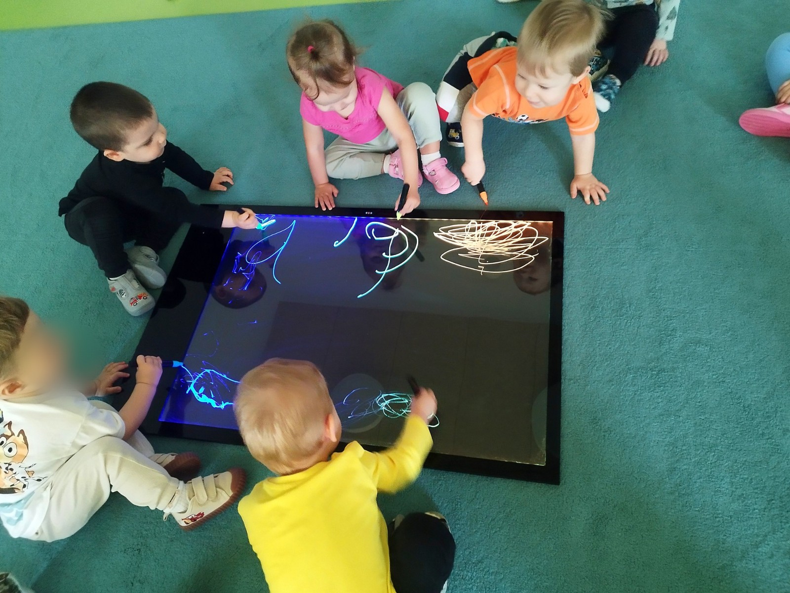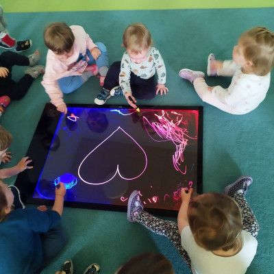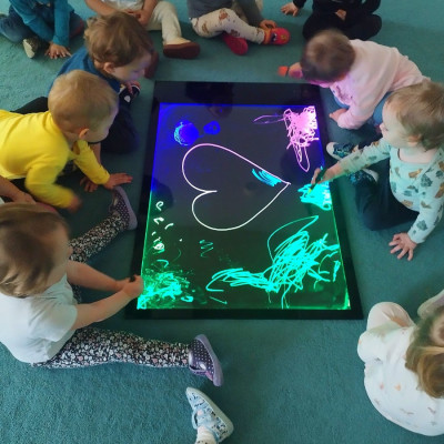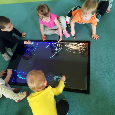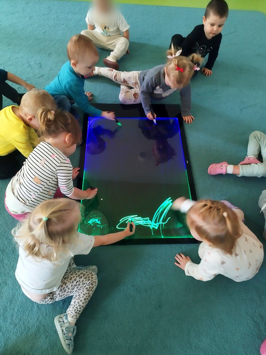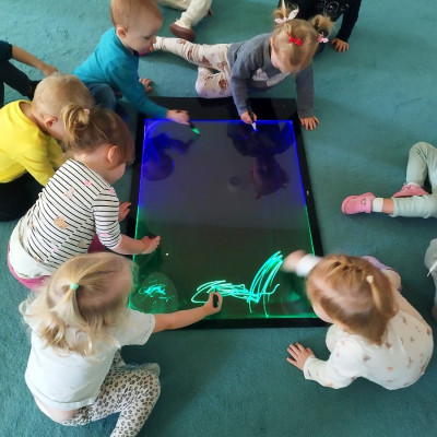 Dzieci mogly także wykonać artystyczne malowanie za pomocą "magicznych" flamastrów, które dzięki podświetlanemu ekranowi ukazały swoje piękne kolory. Gdy światłka gasły rysunki znikały, wprawiając w zachwyt naszych małych artystów.