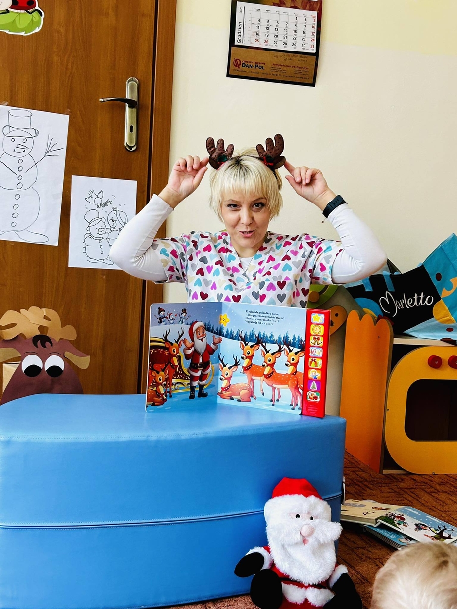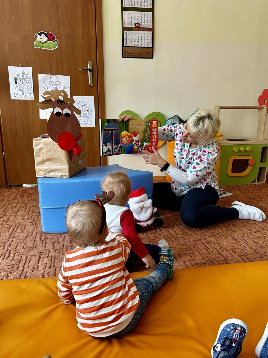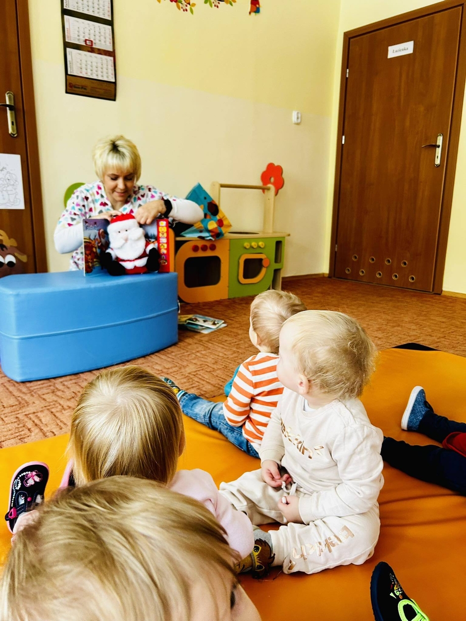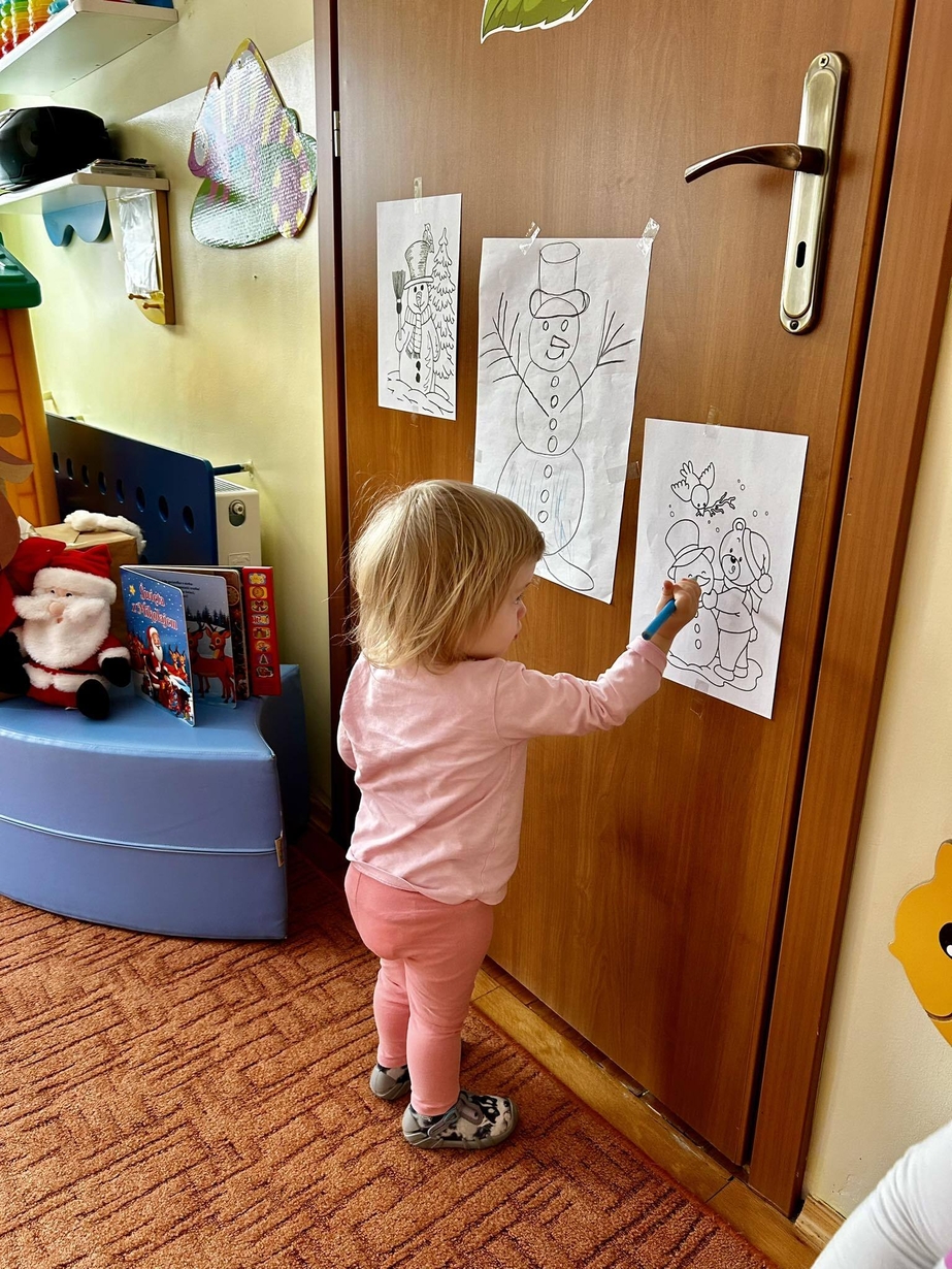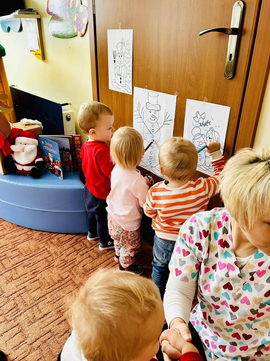 Z okazji tego ze mamy prawdziwą zime, do żłobeczka zawitał bałwanek, którego nasi milusinscy mieli okazje pomalowac. Pani czytała bajeczke o Pani Zimie i Mikołaju.