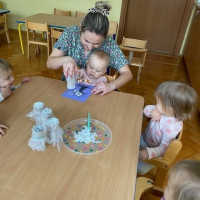 Zdjęcie przedstawia dzieci podczas zajęć w żłobku