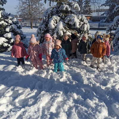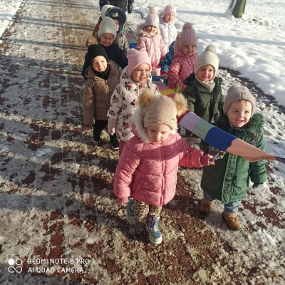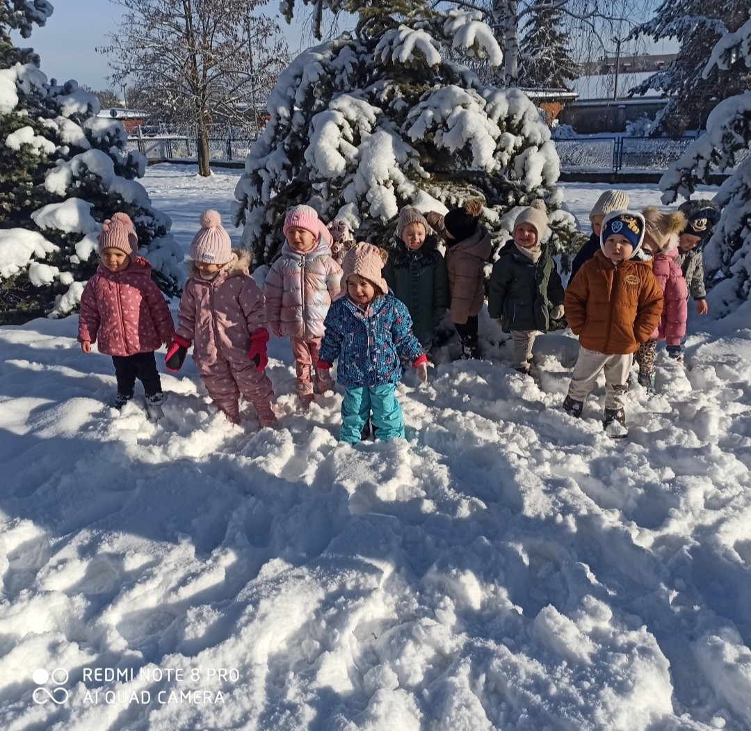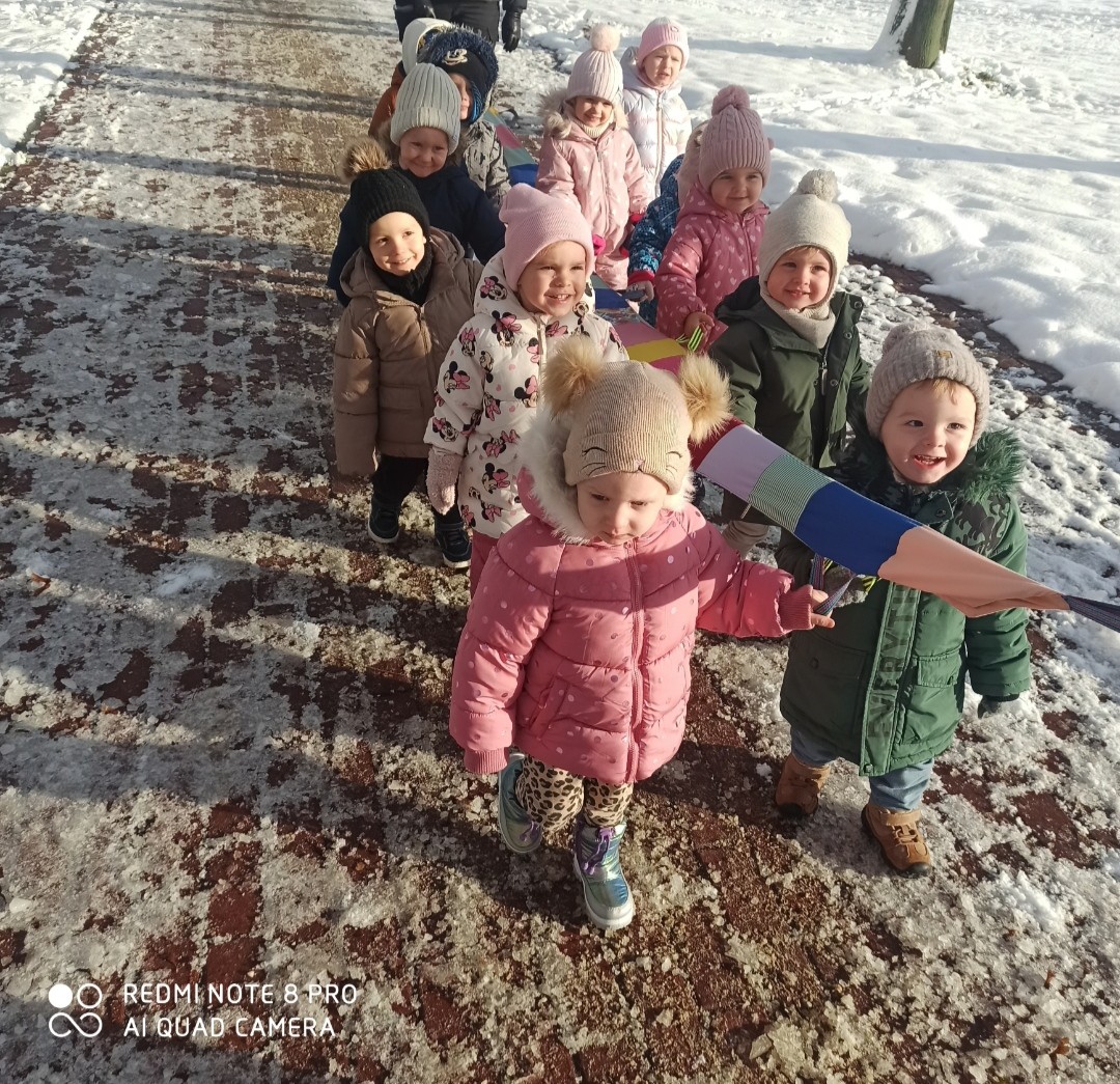 W dniu dzisiejszym dzieci z Grupy 3 Rybki wybrały się na zimowy spacer .