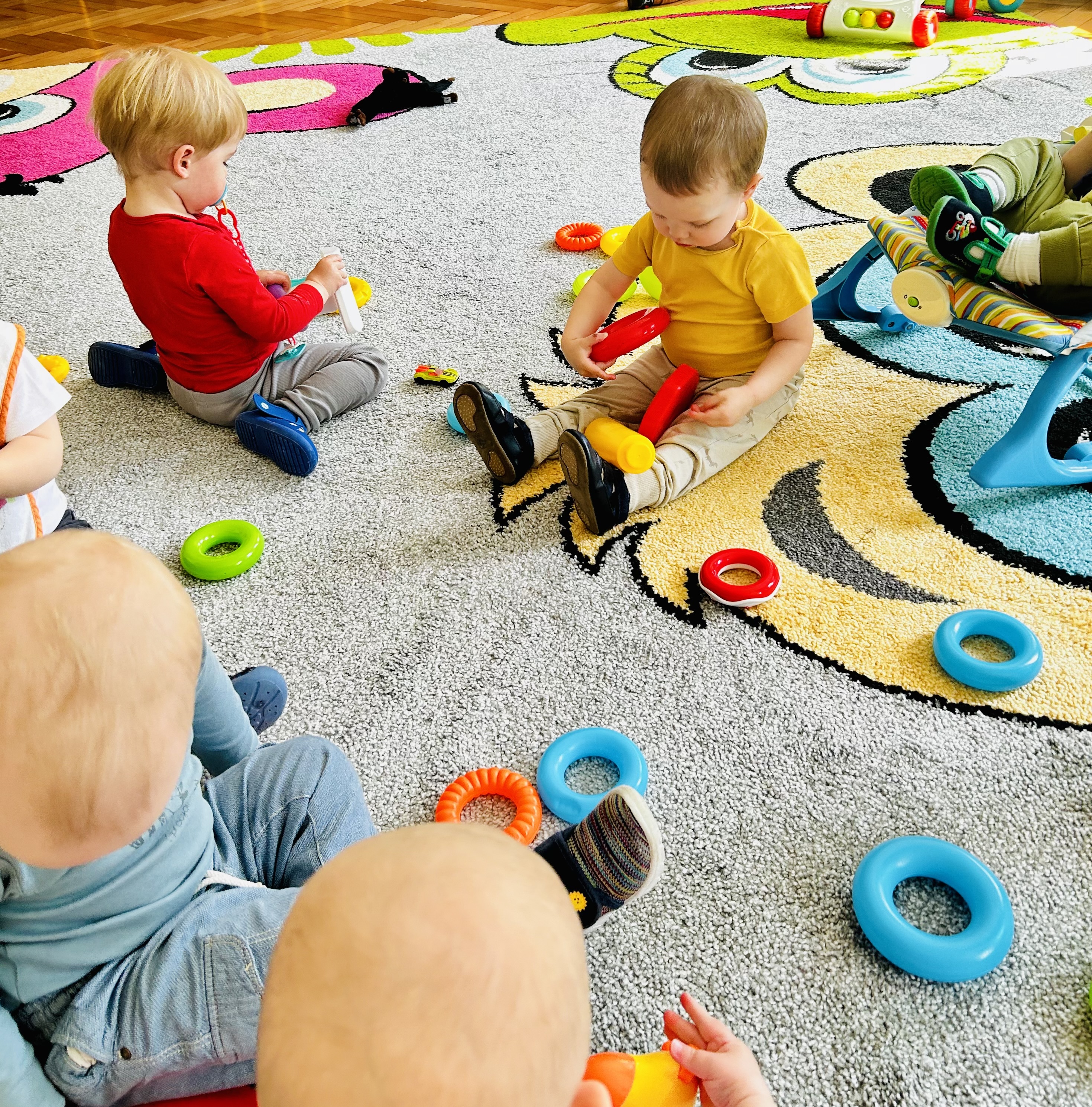 Zgodne zabawy dzieci piramidkami . Zabawa ta rozwija ...Czytaj więcejPrzejdź do pełnej zawartości artykułu: Zabawy Sensoryczne