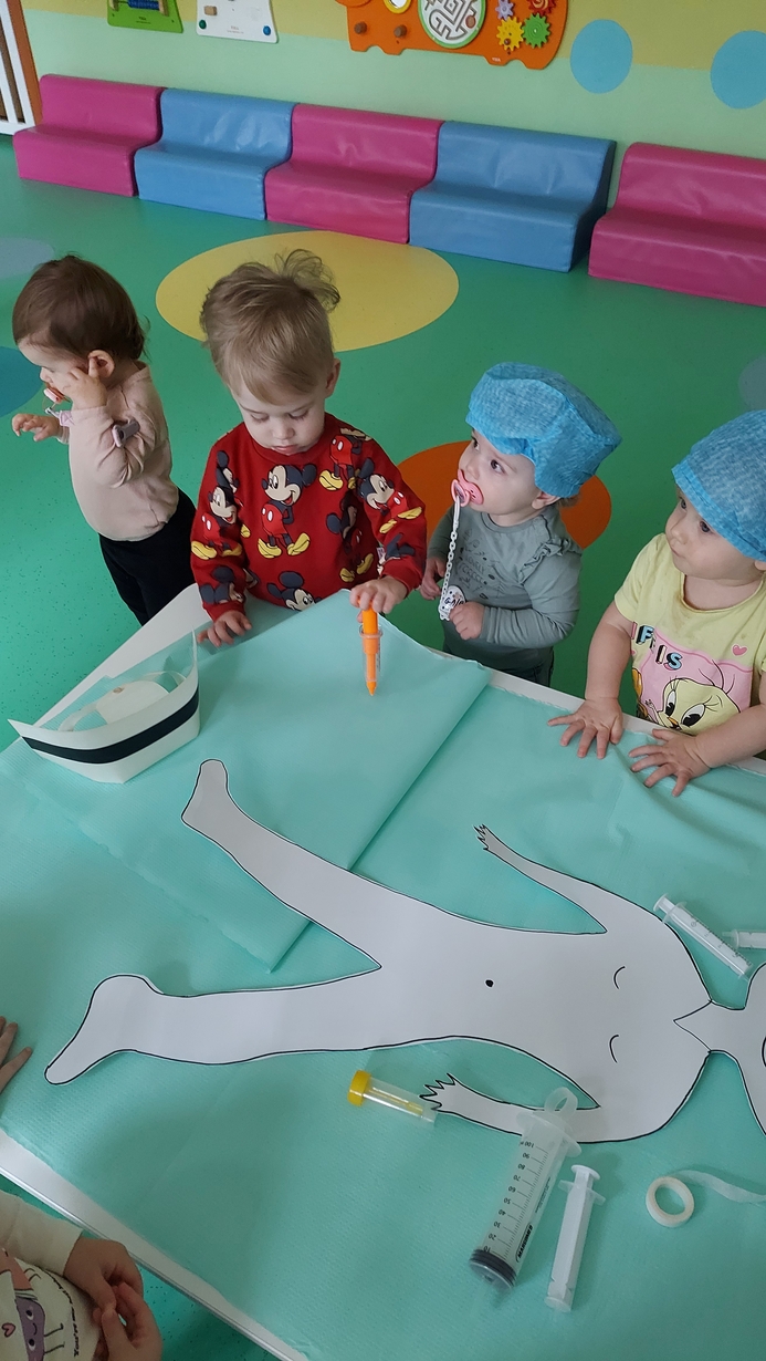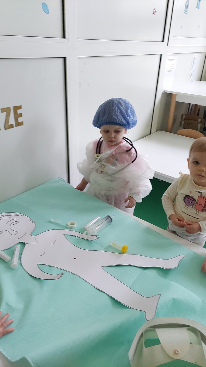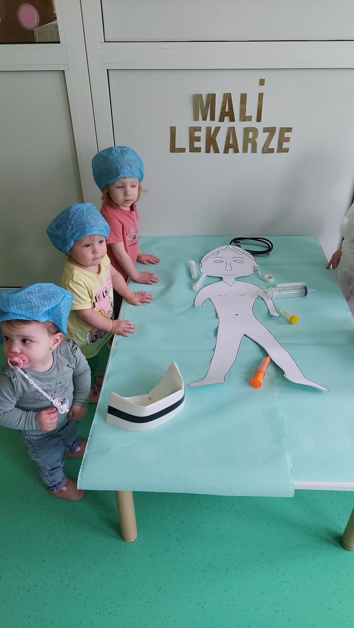 Dzieci z grupy Misie uczestniczył w zajęciach, w których poznały zawód lekarza.