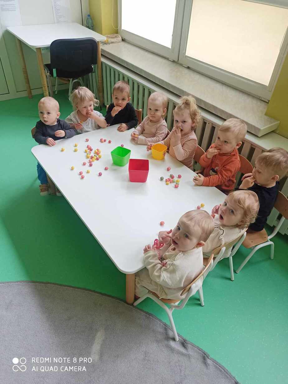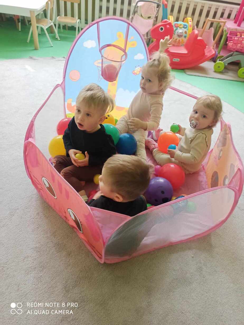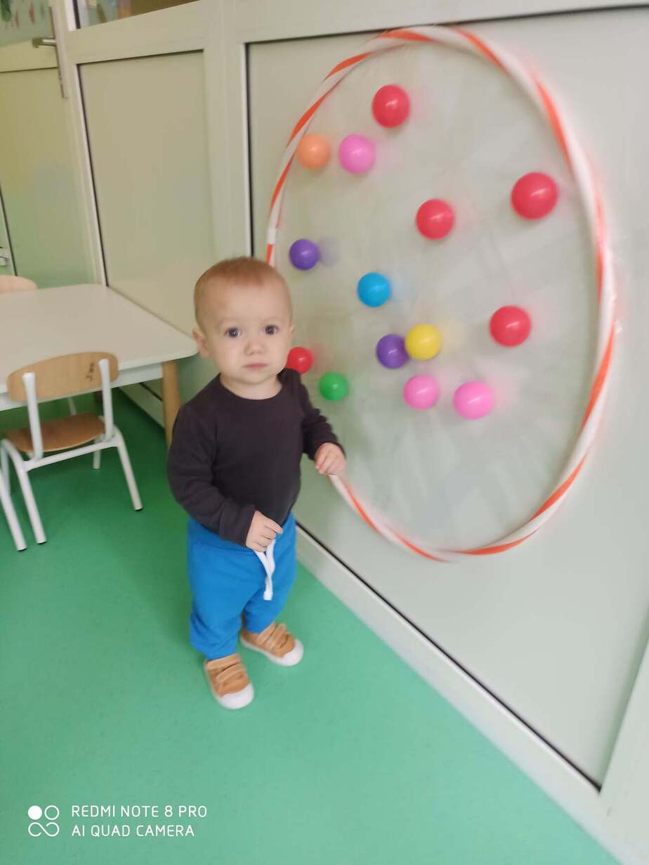 Nasze Maluszki kochają bawić się kolorowymi piłeczkami . Rozwijają motorykę dużą , myślenie , segregowanie oraz koordynację wzrokowo-ruchową . Na dzisiejszych zajęciach dzieci z Grupy 1 Misie dopasowywały kolory piłeczek do odpowiednich otworów w pudełku , przyklejały i ściągały je z taśmy hula hop. Następnie Misie z odpowiedniej odległości rzucały piłką do ułożonych kręgli . Wielką frajdę sprawił dzieciom basen z piłeczkami który wpływa na nawiązywanie relacji z rówieśnikami . Zapraszamy do obejrzenia fotorelacji z tego dnia .
