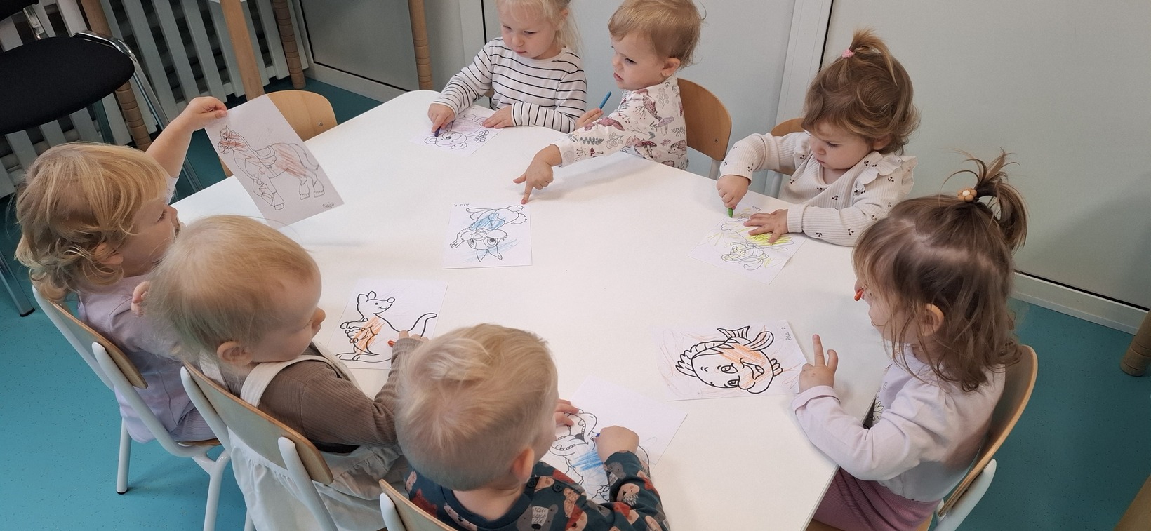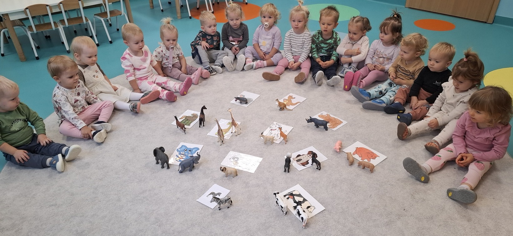 Dzisiaj w grupie drugiej świętowaliśmy Dzień Zwierząt. Dzieci oglądały obrazki, figurki zwierząt domowych i egzotycznych. Zapoznały się również z zasadami szacunku do zwierząt i odpowiedniego opiekowania się nimi. Wspólnie śpiewaliśmy piosenki o zwierzętach. Dzieci poznały również odgłosy zwierząt, w które wsłuchiwały się z ogromnym zainteresowaniem. Dużo uśmiechu i radości towarzyszyło dzieciom w tym dniu.