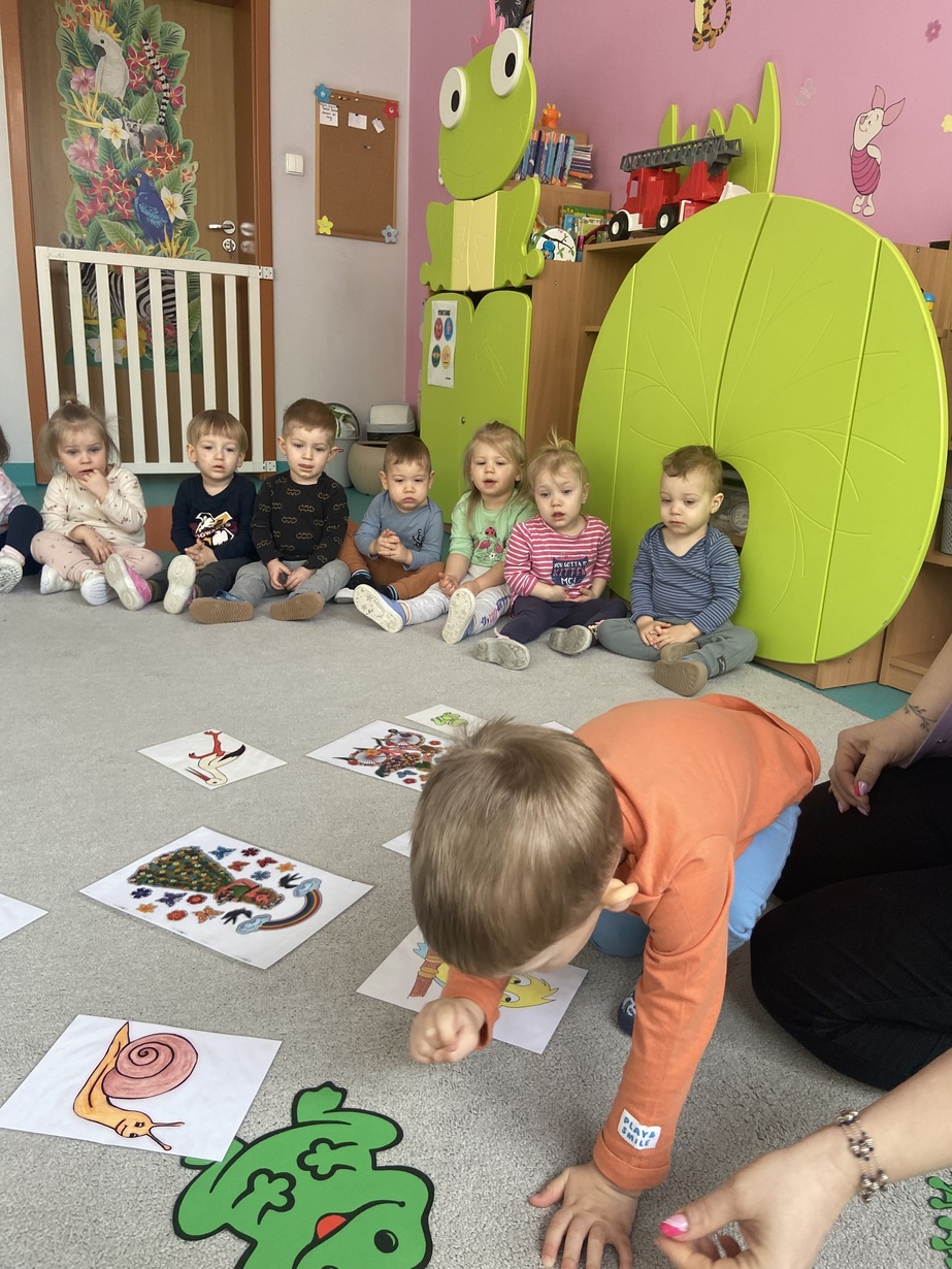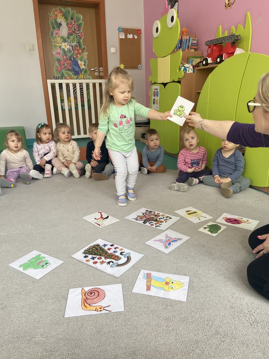 Dzieci z grupy Żabki przywitały wiosnę, słuchały informacji na temat zmian zachodzących w przyrodzie, słuchały piosenek o wiośnie, żabce i bocianie.