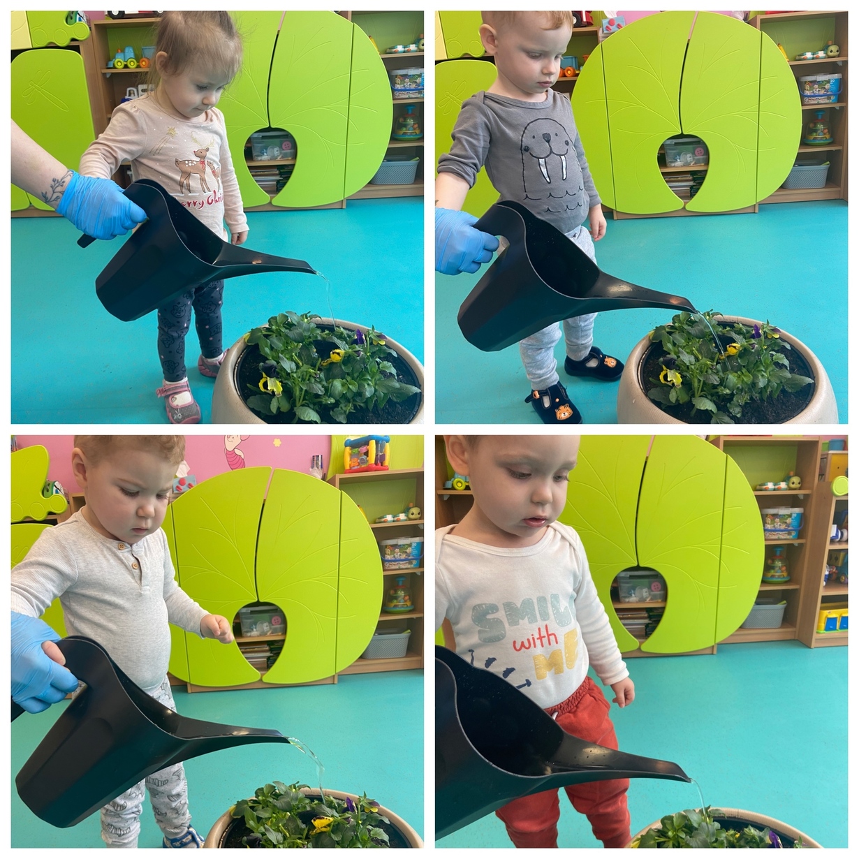 Dzieci razem z opiekunkami sadziły cebulki oraz bratki, które będą zdobiły naszą placówkę.