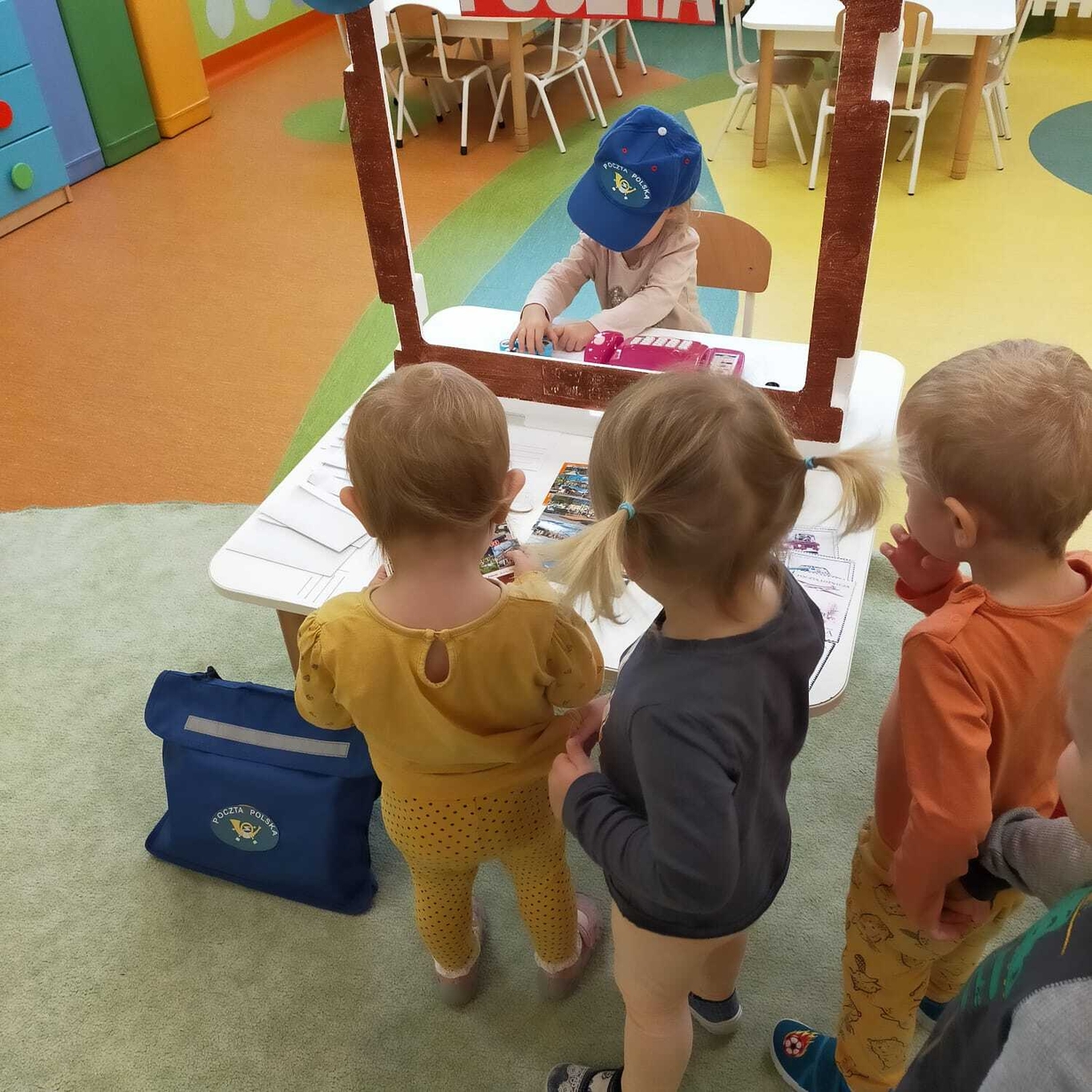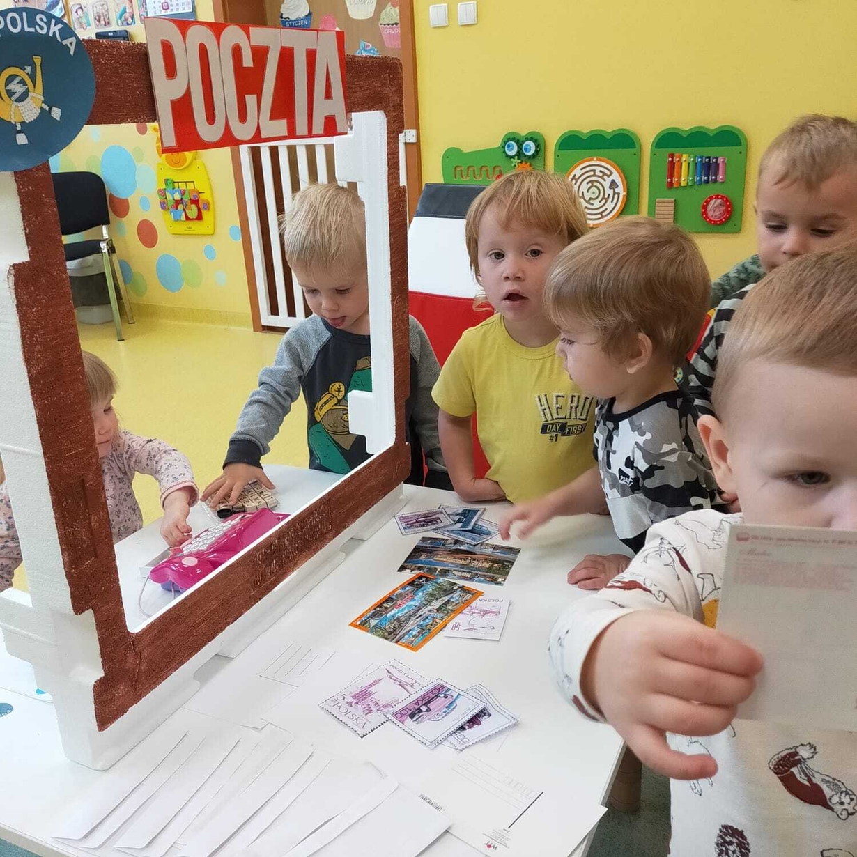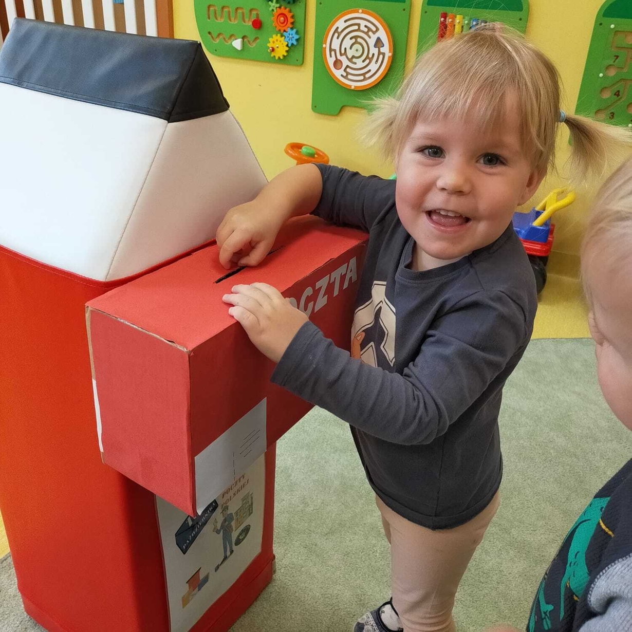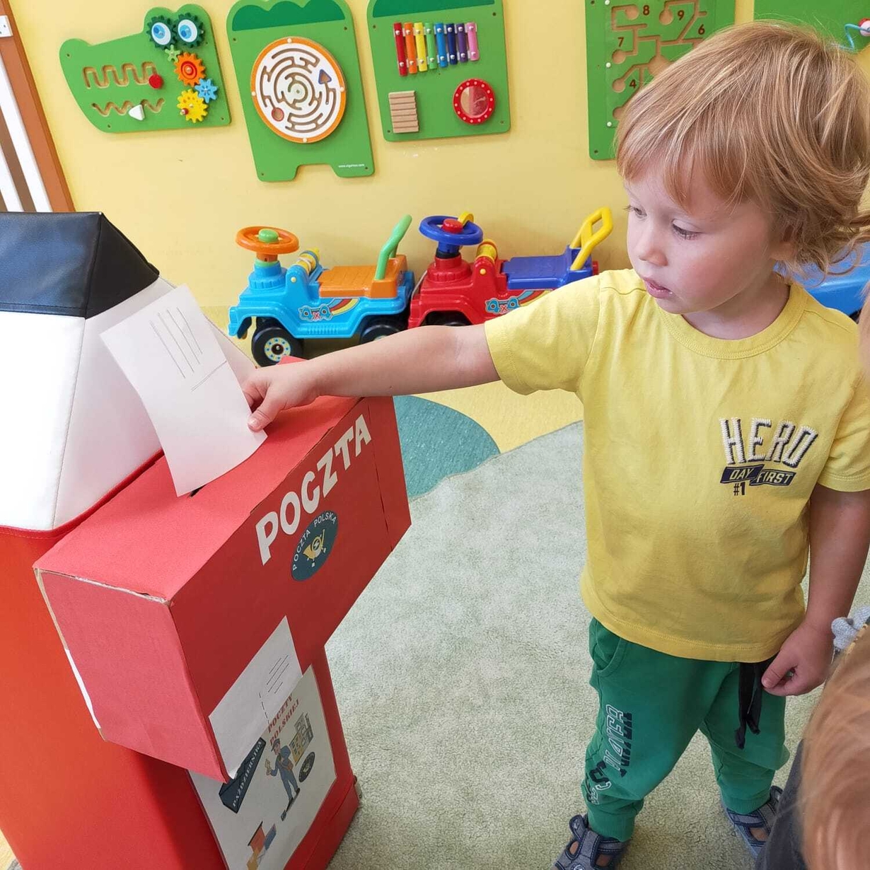 18 października obchodziliśmy Dzień Poczty Polskiej oraz Dzień Listonosza. Z tej okazji dzieci z grupy Rybek uczestniczyły w zajęciach, podczas których poznały zawód listonosza i jego obowiązki. Wybraliśmy się na zaaranżowaną pocztę i wcieliliśmy się w rolę listonosza. Na koniec dzieci z radością same zaprojektowały swój znaczek pocztowy i w ramach wrzucały listy do skrzynki.
