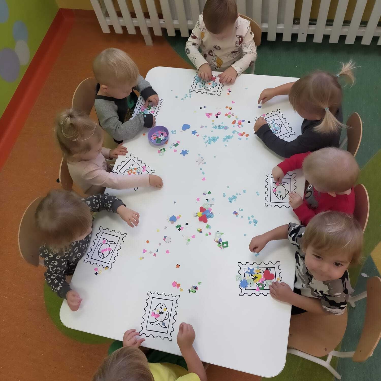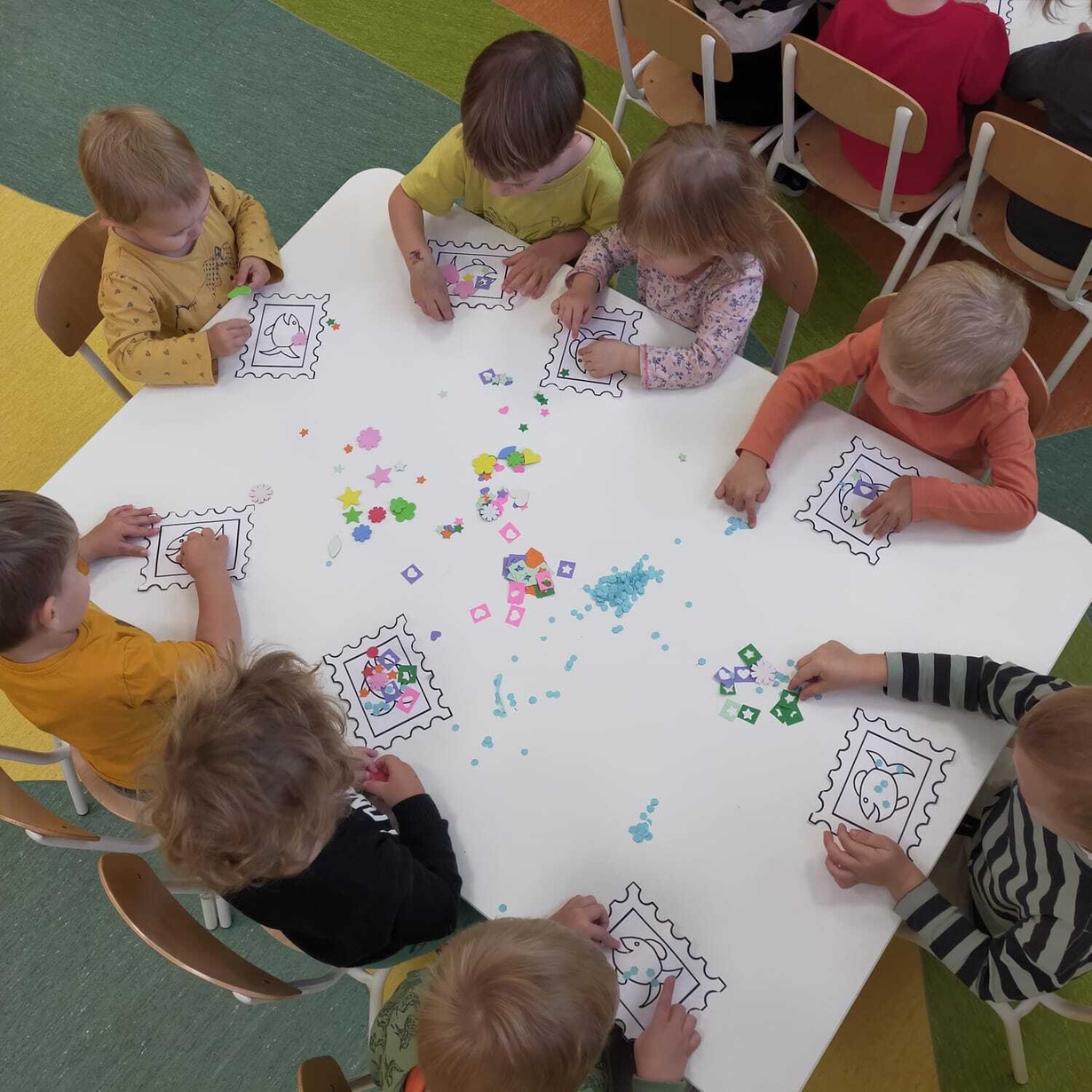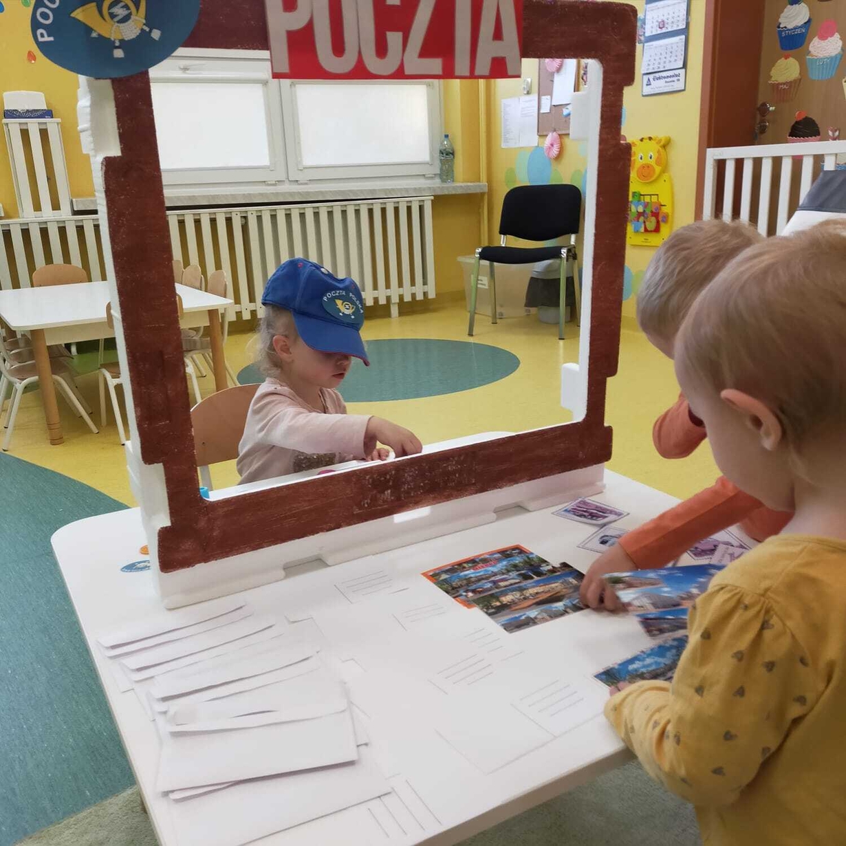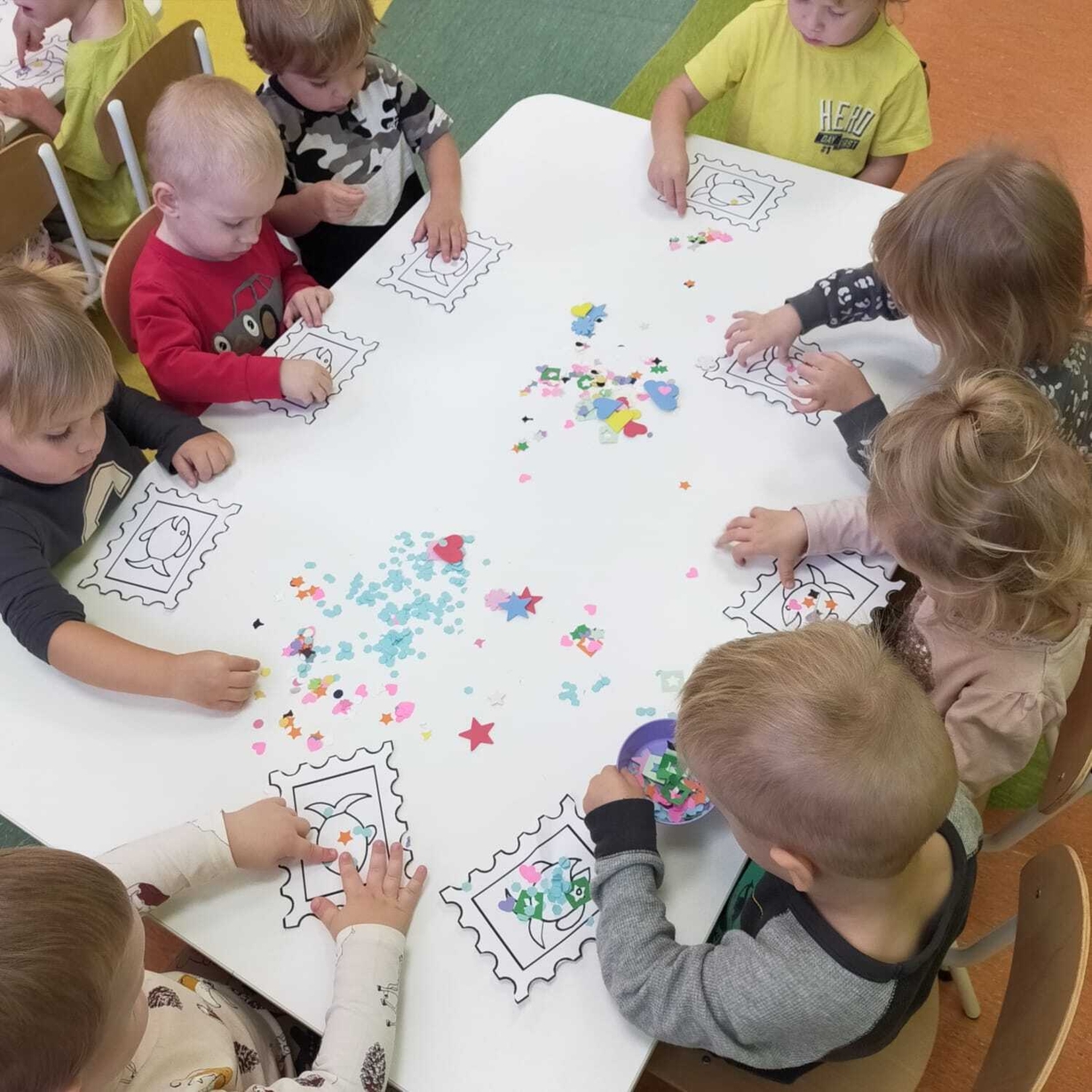 18 października obchodziliśmy Dzień Poczty Polskiej oraz Dzień Listonosza. Z tej okazji dzieci z grupy Rybek uczestniczyły w zajęciach, podczas których poznały zawód listonosza i jego obowiązki. Wybraliśmy się na zaaranżowaną pocztę i wcieliliśmy się w rolę listonosza. Na koniec dzieci z radością same zaprojektowały swój znaczek pocztowy i w ramach wrzucały listy do skrzynki.