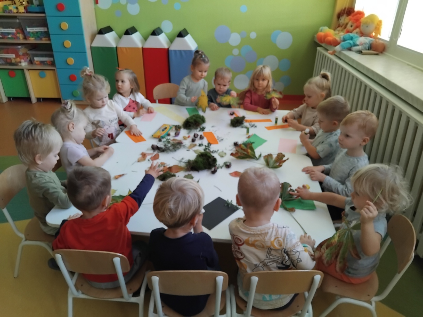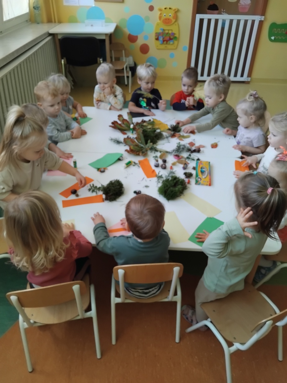 Jesienna aura zachęca do spacerów i podziwiania zmian zachodzących w przyrodzie. Dzieci z grupy Rybki wykorzystując słoneczną pogodę wybrały się wraz z opiekunkami na spacer, który był połączeniem przyjemnego z pożytecznym. Na spacerze dzieci zbierały kolorowe liście i kasztany. Po powrocie do żłobka z zebranych darów jesieni przy użyciu plasteliny, kleju i kolorowego papieru wykonały śmieszne kasztanowe zwierzątka. Nasze zajęcia zakończyliśmy wspólnymi tańcami do piosenek o tematyce jesiennej.Zapraszamy do galerii zdjęć.