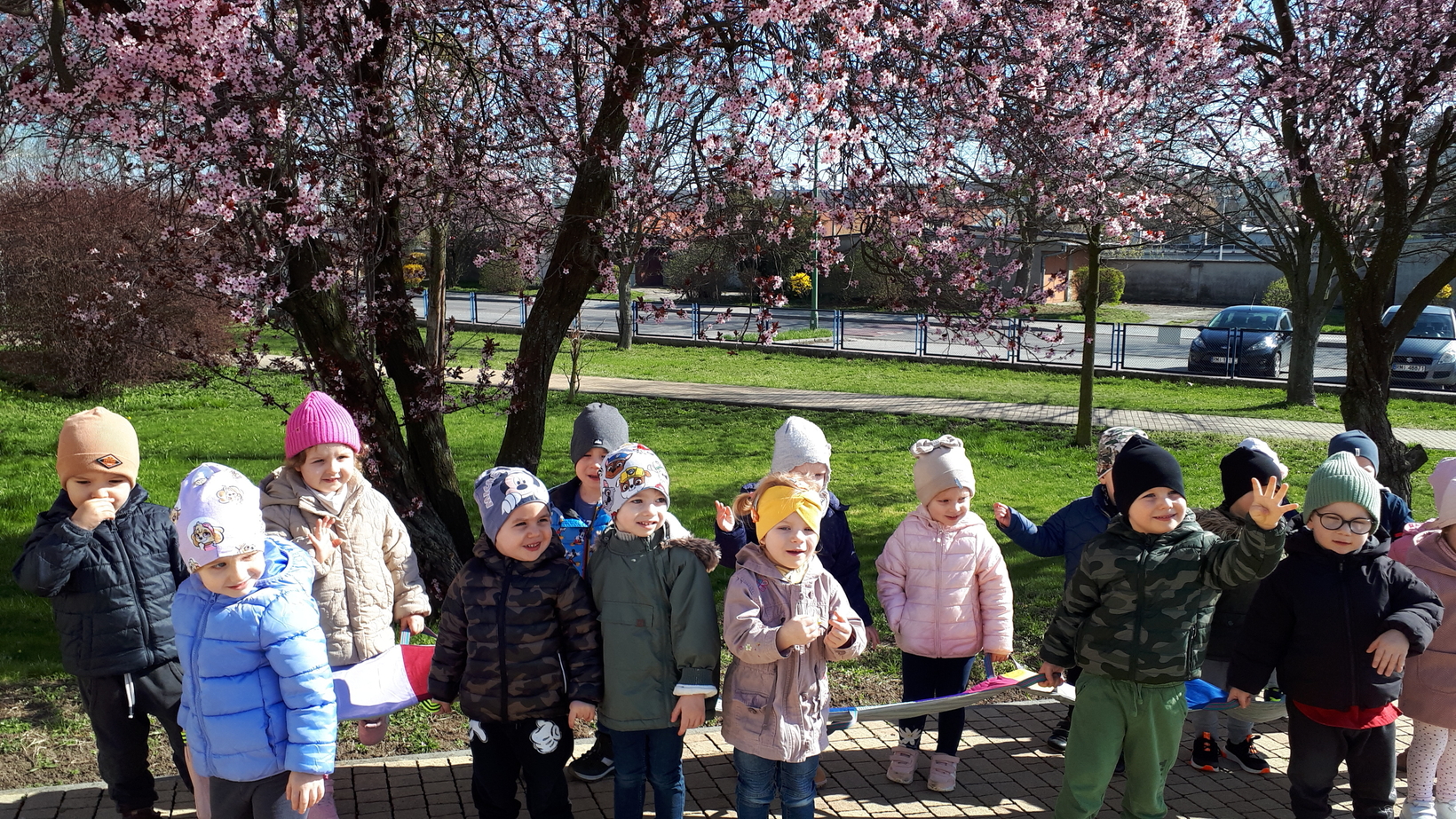 Dzieci bardzo lubią przebywać na świeżym powietrzu szczególnie gdy sprzyja temu pogoda. To właśnie dzisiaj w naszym żłobku starszaki wraz z opiekunkami wyszły na pierwszy wiosenny spacer. Dzieci radośnie maszerowały w blasku słonecznych promieni śpiewając piosenki. Wspólnie wsłuchiwaliśmy się w śpiew ptaków oraz rozmawialiśmy o pierwszych zwiastunach wiosny. Dzieci zaobserwowały kopczyk kreta i zaśpiewaliśmy znaną dzieciom piosenkę pt.,,Krecik, krecik, zielony ma berecik.......". To był wspaniały dzień na spacer w poszukiwaniu i rozpoznawaniu oznak wiosny.