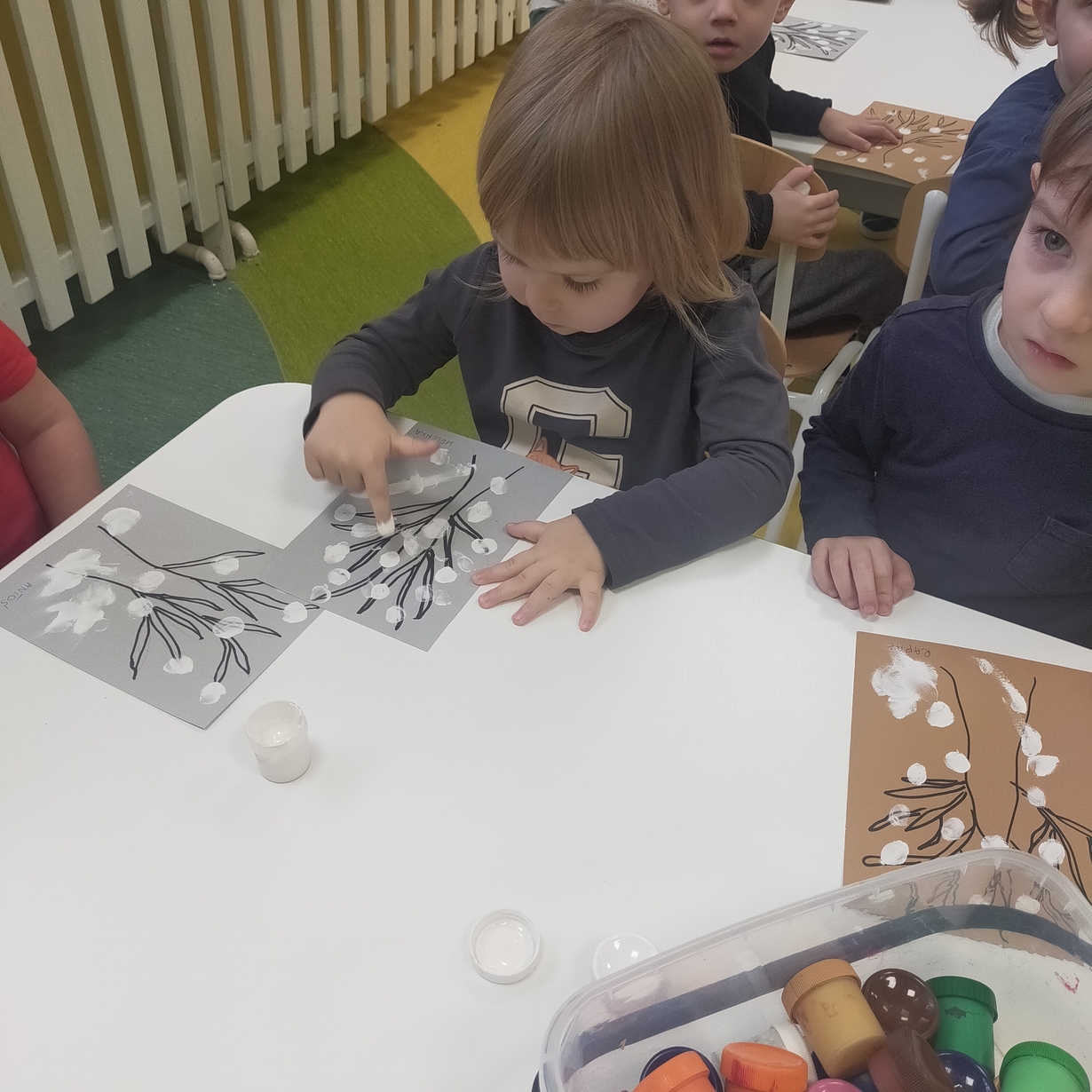 Choć za oknem brakuje nam śniegu, dzieci z grupy Rybki mają ochotę powspominać tę piękną porę roku.