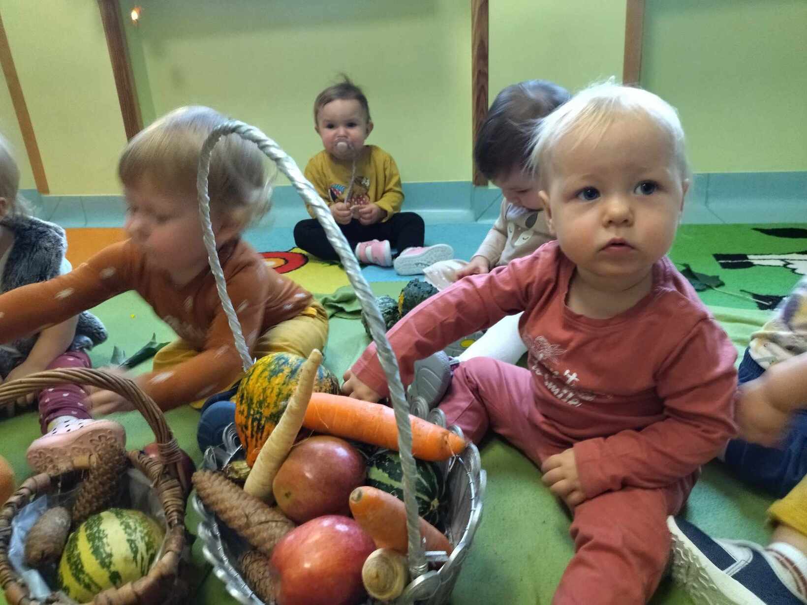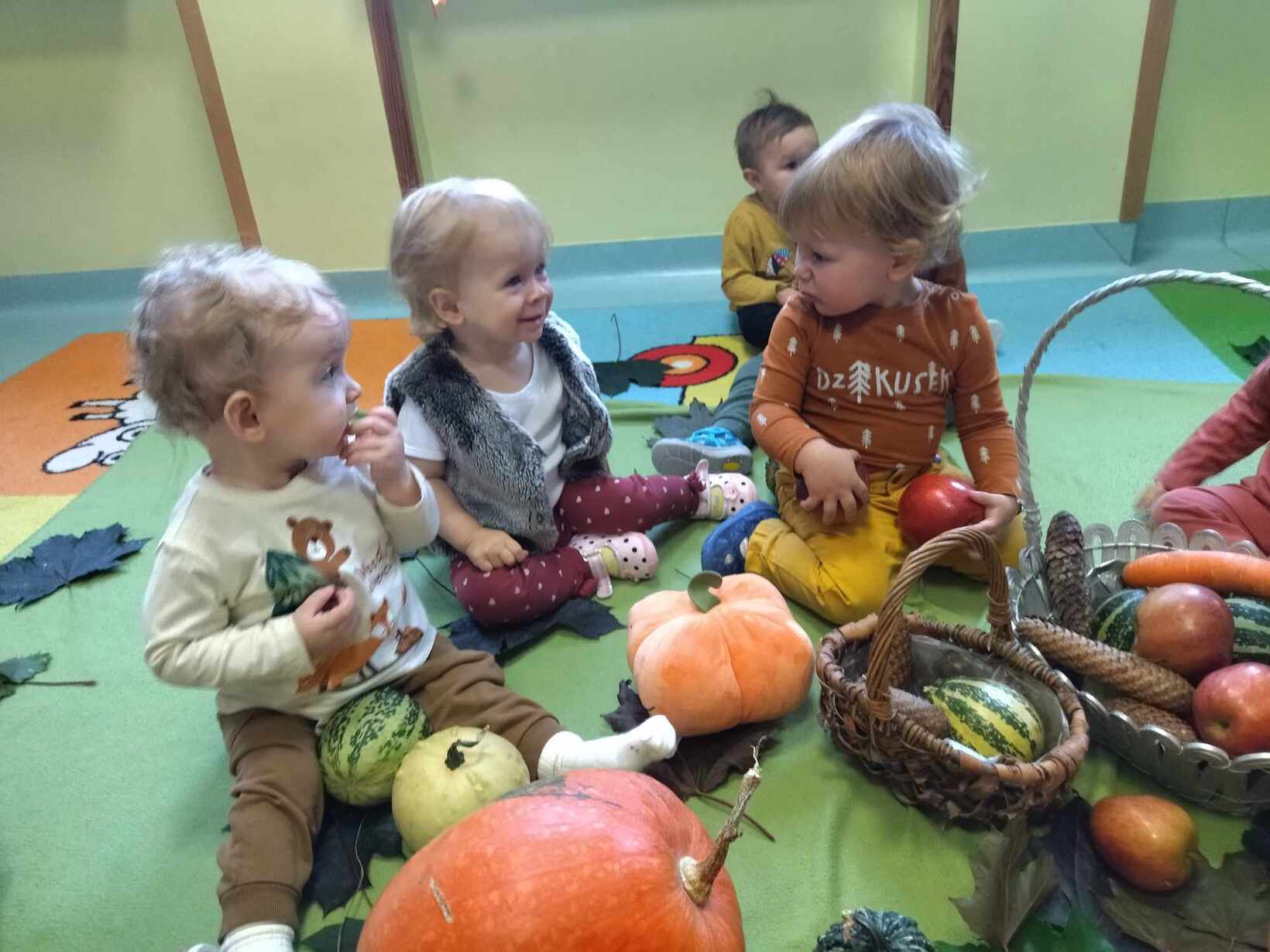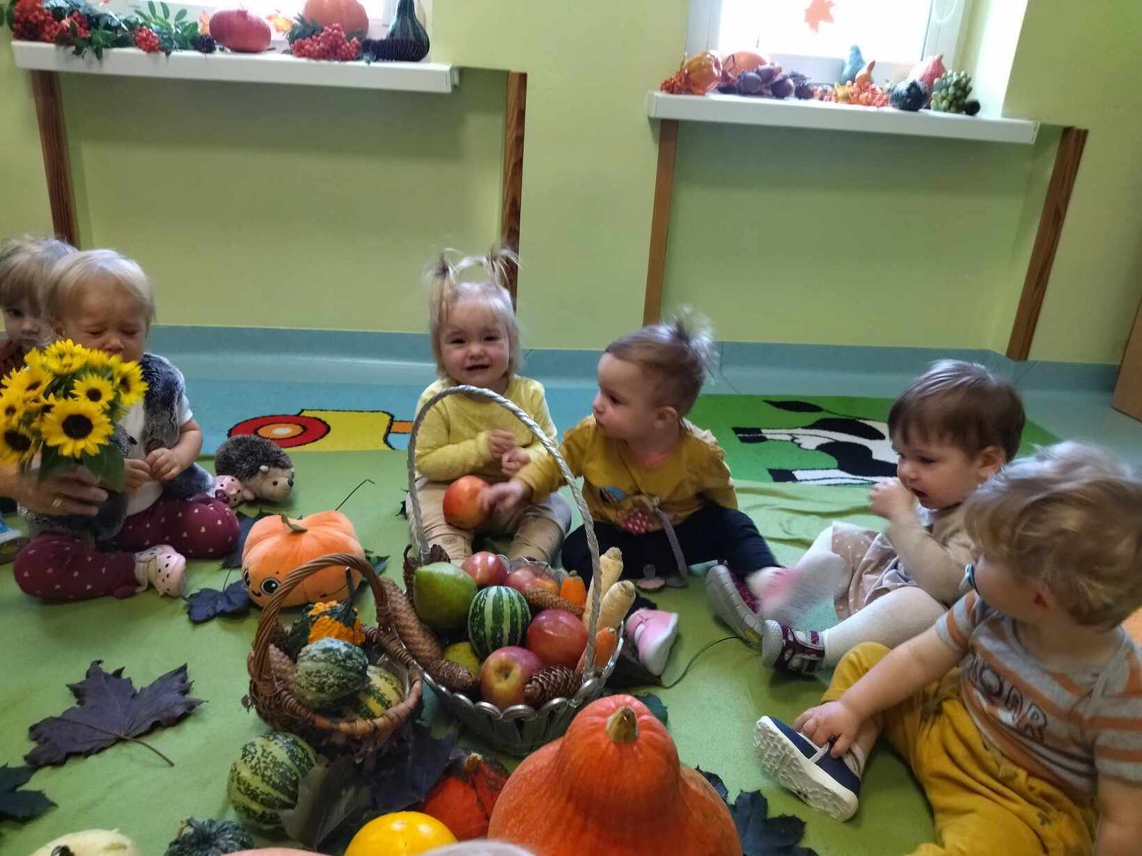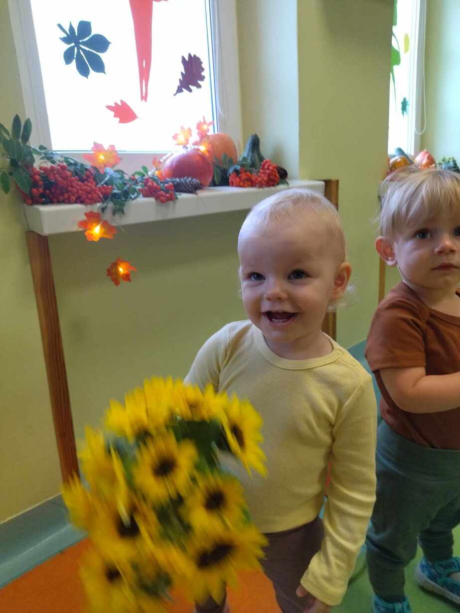 W dniu dzisiejszym dzieci z grupy,, Żabki " zapoznawały się z darami jakie przyniosła Pani Jesień.