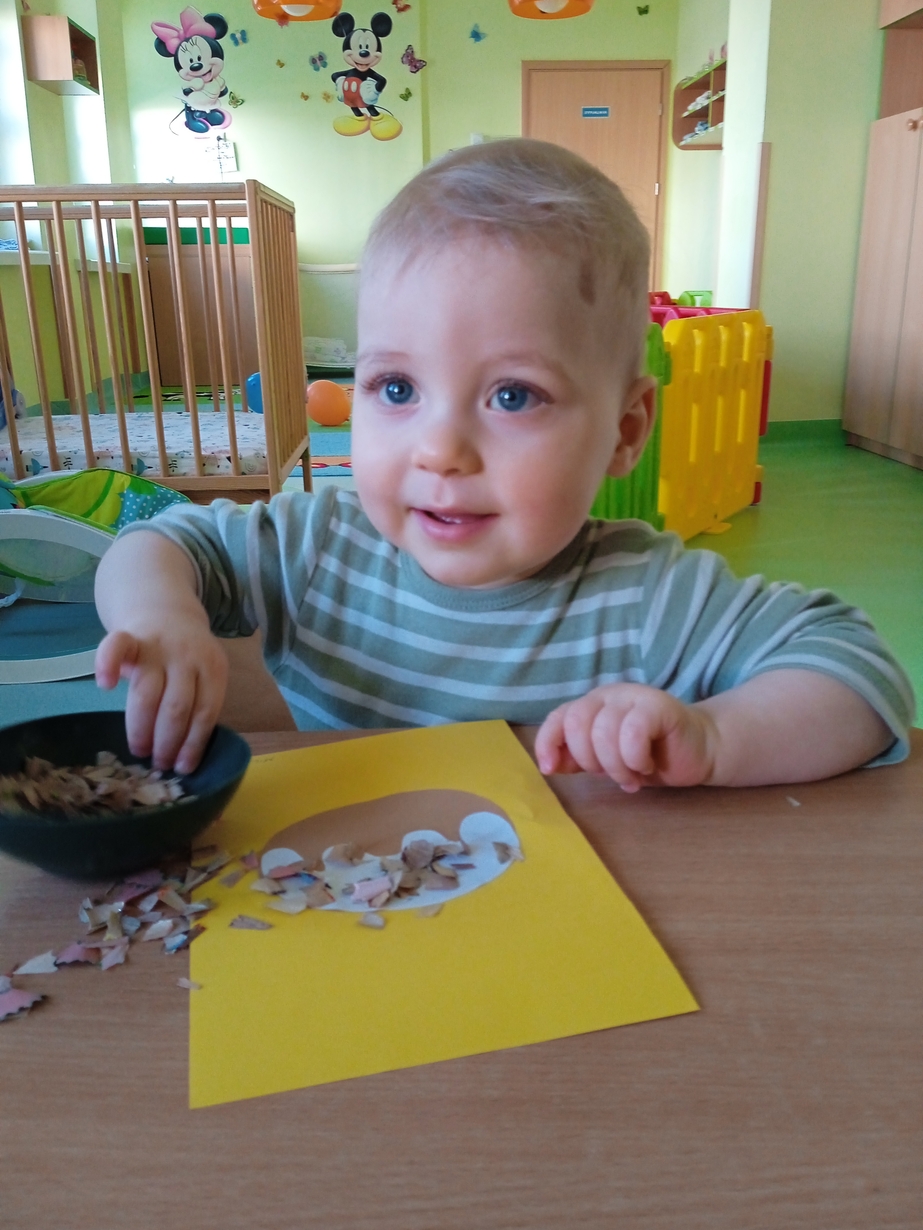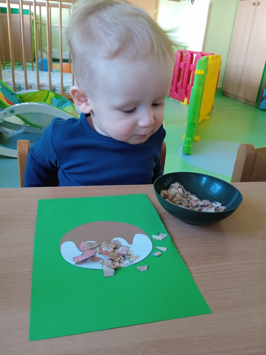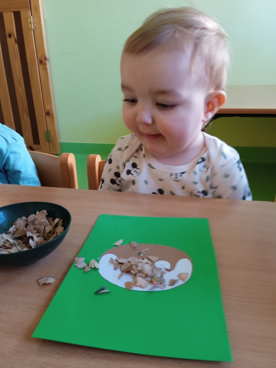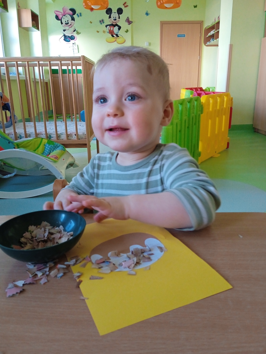 Z tej okazji maluszki z grupy I z pełnym zaangażowaniem ozdabiały swoje papierowe pączki kolorową posypką.