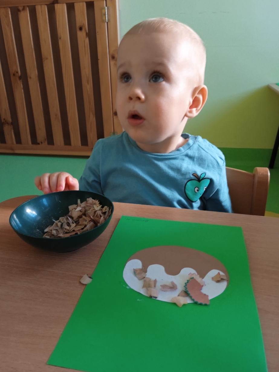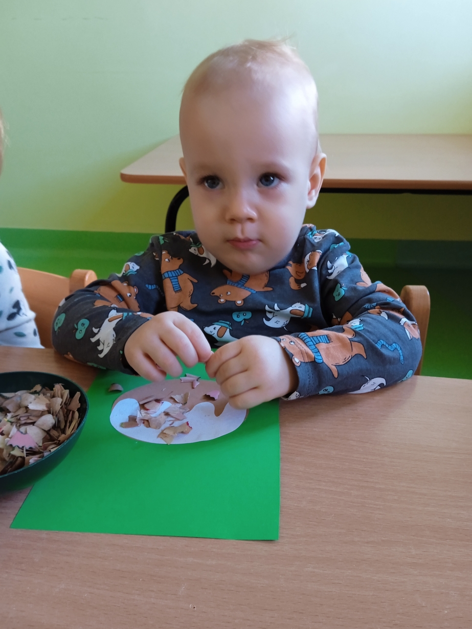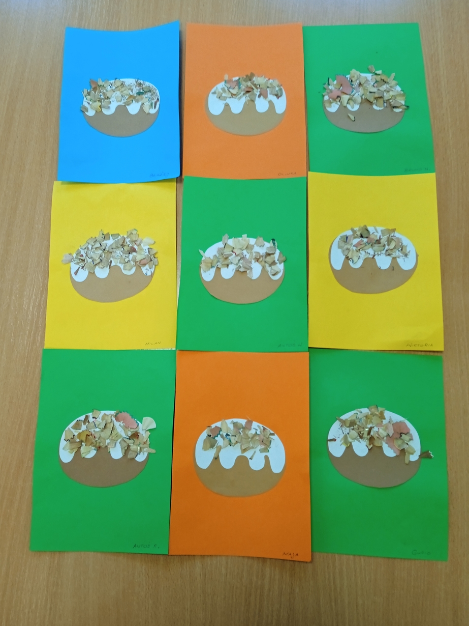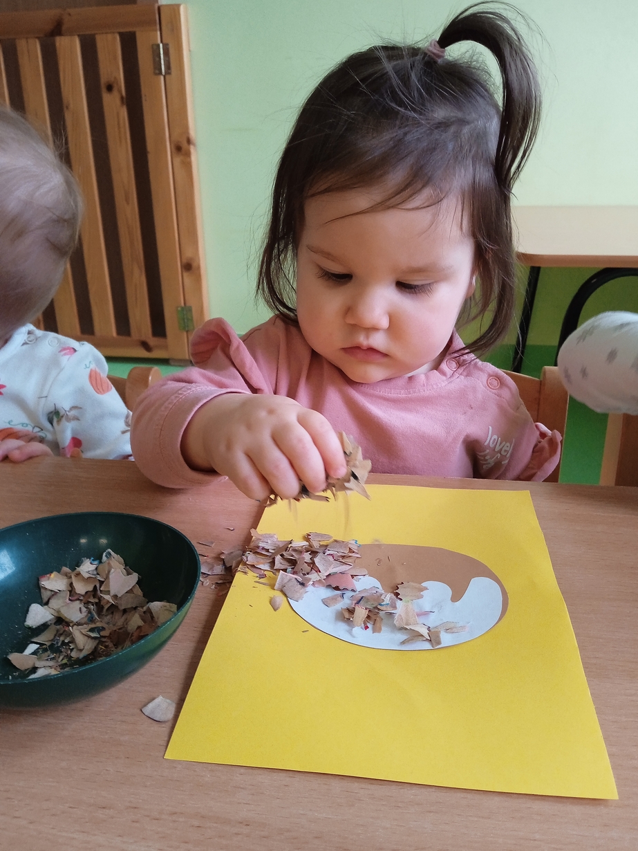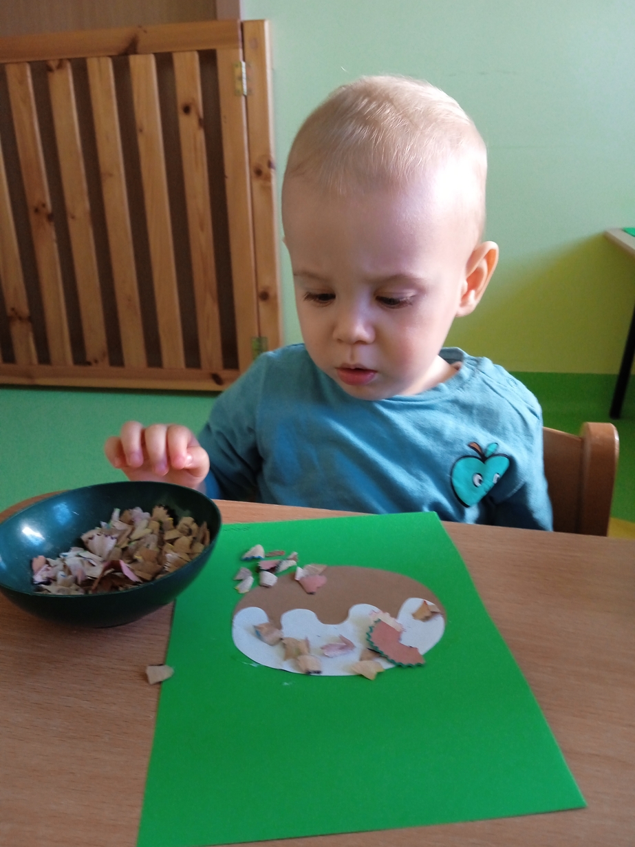 Z tej okazji maluszki z grupy I z pełnym zaangażowaniem ozdabiały swoje papierowe pączki kolorową posypką.