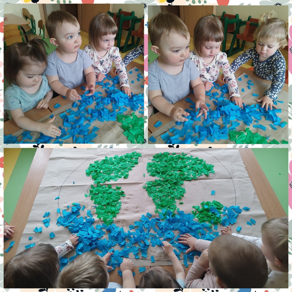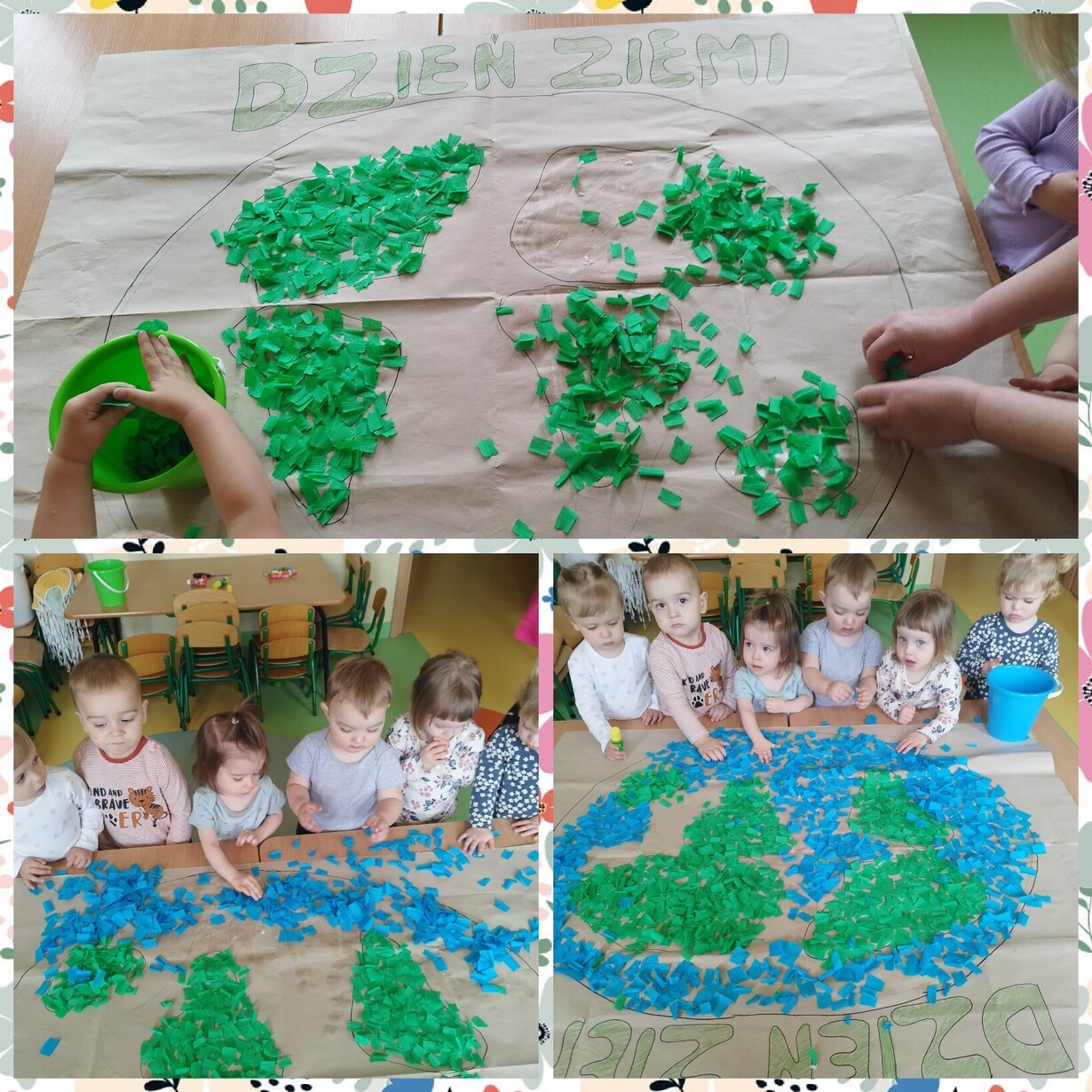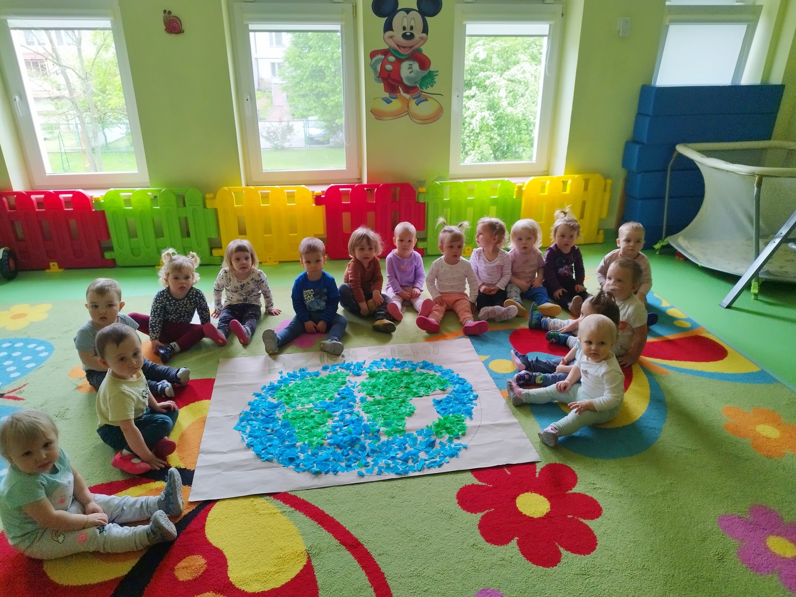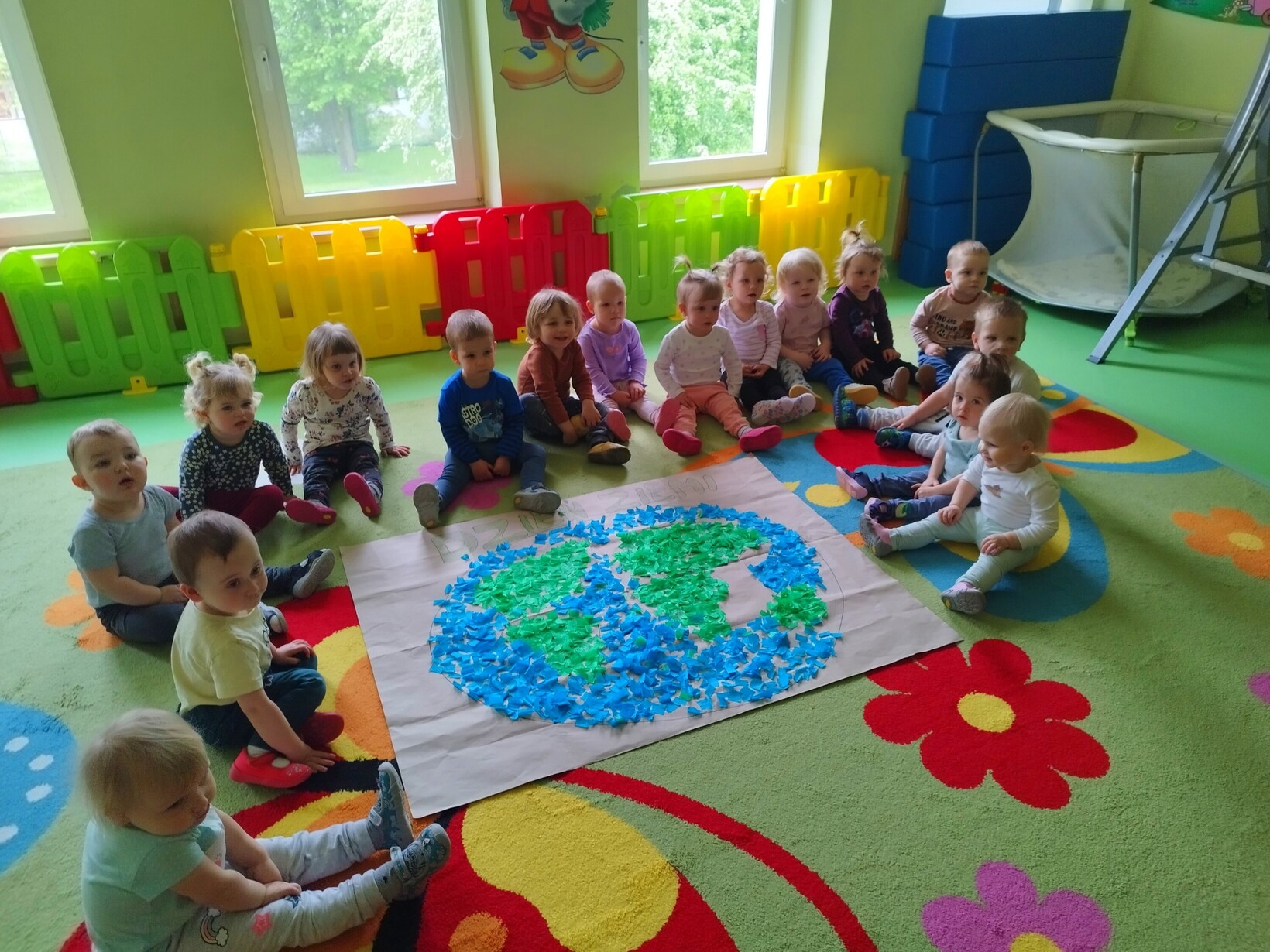 Na koniec zajęć dzieci z grupy Biedronki z pomocą cioć wykonały wspólną prace plastyczne przedstawiająca nasza piękna planetę.