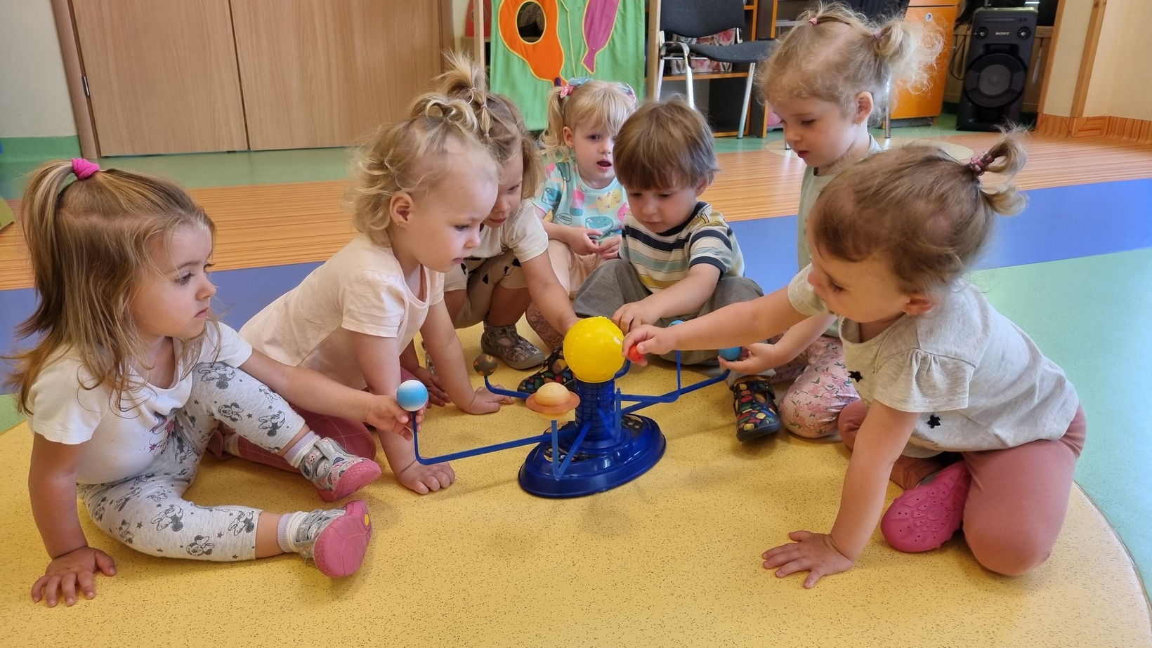 W tym dniu dzieci z grupy Muchomorków poznawały kosmos, oglądały model układu słonecznego. Brały udział w zabawie ruchowej pt. "W Kosmosie". Na sam koniec każde dziecko wykonało swoją rakietę kosmiczną.