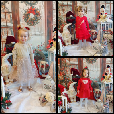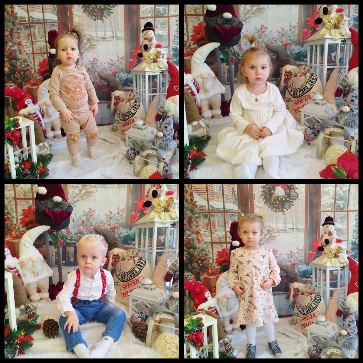 Zdjęcie przedstawia dzieci podczas świątecznej sesji zdjęciowej