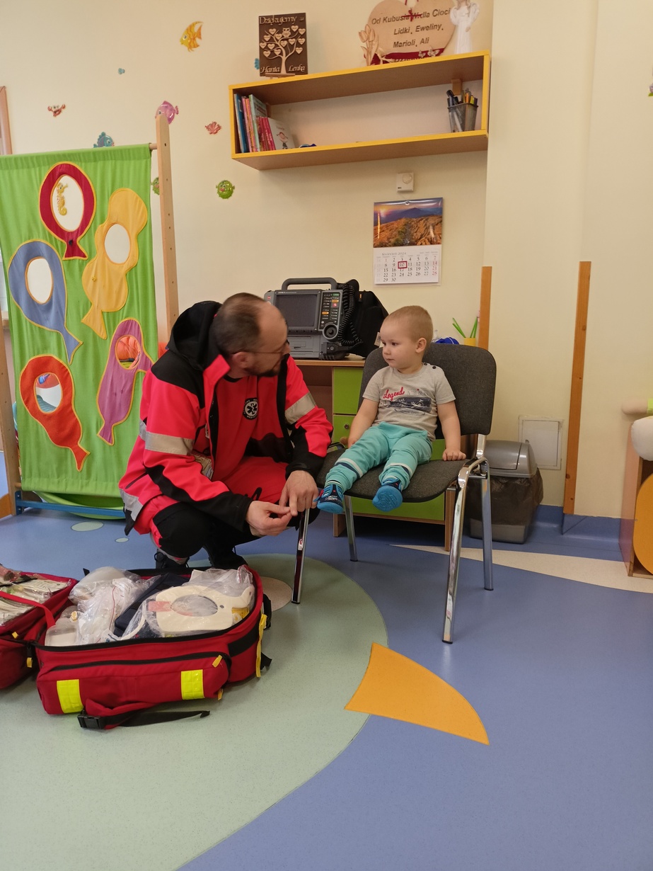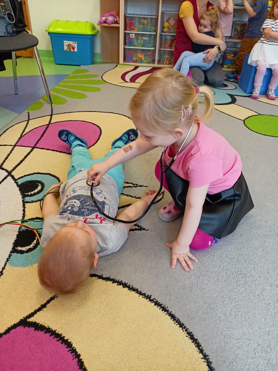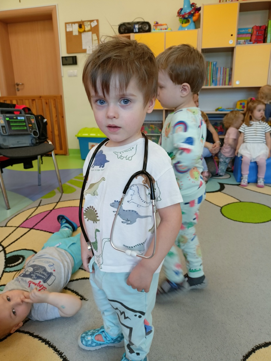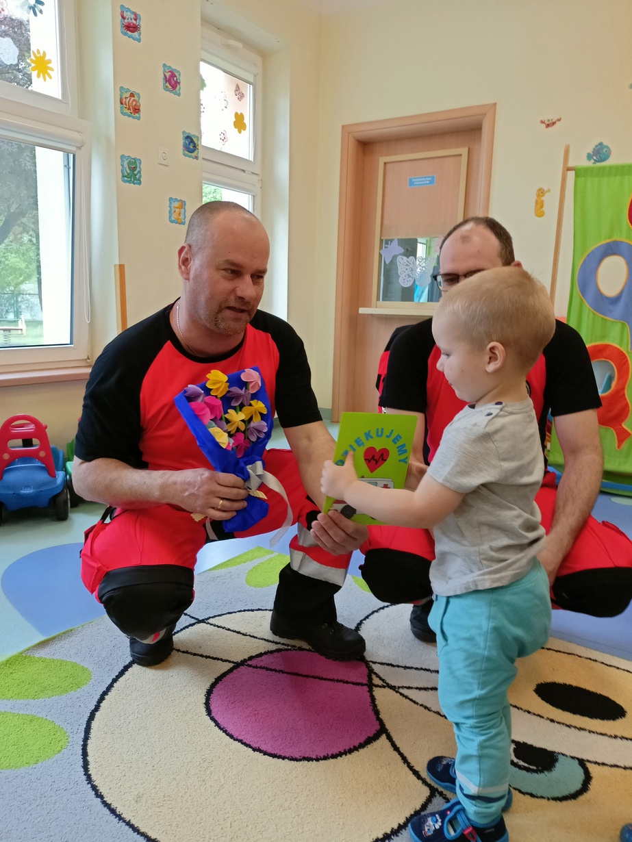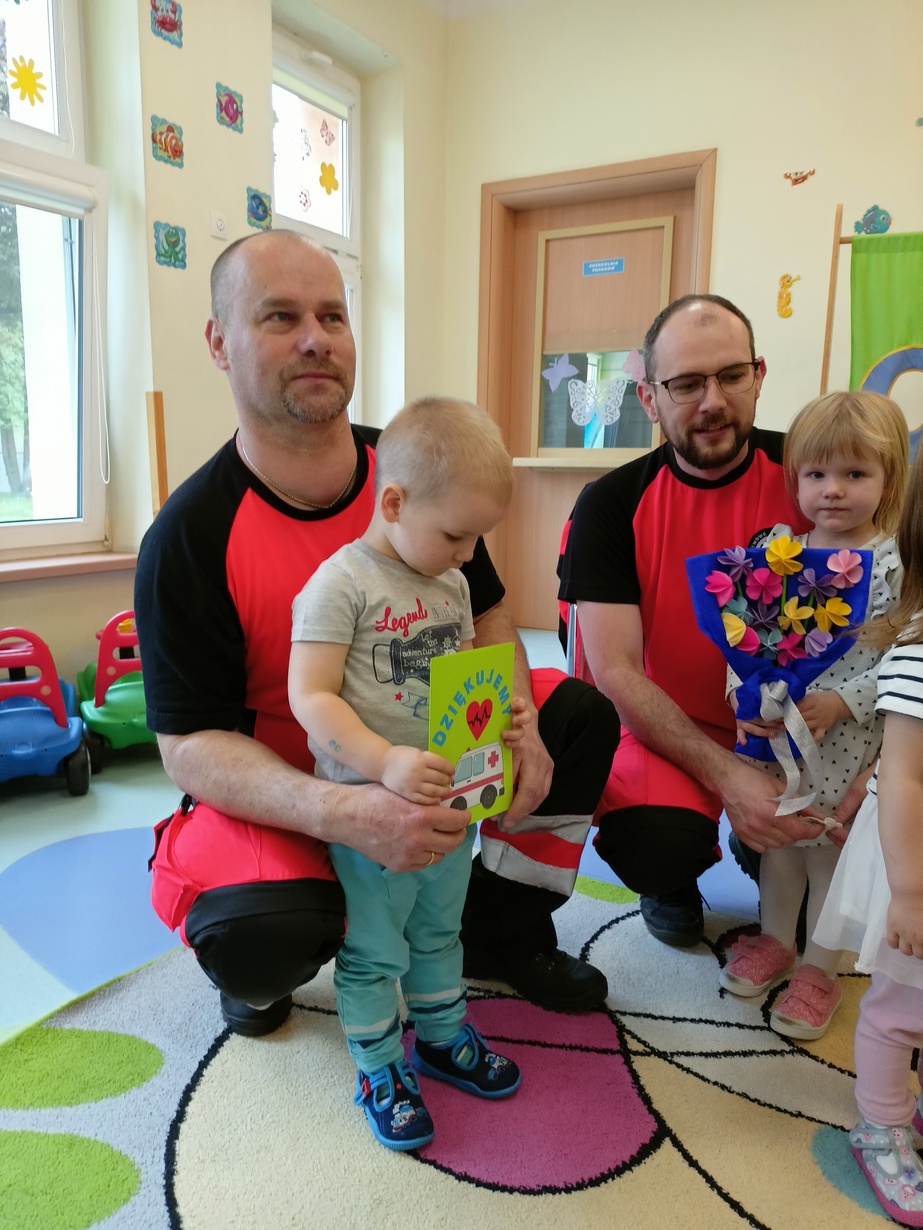 W dniu dzisiejszym obchodziliśmy"Dzień Służby Zdrowia". Na tą okoliczność odwiedzili nas Ratownicy Medyczni,których dzieci powitały piosenką pod tytułem "Numer alarmowy".Dzieci z uwagą słuchały pogadanki na temat pracy ratowników.Chetnie oglądały karetkę i sprzęt medyczny.Pozowały do zdjęć? jak również wcielały się w rolę ratownik-pacjet.Na zakończenie dzieci wręczyły laurki w zamian dostały dyplomy i naklejki?.