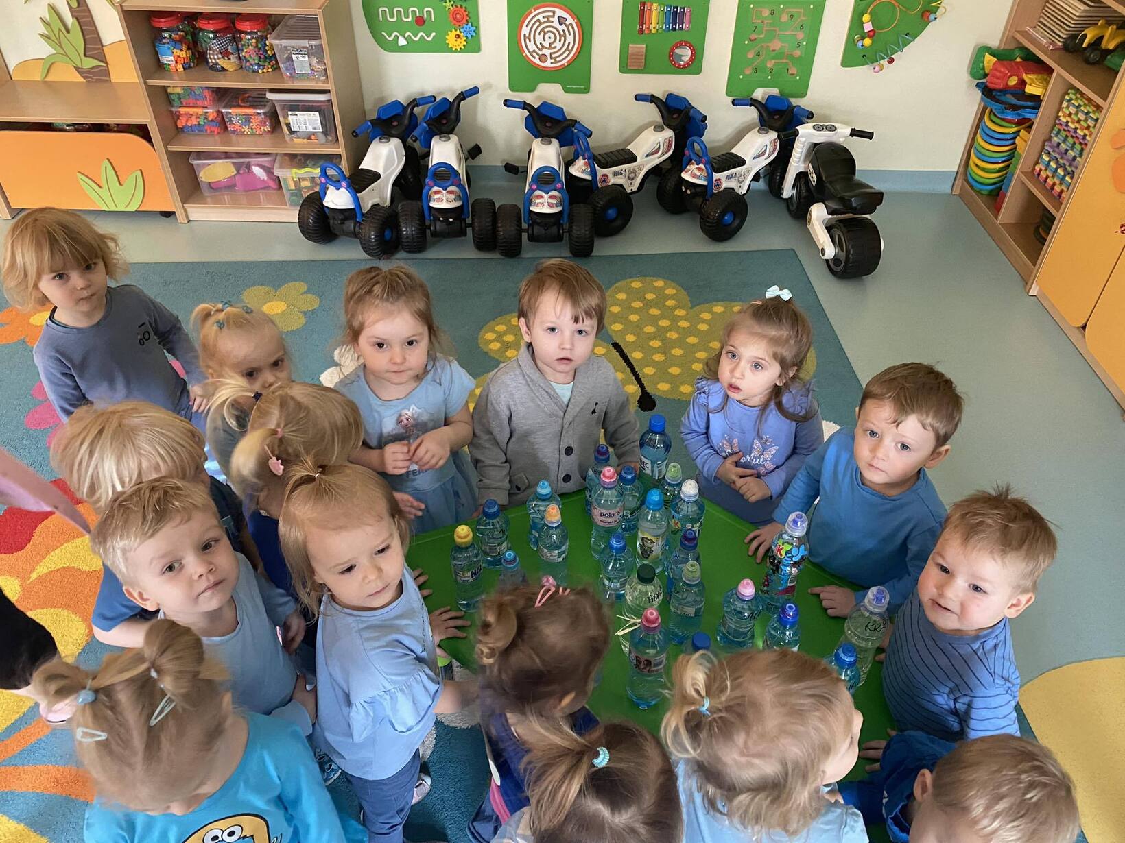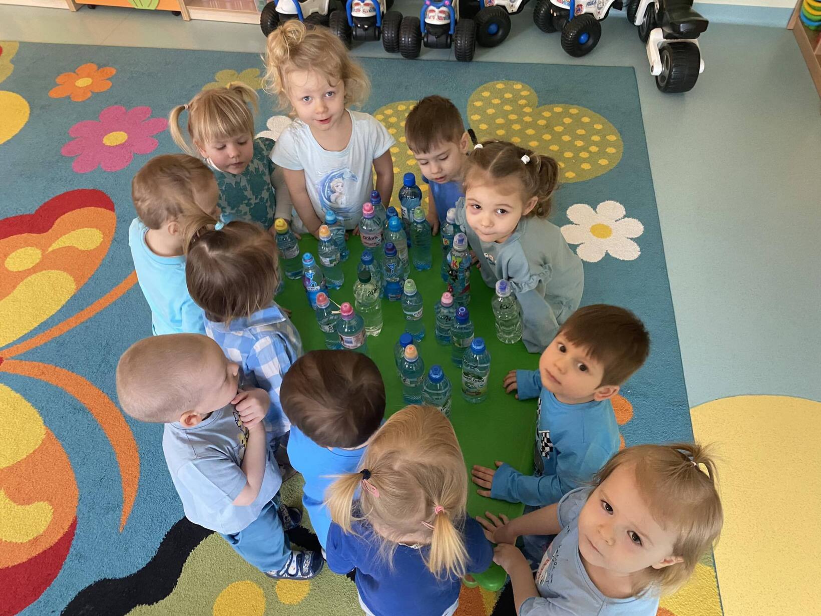 Każde dziecko przyniosło swoją butelkę wody. Dzieci z uwagą słuchały tych informacji a na koniec były zabawy i kropelkowe tańce ?.