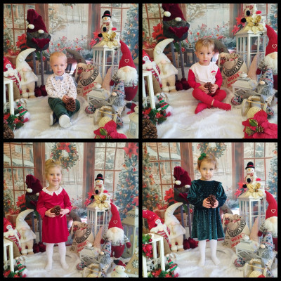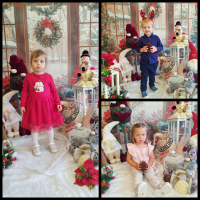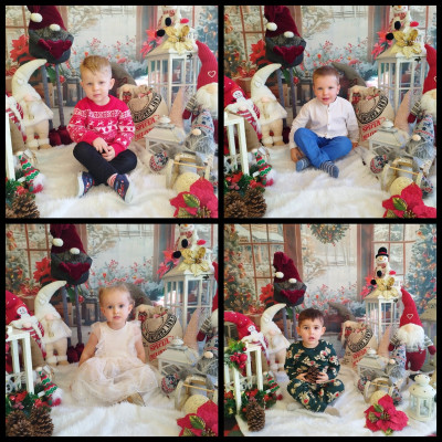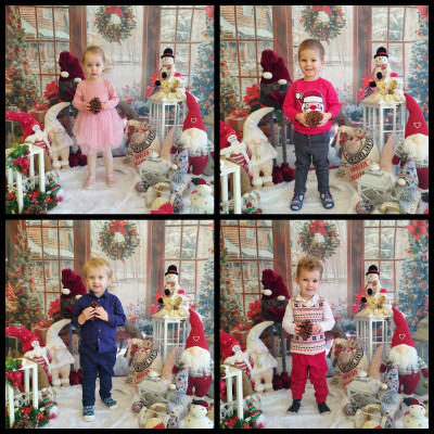 Zdjęcie przedstawia dzieci podczas świątecznej sesji zdjęciowej