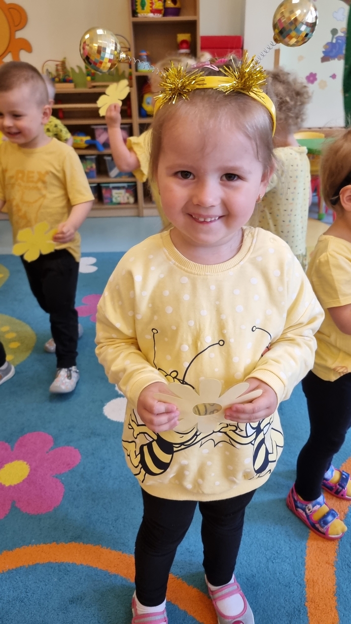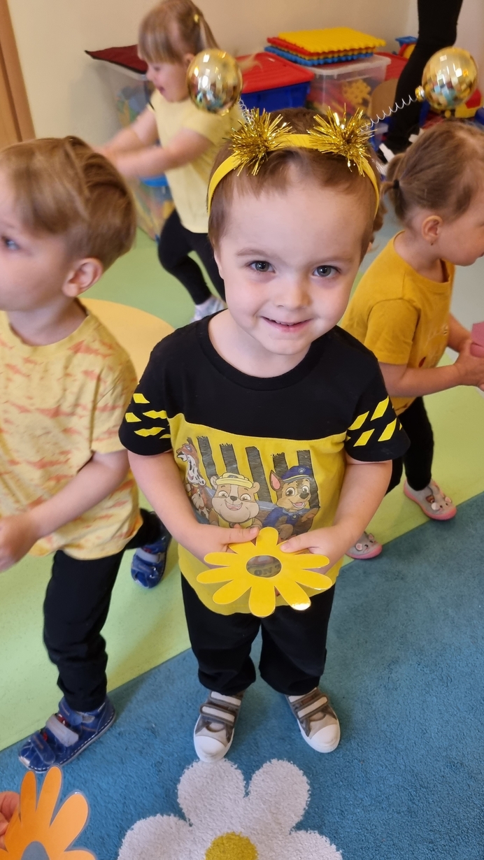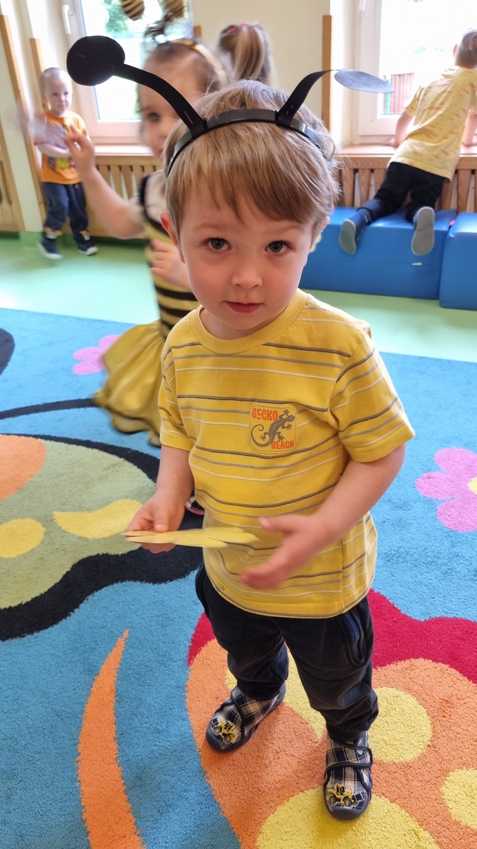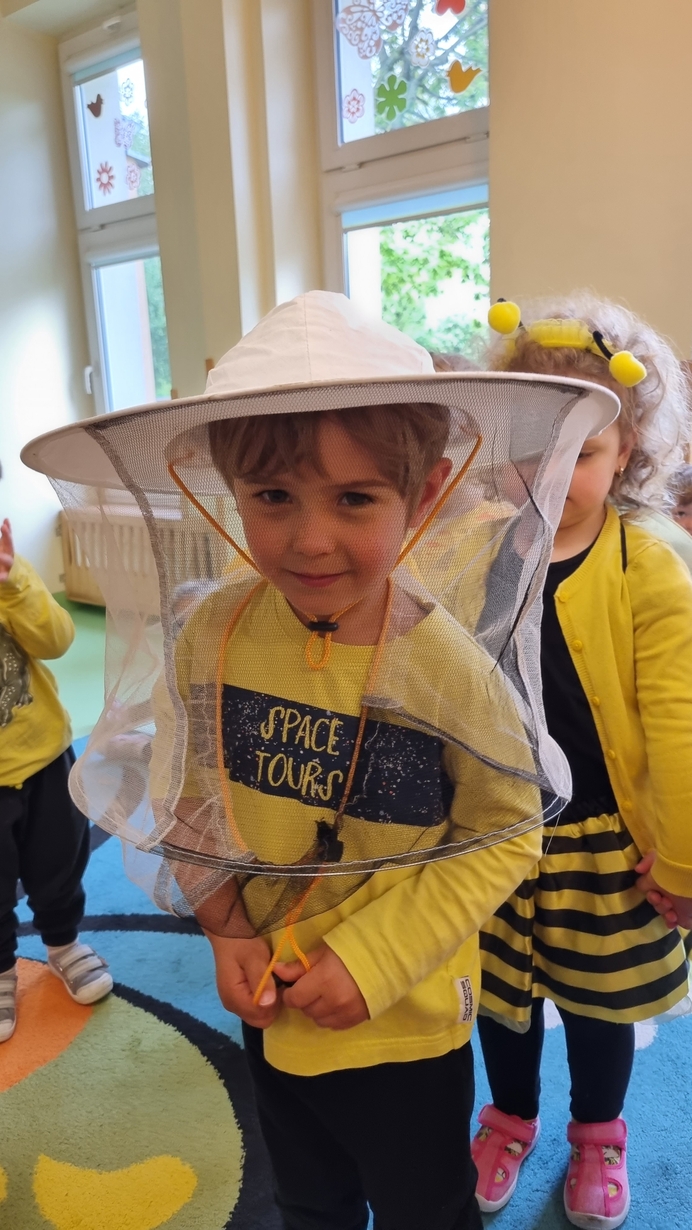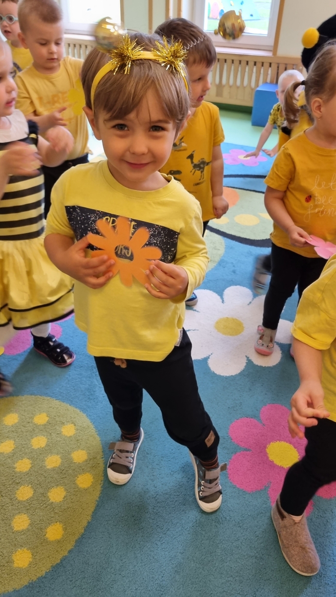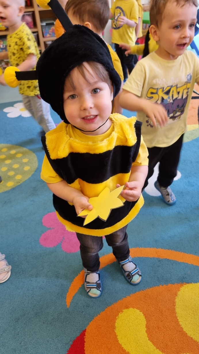 Dzisiaj na naszej grupie obchodziliśmy "Światowy Dzień Pszczół". Z tej okazji zostały przeprowadzone zajęcia, których celem było budzenie świadomości u dzieci o pożyteczności pszczół. Dzieci dowiedziały się jak wygląda praca pszczelarza i pszczół. Na koniec wspólnie z wielkim zaangażowaniem wykonaliśmy prace plastyczną.