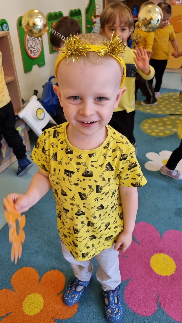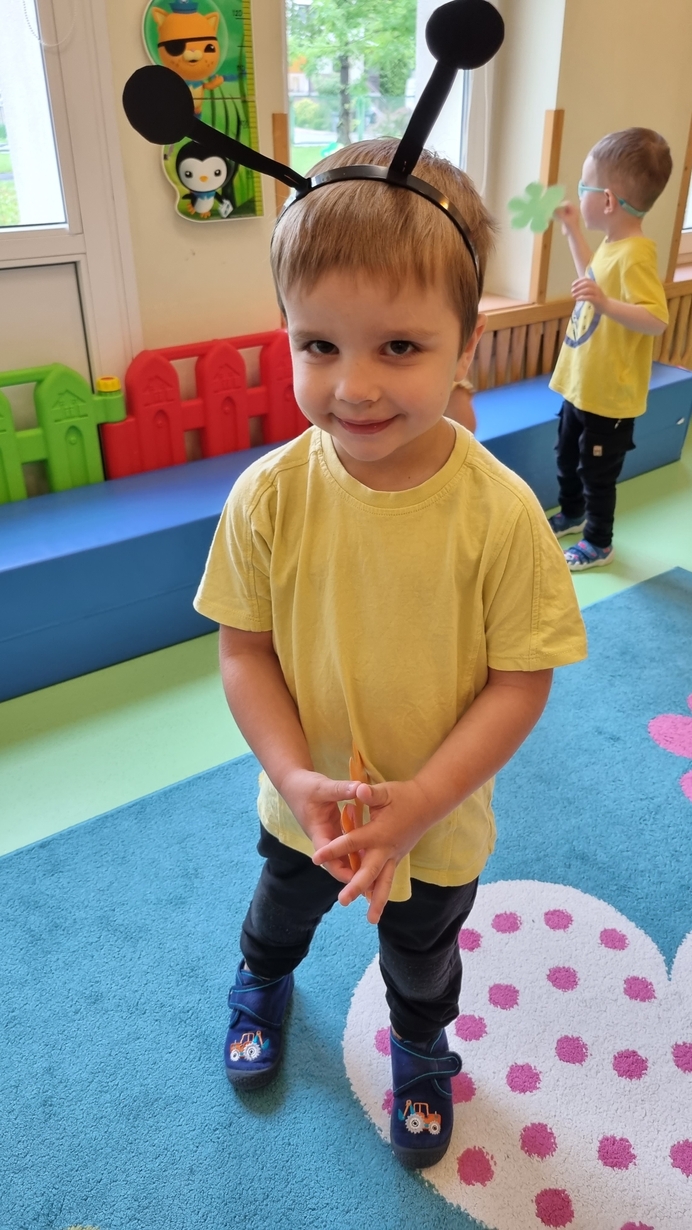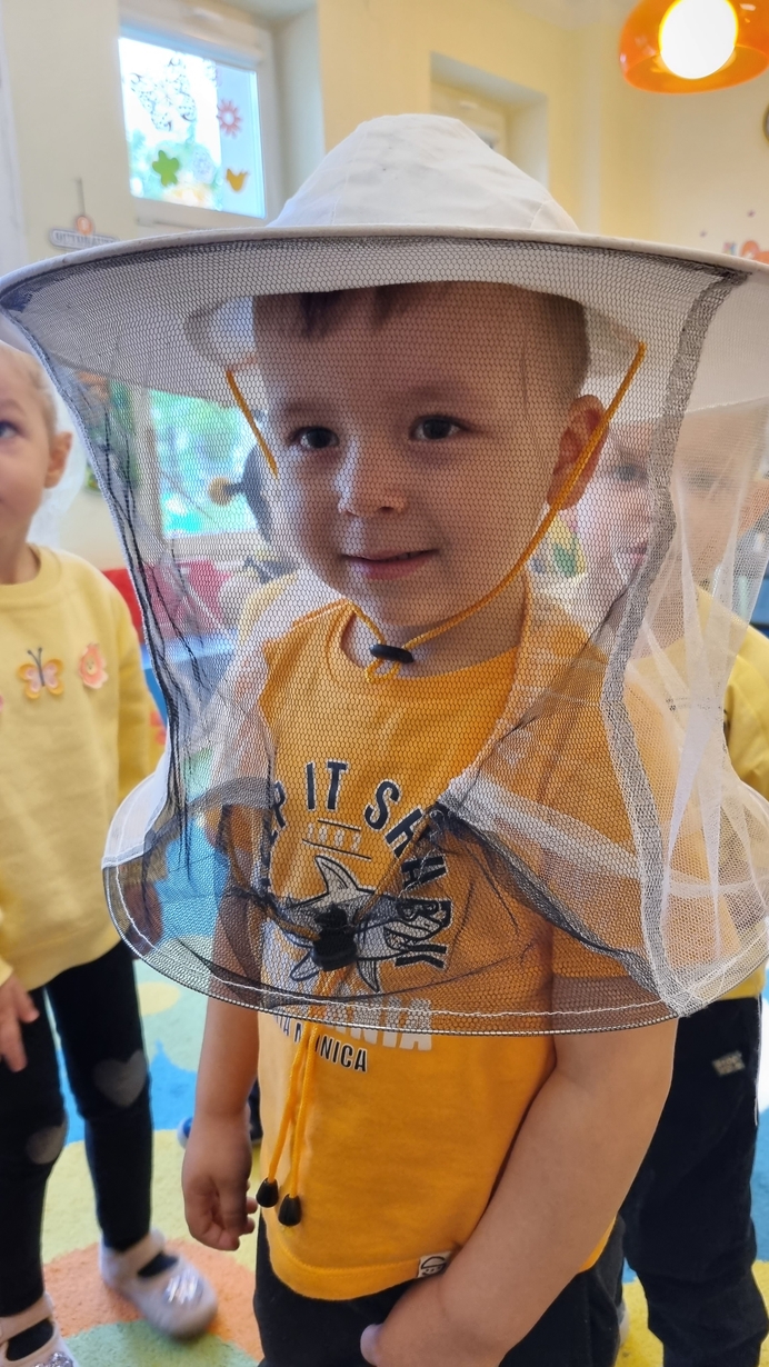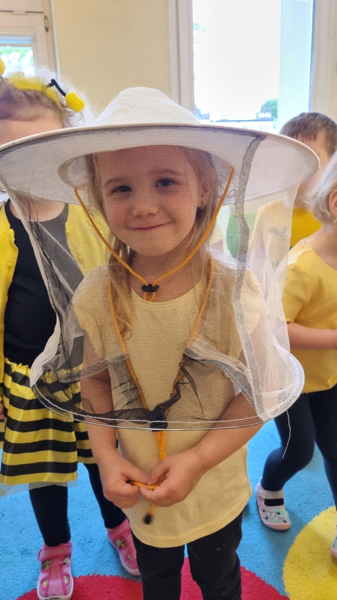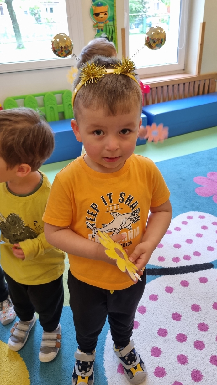 Dzisiaj na naszej grupie obchodziliśmy "Światowy Dzień Pszczół". Z tej okazji zostały przeprowadzone zajęcia, których celem było budzenie świadomości u dzieci o pożyteczności pszczół. Dzieci dowiedziały się jak wygląda praca pszczelarza i pszczół. Na koniec wspólnie z wielkim zaangażowaniem wykonaliśmy prace plastyczną.