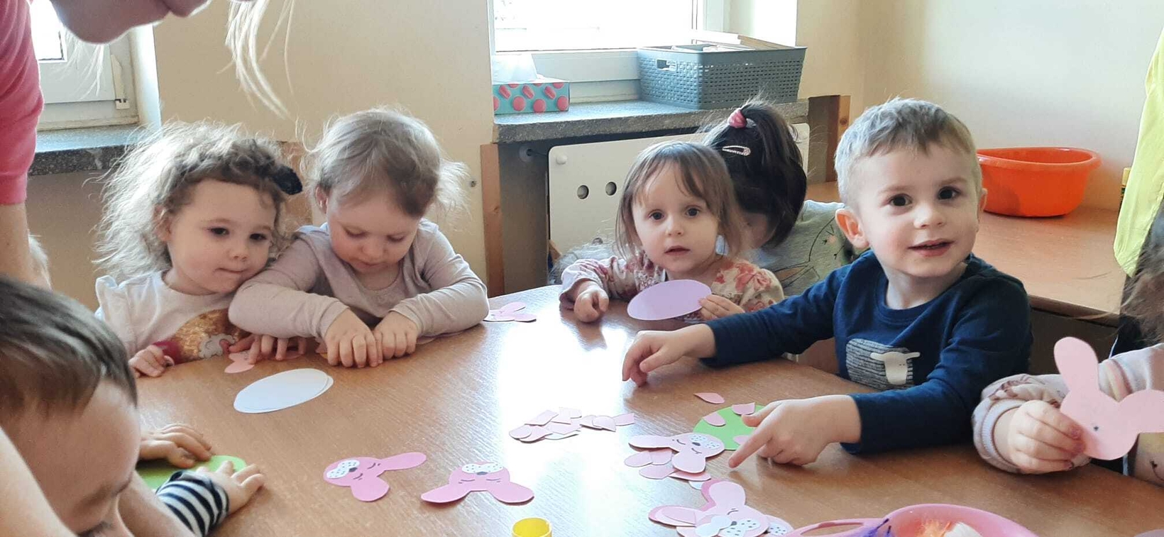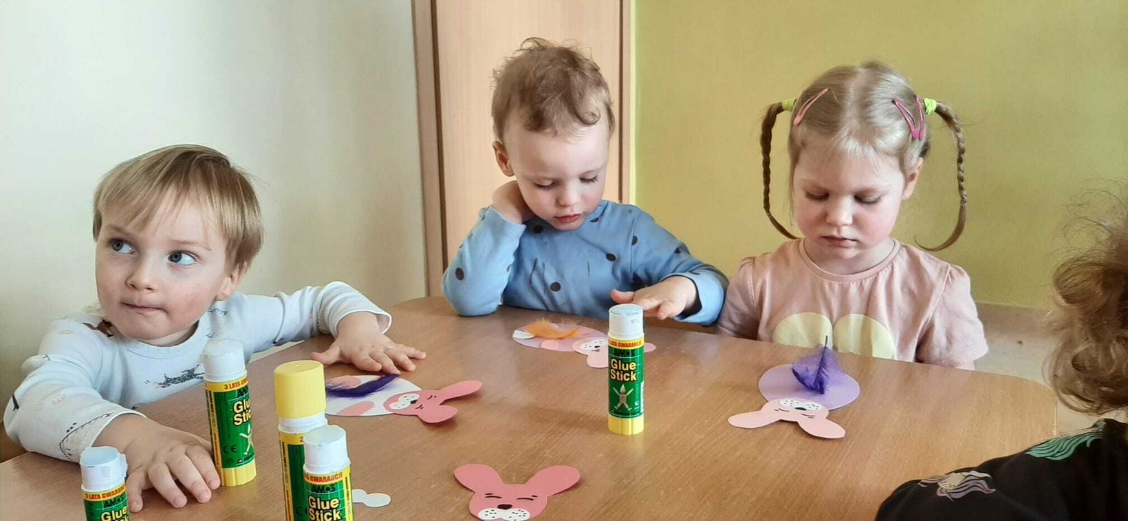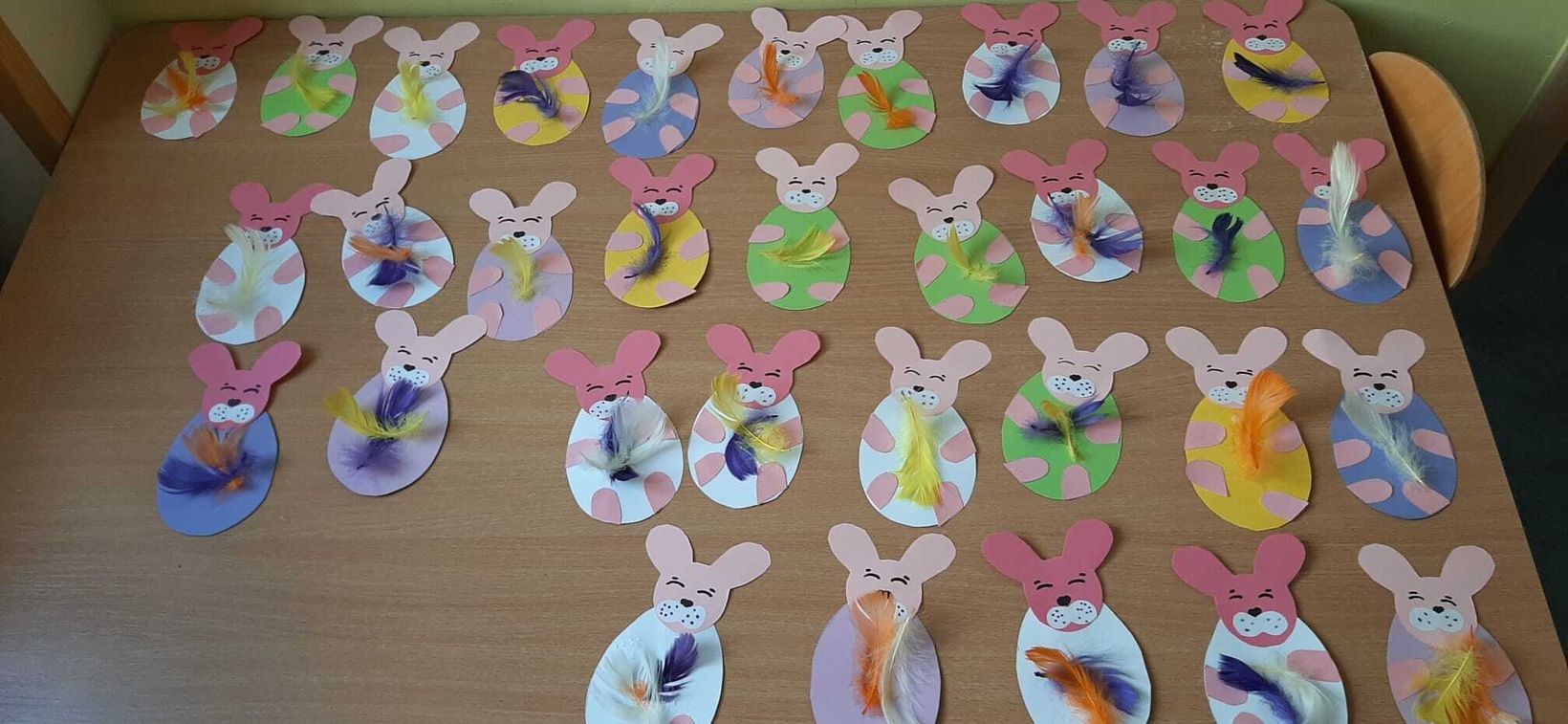 W związku z nadchodzącymi świętami dzieci wykonywały ZAJĄCZKI Wielkanocne. Dzieci wyklejały zajączka z kolorowych papierów
