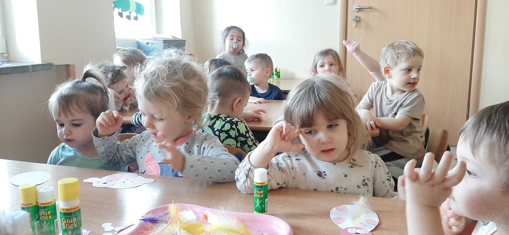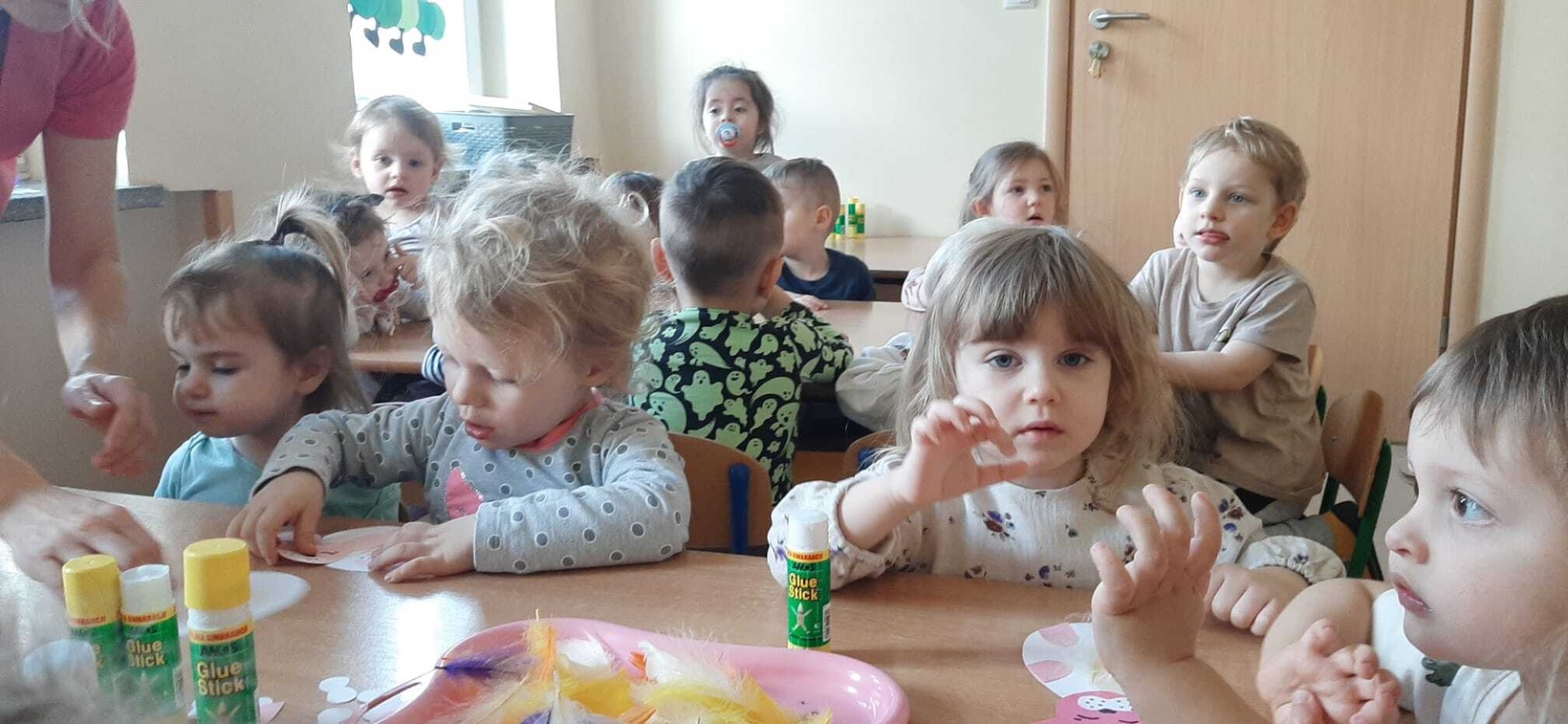 i piórek. Nasze muchomorki świetnie się bawiły. Gotowymi pracami ozdobiliśmy nasza żłobkową gazetkę.