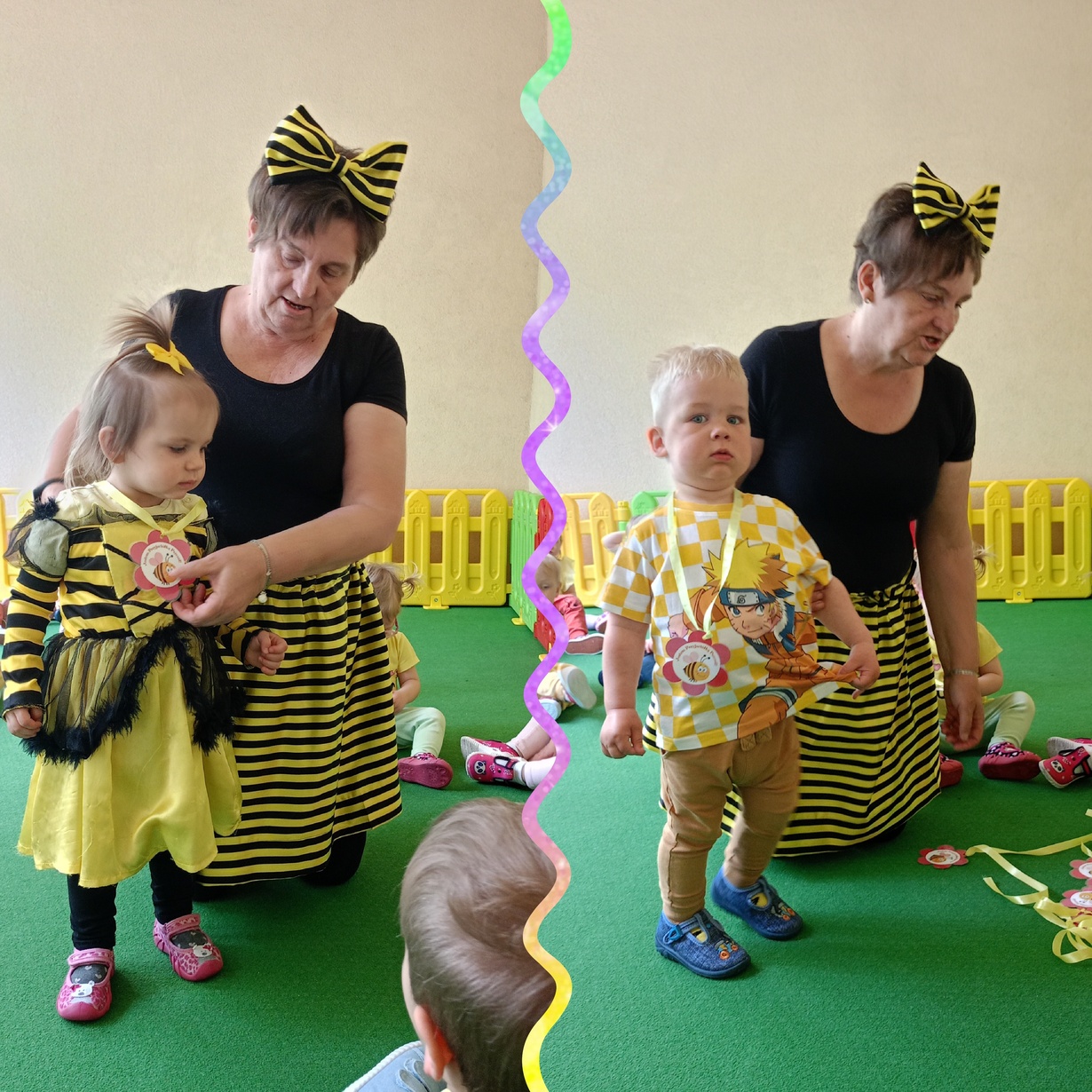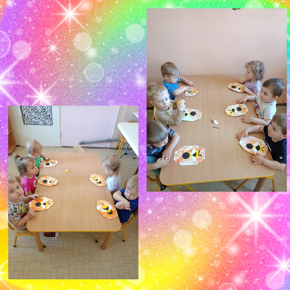 Dziś na naszej grupie podwójne święto - Światowy Dzień Pszczół i imieniny naszej grupy. Do tego święta przygotowywaliśmy się od dawna. Z samego rana dzieci przybyły ubrane na żółto a na szyjach dumnie nosiły medale z symbolem naszej grupy. Ciocie przygotowały kolorowe plansze, z których dzieci dowiedziały się jak wyglądają i co robią pszczółki. Pszczółki wykonały piękne prace plastyczne przedstawiające pszczółkę na plastrze miodu. Razem z Ciociami (również przebranymi za pszczółki ) wszyscy bawili się doskonale. Było wesoło i radośnie.
