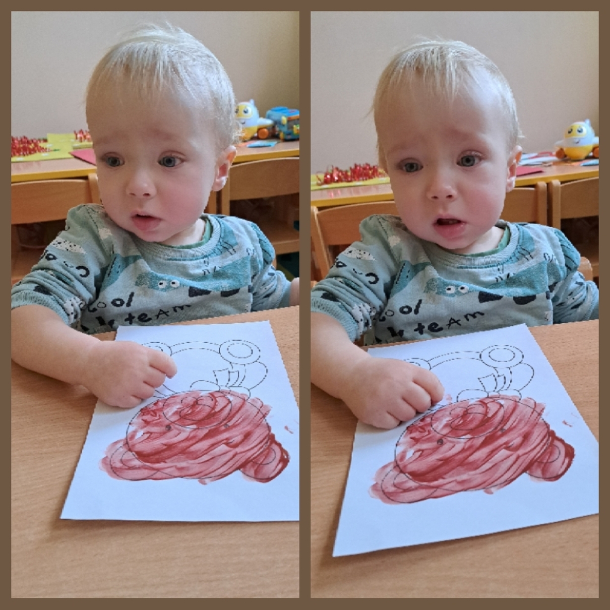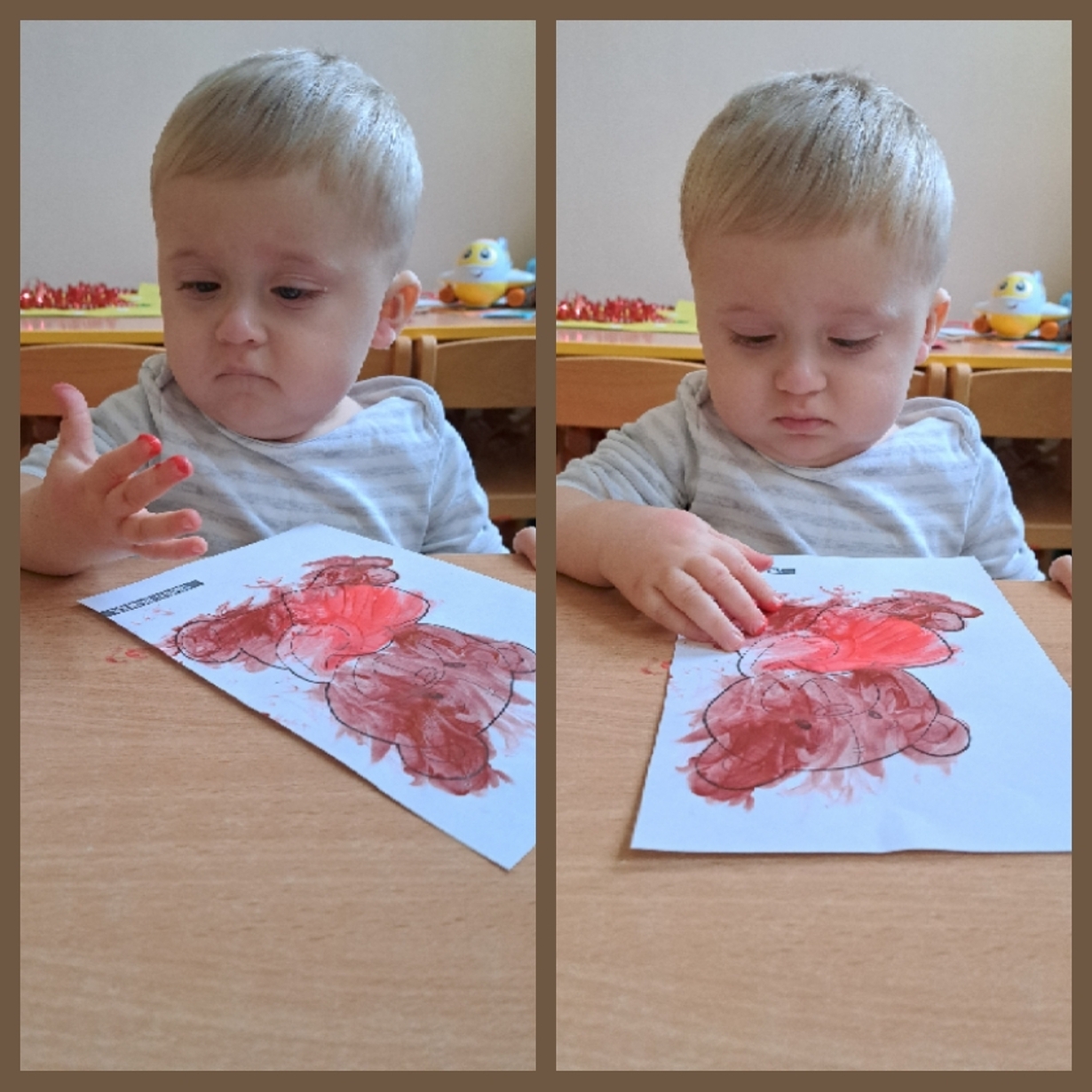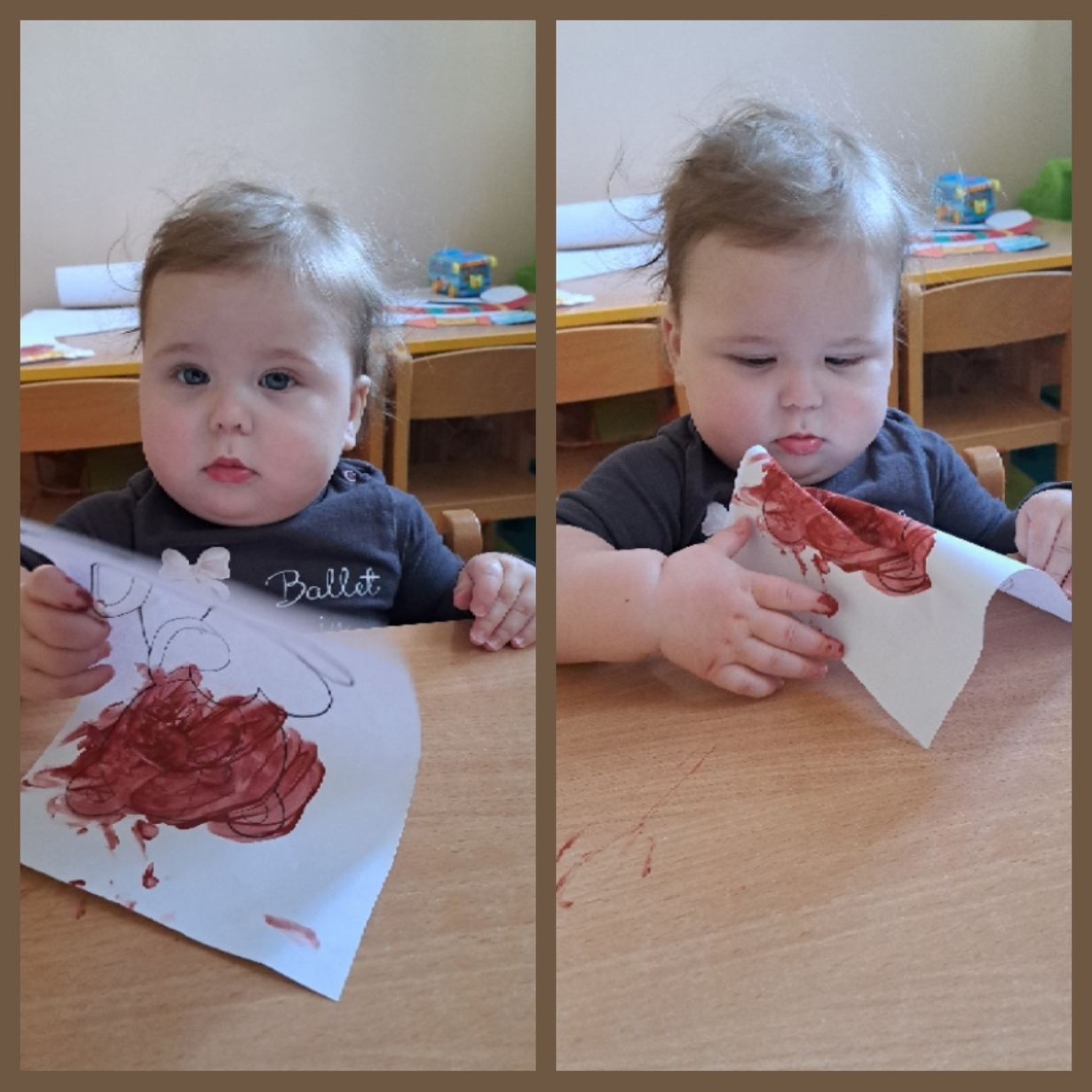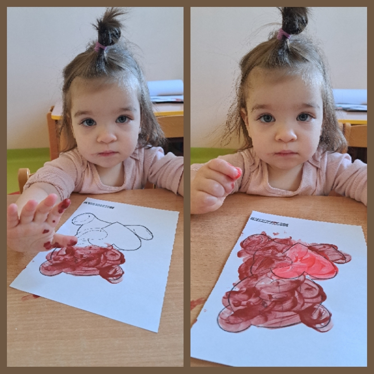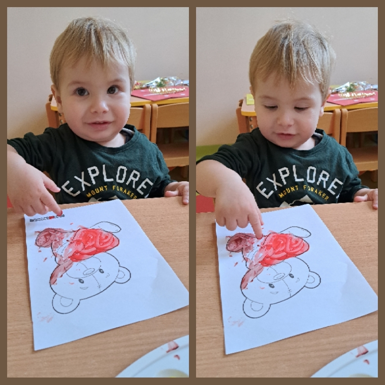 Motylki również świętowały ten dzień w żłobku. Najpierw pozowały do misiowych zdjęć oraz miały okazję po raz pierwsze malować farbkami,