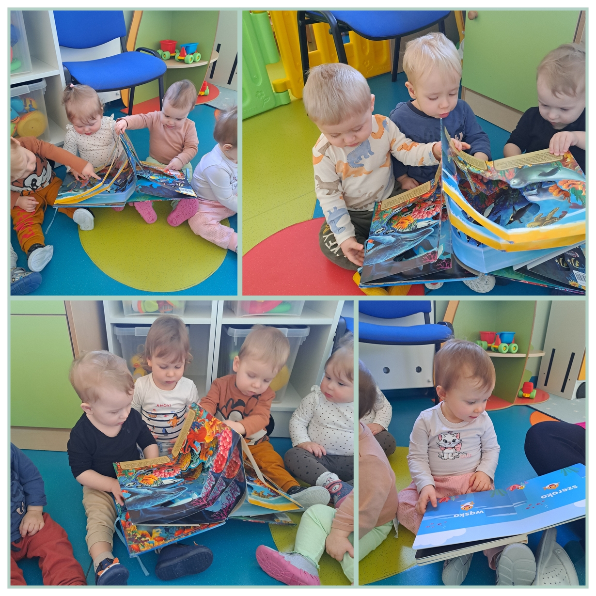 Przez dwa dni tematem przewodnim naszych zajęć była woda. Dzieci z krótkiej czytanki dowiedziały się co żyje w wodzie, komu potrzebna jest woda. Miały okazję oglądnąć różne morskie stworzenia takie jak: rybki, delfiny, pingwiny, żółwie, itd.