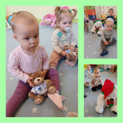 Zdjęcie przedstawia dzieci podczas zajęć w żłobku z okazji Dnia Misia