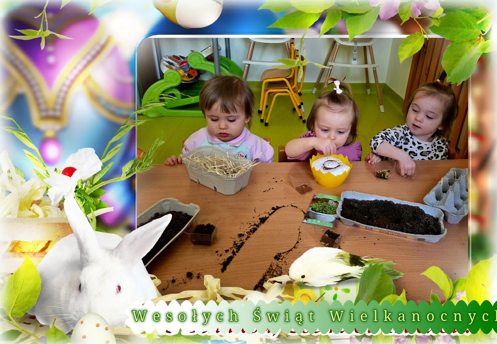 Zdjęcia przedstawiają dzieci celebrujące święta wielkanocne