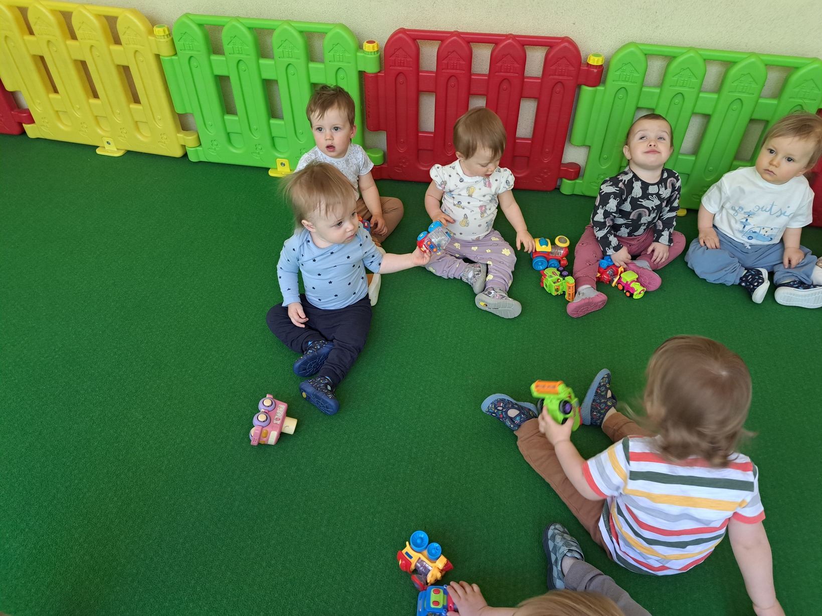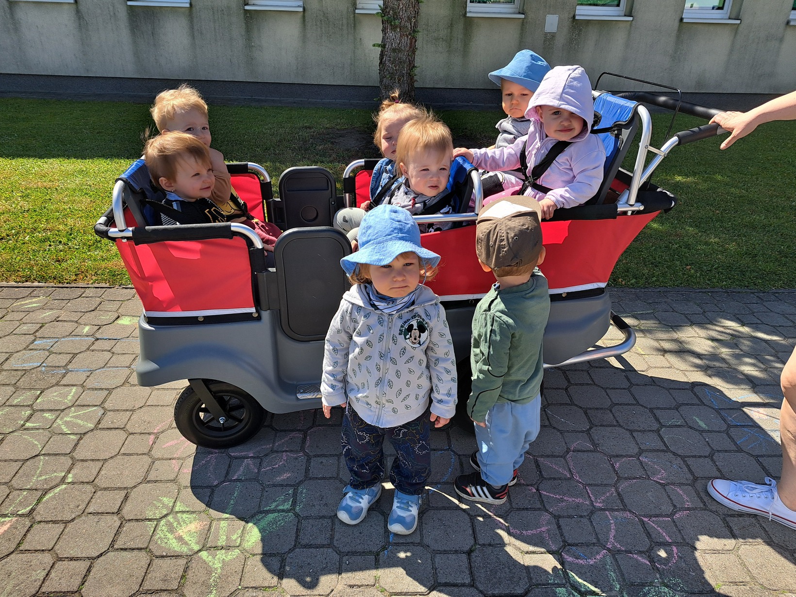 Korzystając ze słonecznej pogody rozpoczęliśmy sezon spacerów oraz zabaw na świeżym powietrzu. Taka nowość spotkała się z ogromnym zaciekawieniem wśród dzieci. Miały okazję obserwować otaczającą nas przyrodę, roślinność oraz pooddychać świeżym powietrzem.