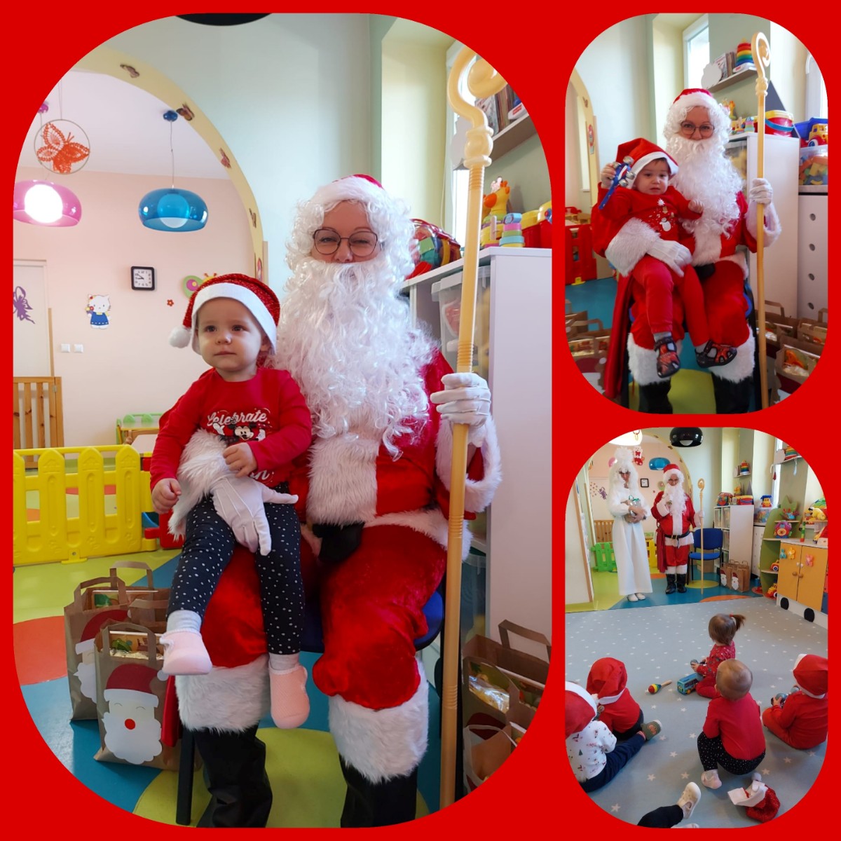 Zdjęcia przedstawiają dzieci z Mikołajem.