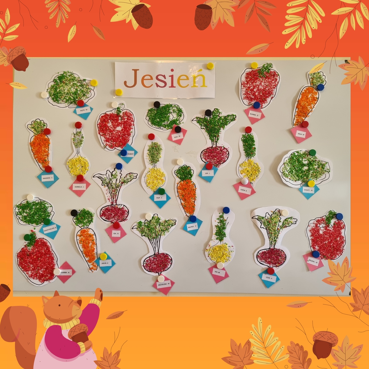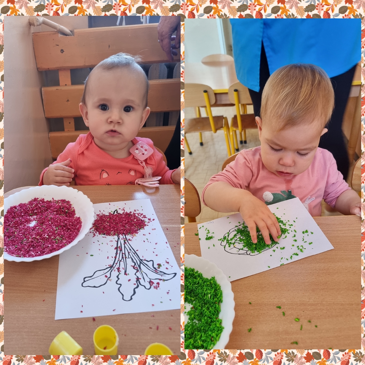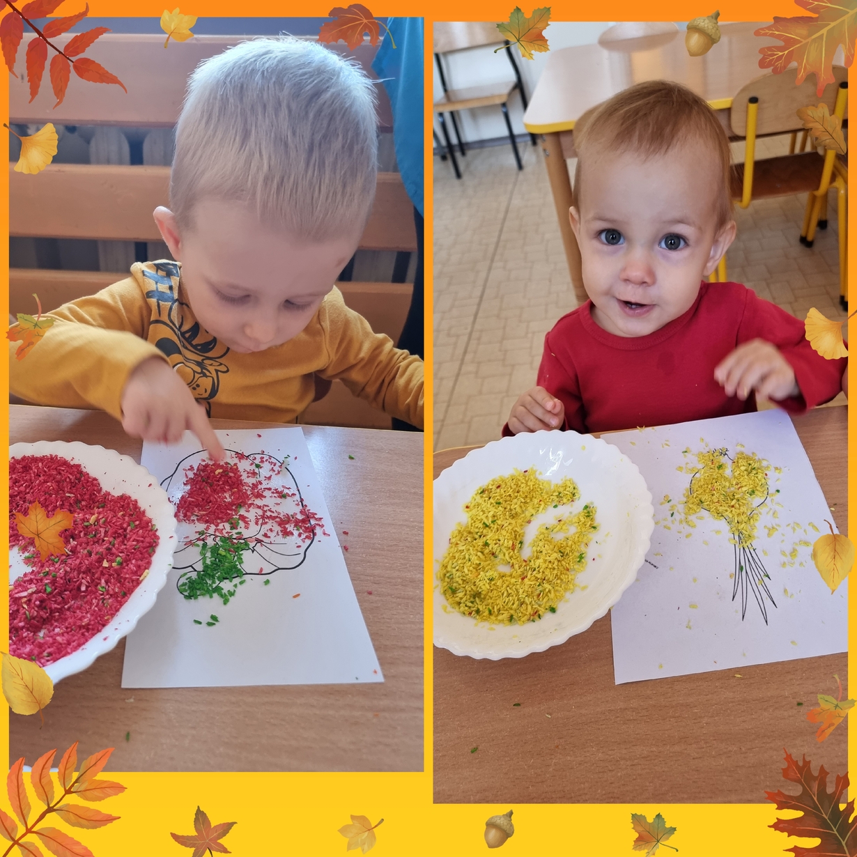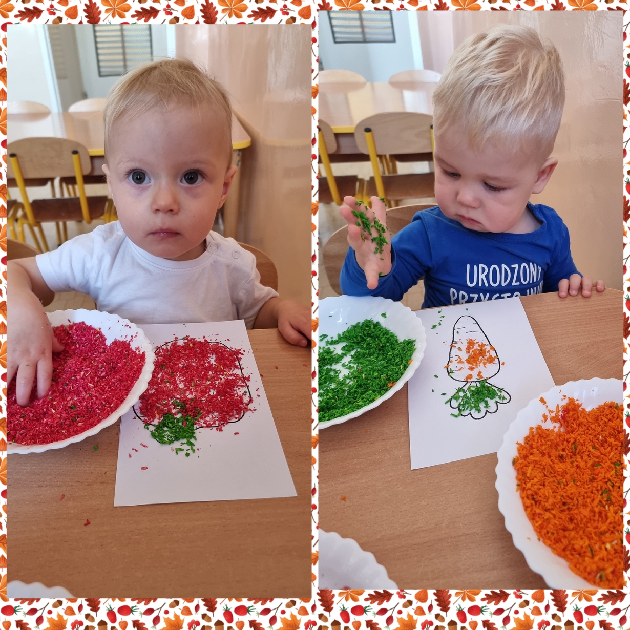 Na wydrukowane obrazki warzyw, dzieci przyklejały kolorowe wiórka kokosowe. Było smacznie i wesoło .?