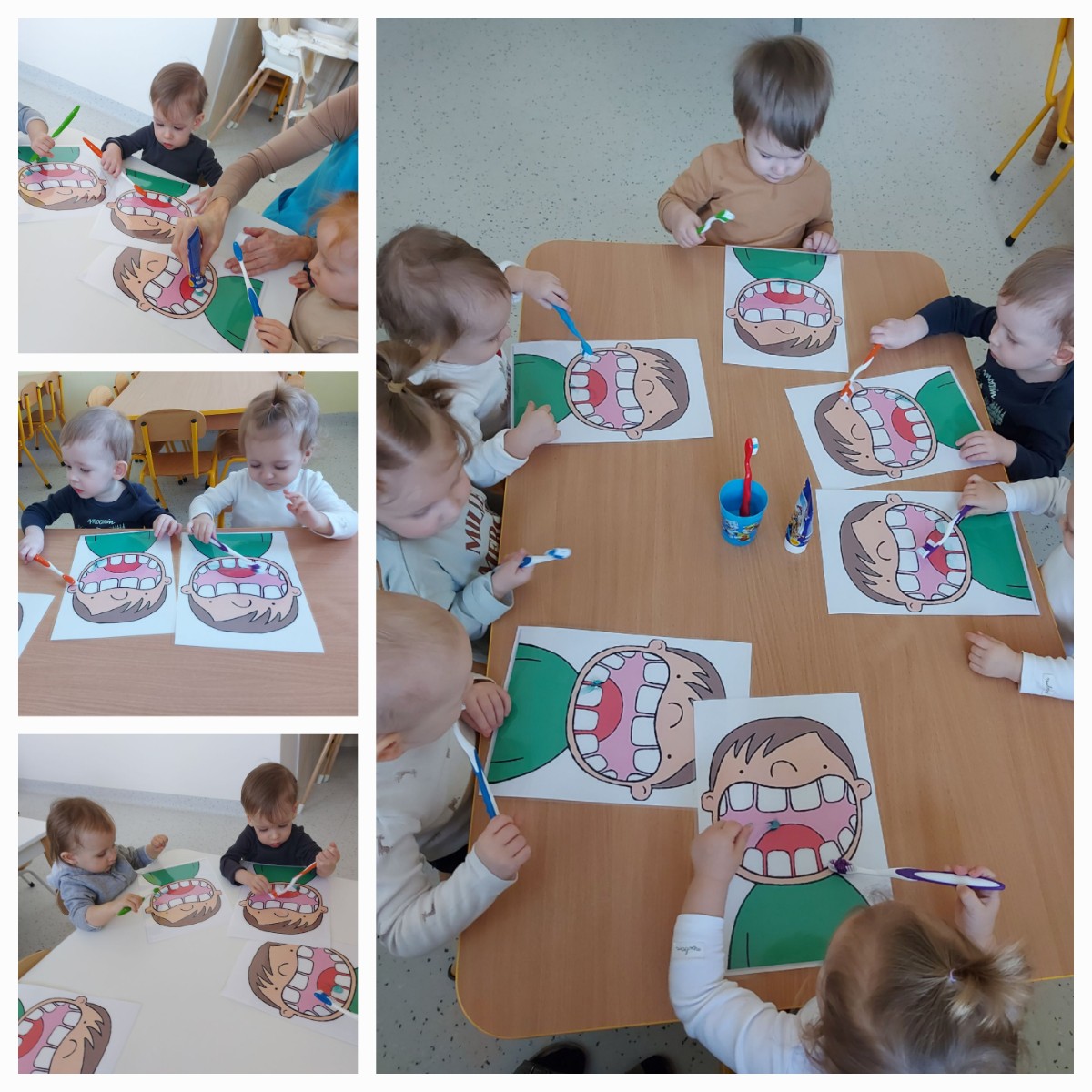 5 marca Pszczółki obchodziły Dzień Dentysty. Miały okazję wzbogacić swoją wiedzę i umiejętności dotyczące higieny jamy ustnej. Poznały znaczenie słowa profilaktyka. Dowiedziały się kim jest dentysta? Na te i wiele innych pytań odpowiedzi szukaliśmy za pomocą krótkiej inscenizacji, zabaw, zagadek oraz na podstawie materiału obrazkowego. To był dzień pełen nowych wyzwań.