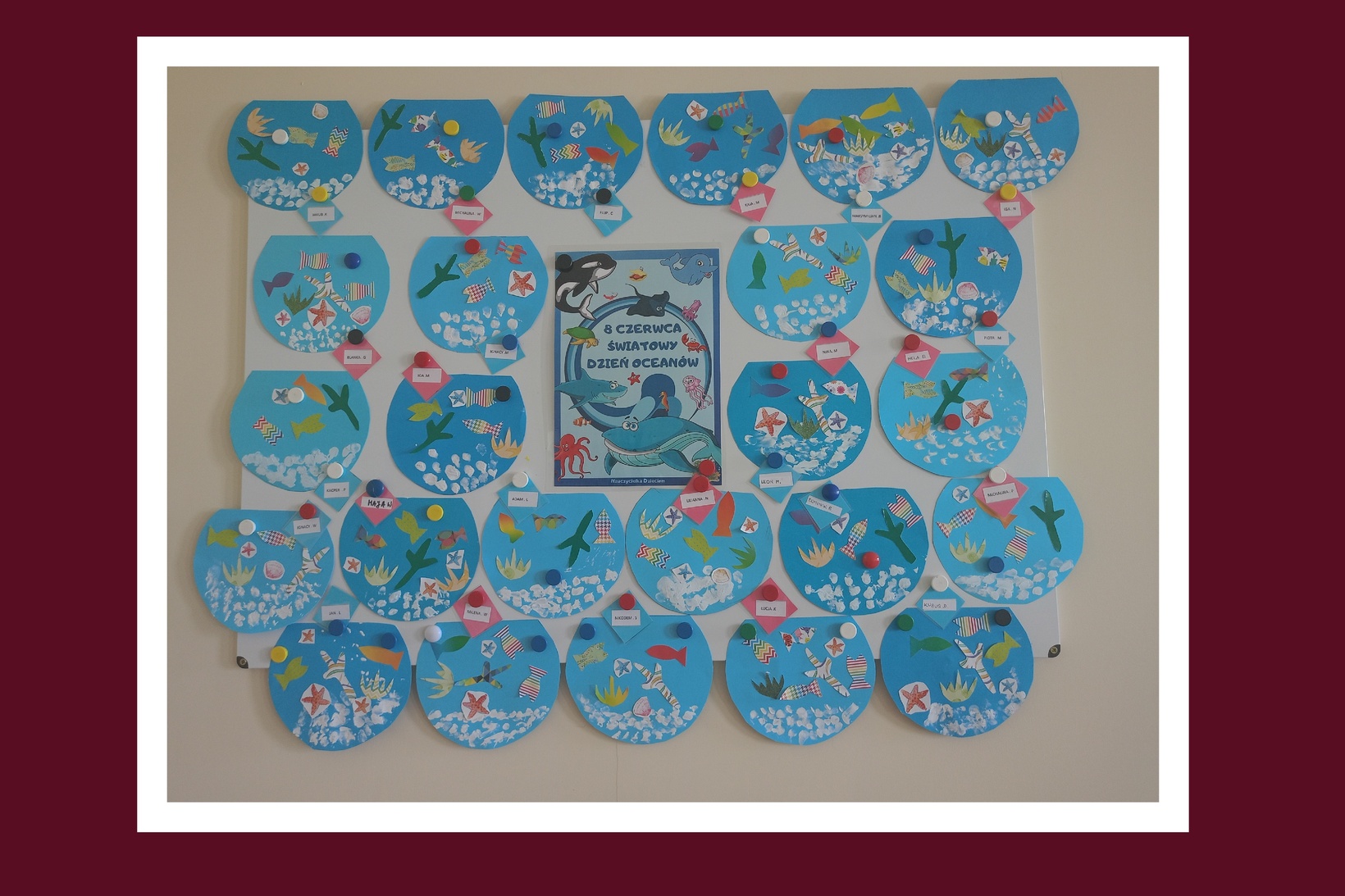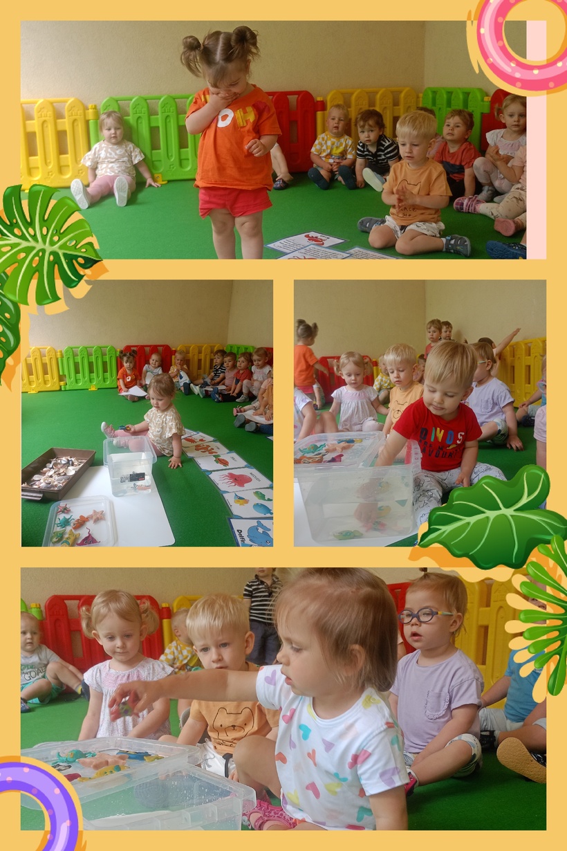 Nasze Pszczółki nie zapomniały o obchodzonym dziś Dniu Oceanów i wyruszyły w niezwykłą podróż po podwodnym świecie . Dzięki przygotowanym przez Ciocie kolorowym planszom, zapoznały się z wyglądem mieszkańców podwodnej krainy. Miały okazję wziąć do ręki prawdziwe muszelki, mające różne kształty oraz pobawić się małymi rybkami, wykonanymi z modeliny.