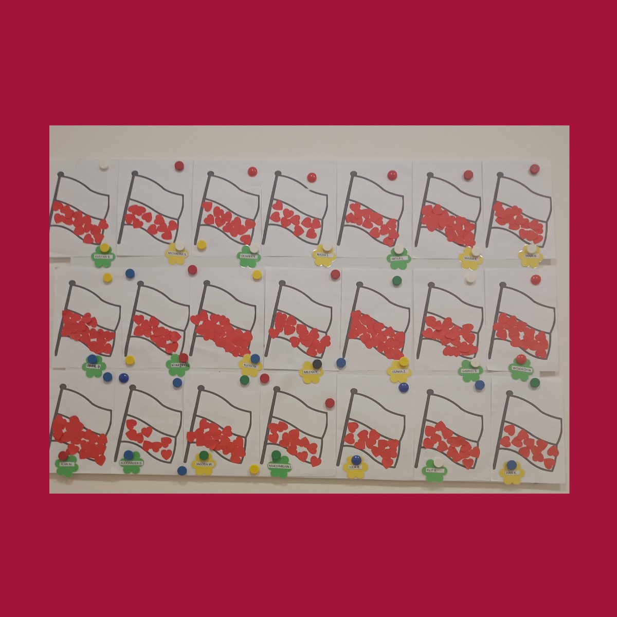 Pierwszy i Trzeci mają to  obchody Świąt Narodowych - Święto Flagi oraz Konstytucji 3 Maja. Budowanie świadomości narodowej oraz przywiązania do Ojczyzny jest ważne na każdym etapie życia, tak więc i nasze małe Pszczółki postanowiły uczcić te ważne dla Polski dni. Z tej okazji wykonaliśmy prace plastyczne, przedstawiające symbol narodowy jakim jest Flaga Polski. Piękne prace zobaczyć można na naszej tablicy, jak również w galerii zdjęć.