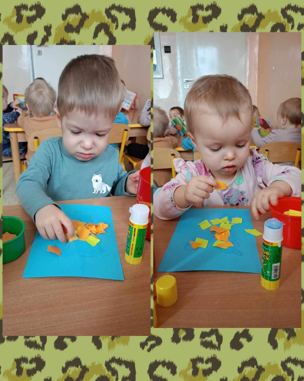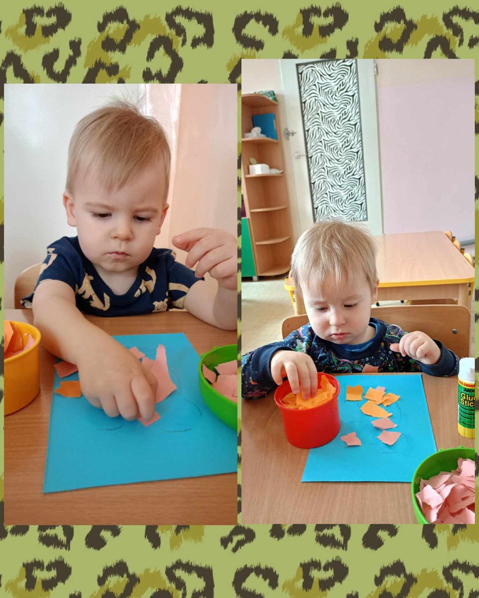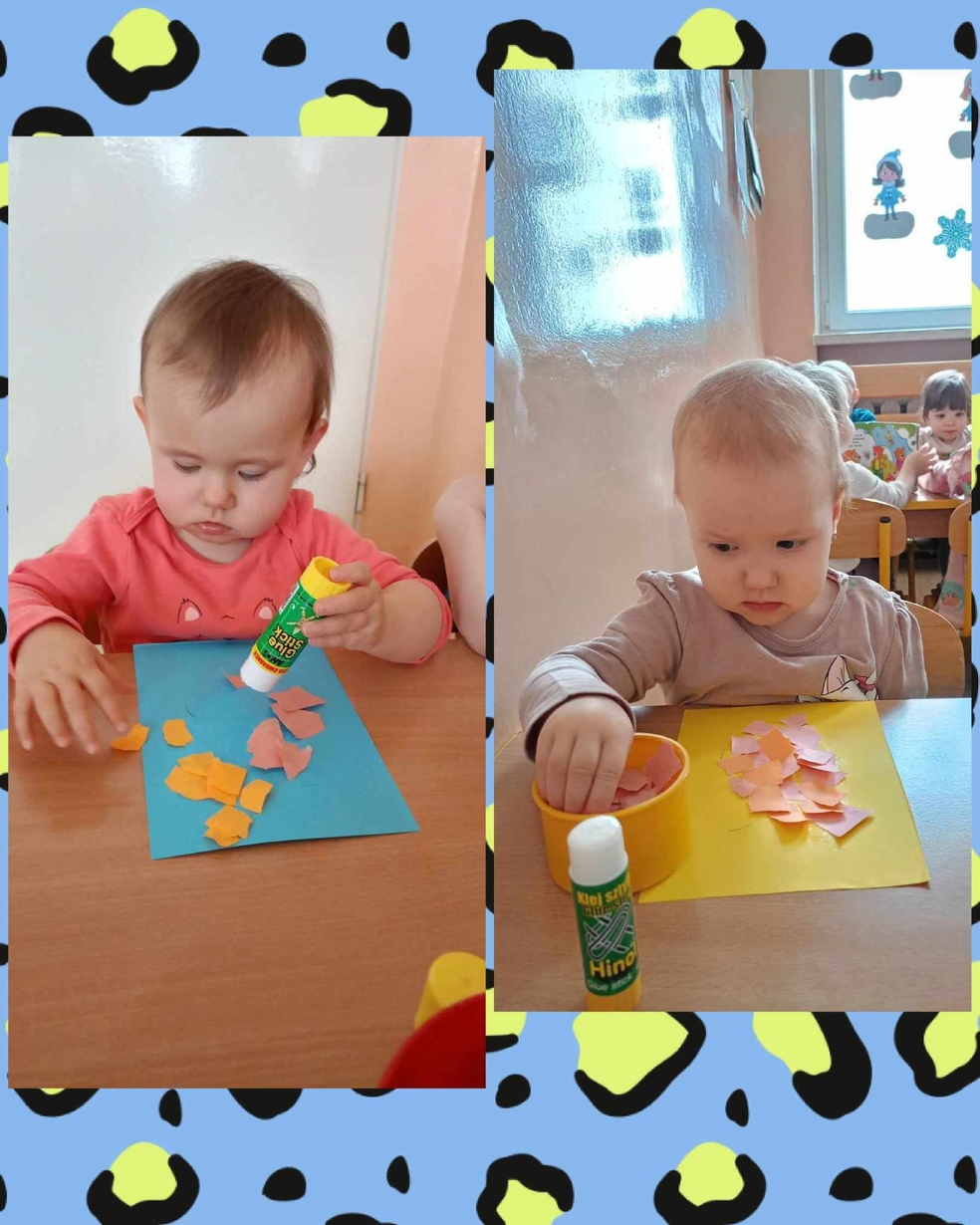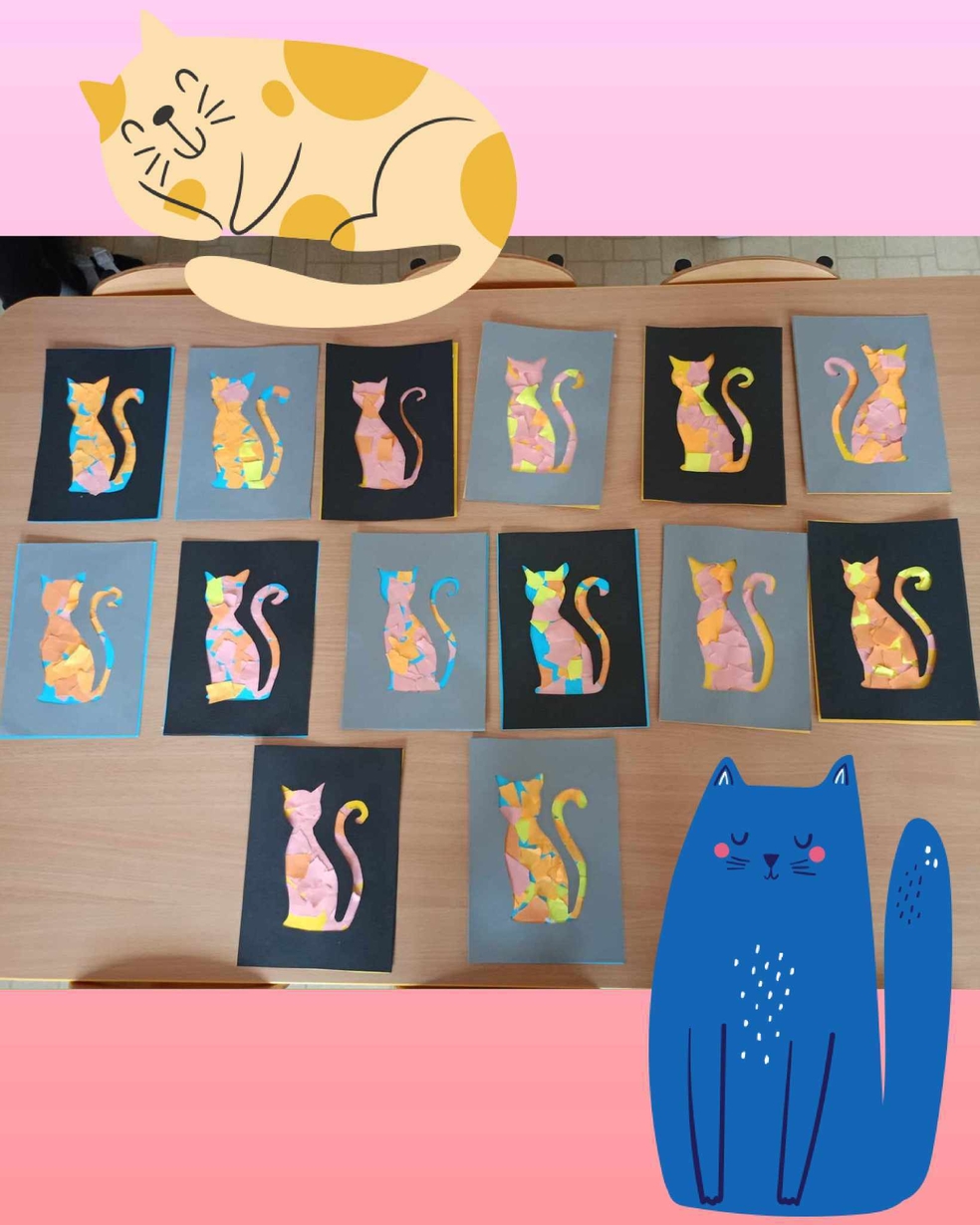 Na koniec Pszczółki zrobiły z pomocą Cioć prace plastyczne przedstawiające marmurkowego kotka z wydzieranki.
