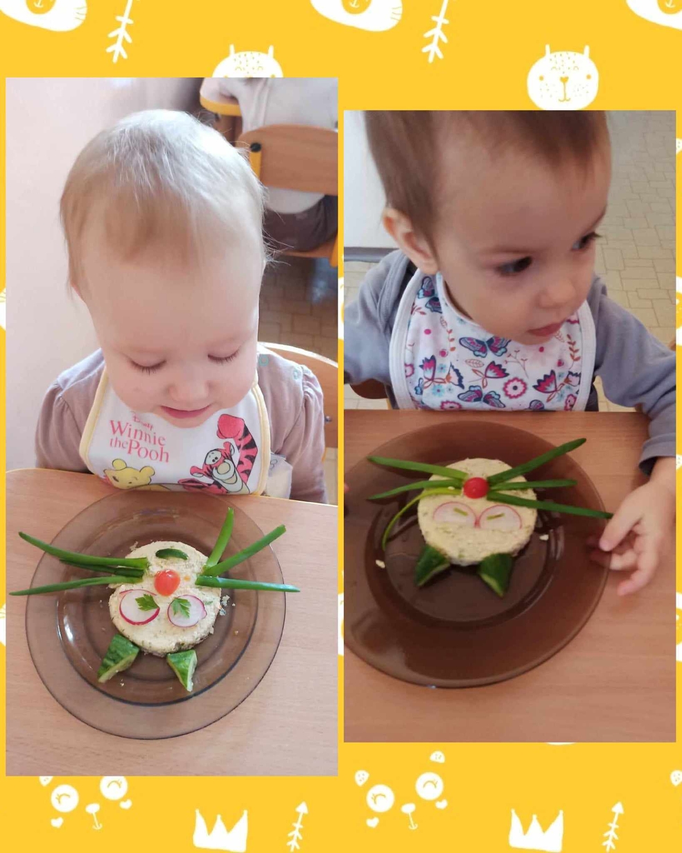 Dzień rozpoczęliśmy od śniadanka które były zaskoczeniem bo ciocie przygotowały piękne kotki kanapki.