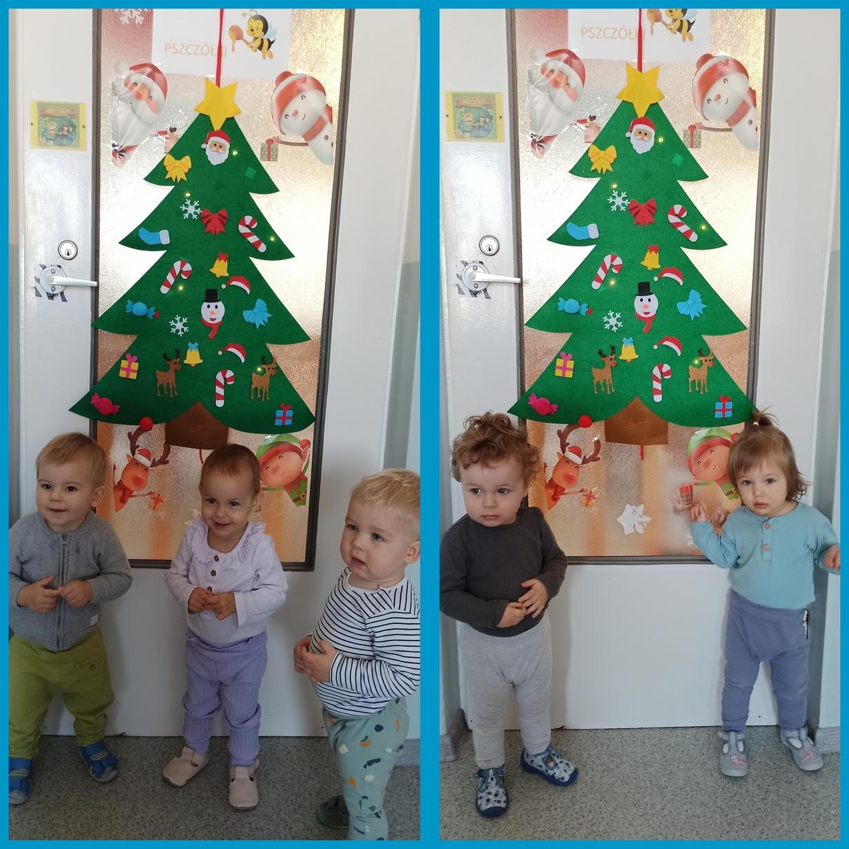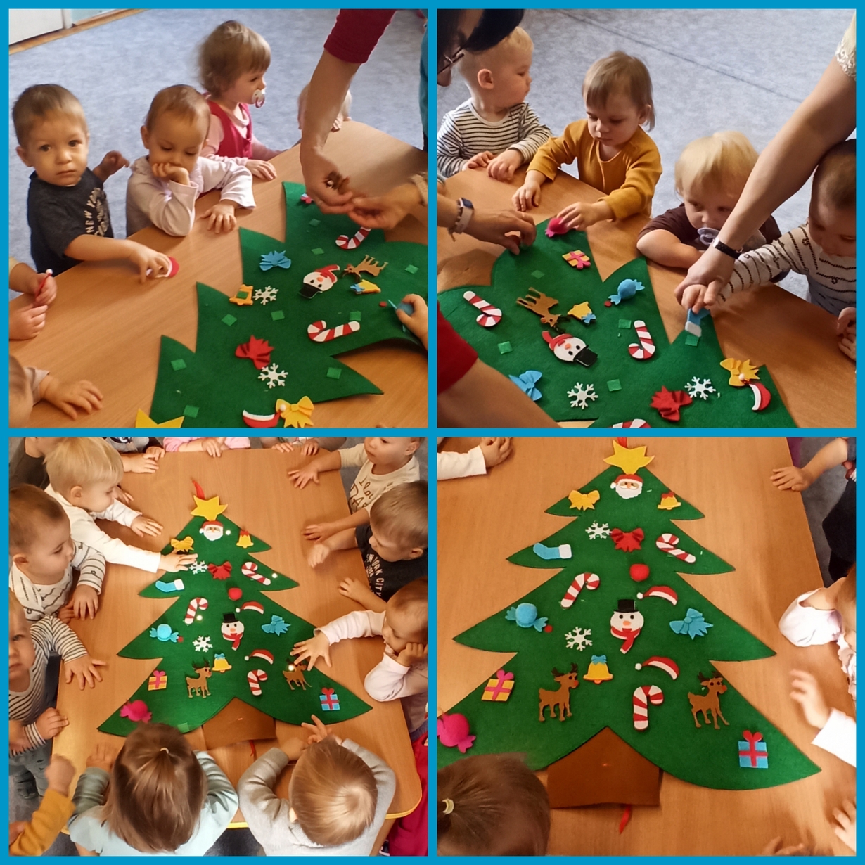 Dziś Pszczółki z wielkim zapałem przystąpiły do dekorowania dużej filcowej choinki.