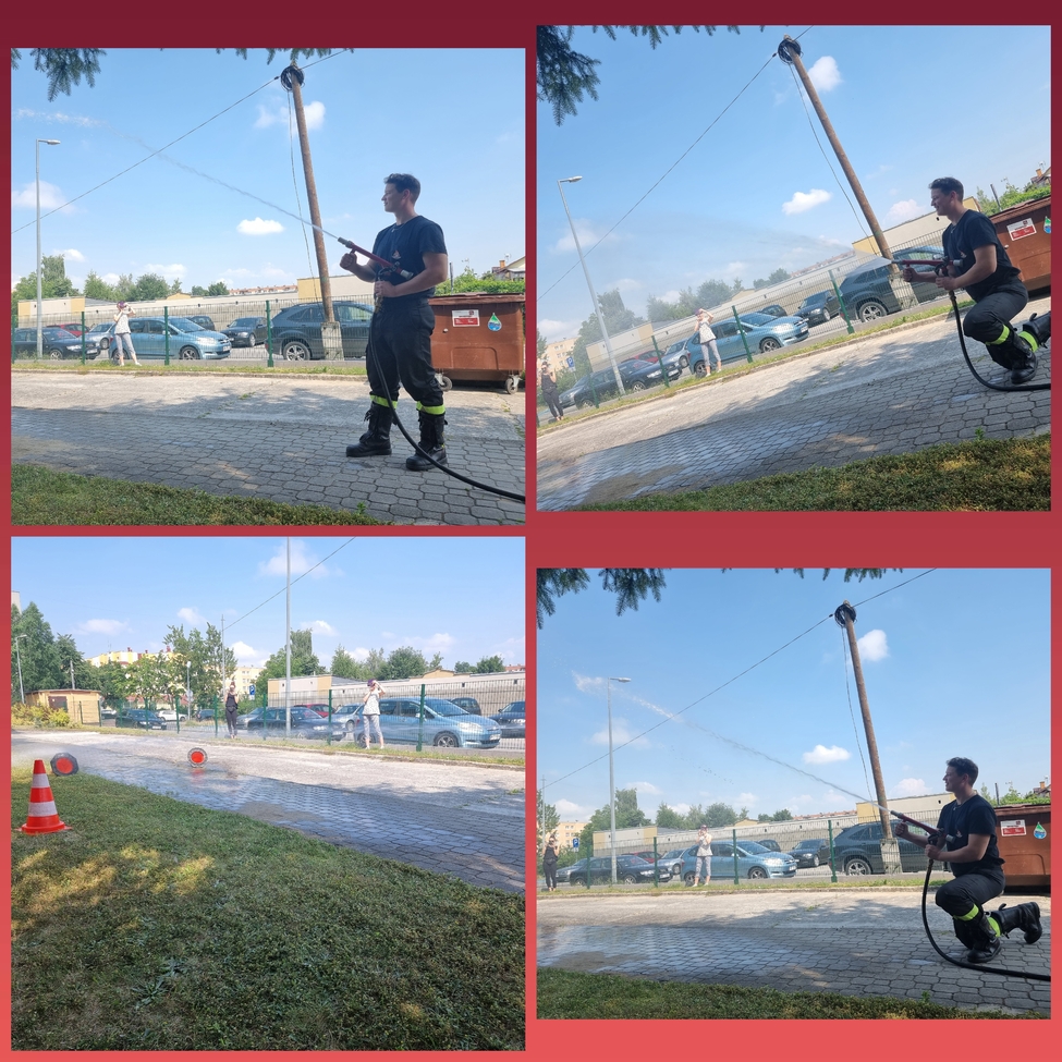 Na zakończenie spotkania strażacy zaprezentowali działanie węża strażackiego