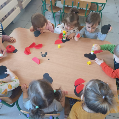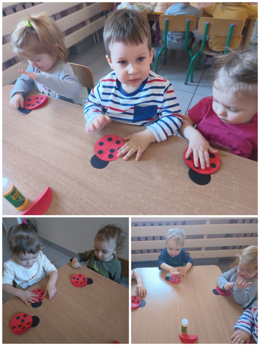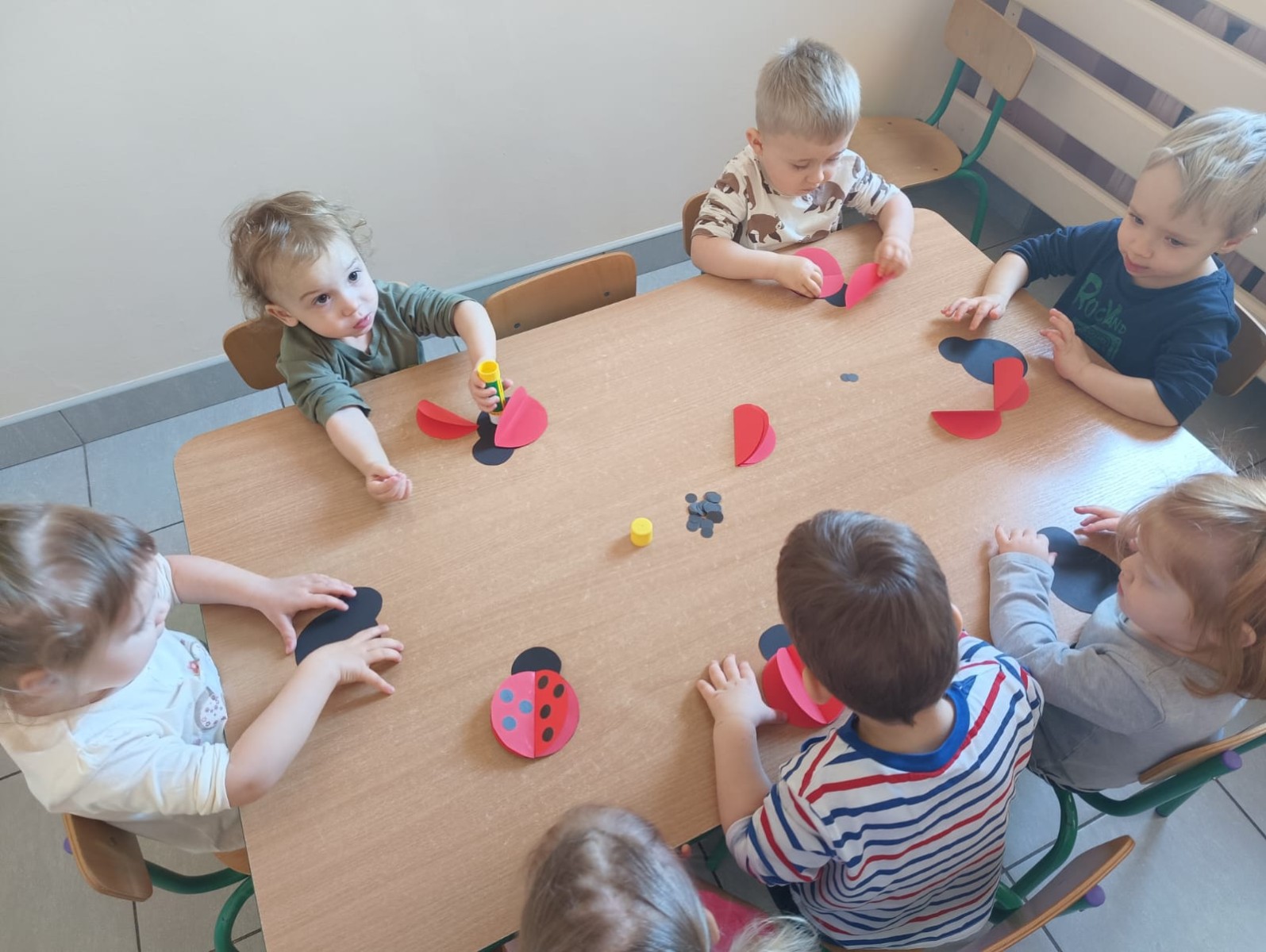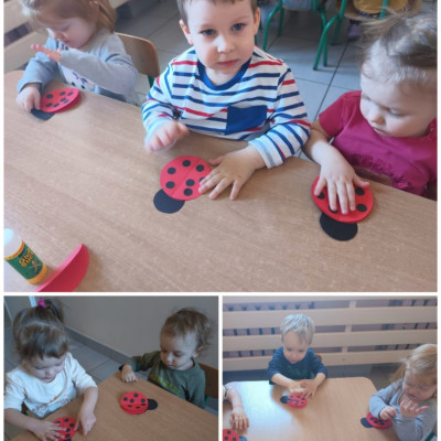 Dzisiaj w naszej grupie zrobiło się naprawdę wiosennie. Na grupową "łąkę" przyfrunęły małe biedronki, które z racji nazwy naszej grupy są dla Nas bardzo bliskie. Dzieci wykazały się swoimi zdolnościami plastycznymi i wykonały prace prezentujące te małe owady. Z gotowych elementów stworzyliśmy sylwetkę biedronki, następnie nakleiliśmy małe , czarne kropeczki. Teraz pięknie prezentują się na tablicy tworząc ciepły, wiosenny klimat. Zapraszamy do galerii zdjęć.